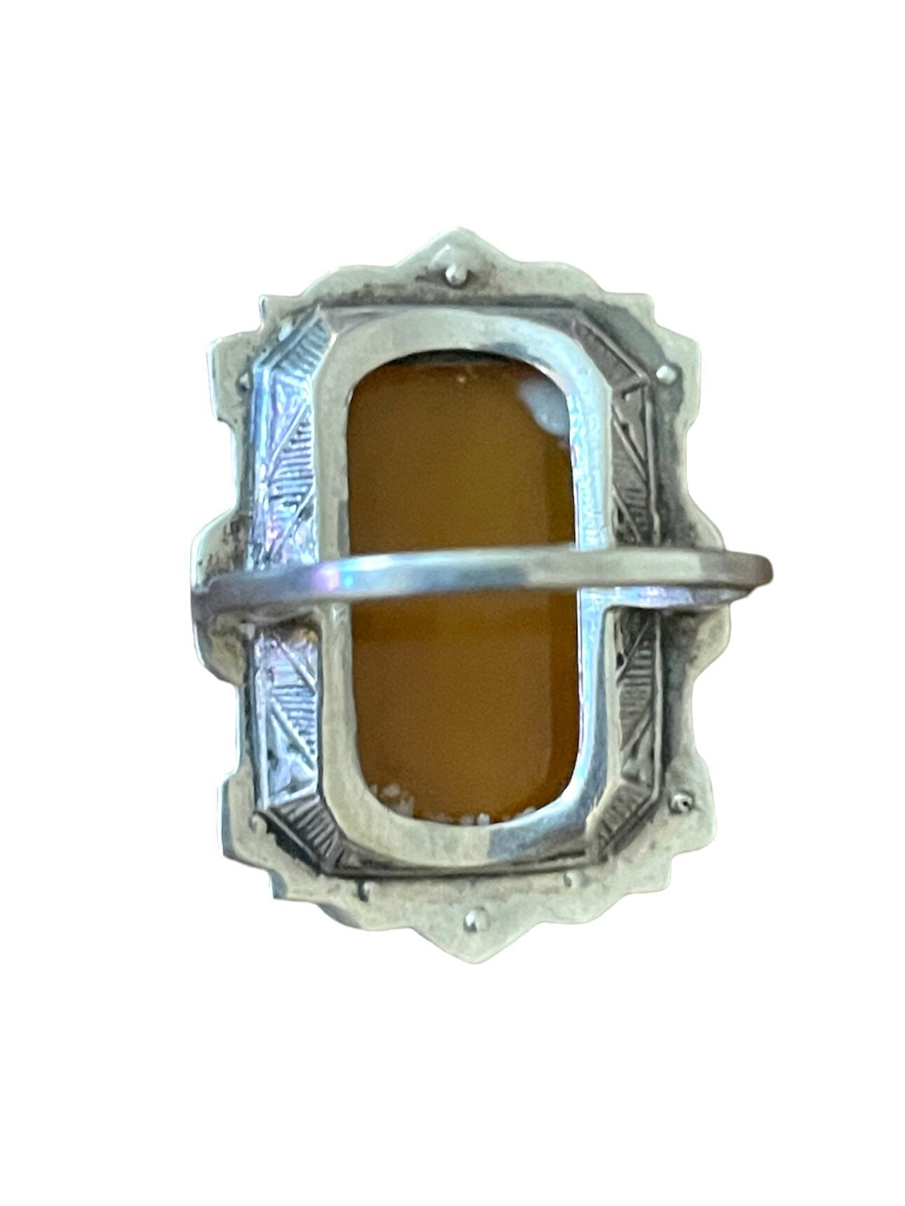 Antique Butterscotch Amber & Marcasite Sterling Silver Art Nouveau Ring amazing condition, beautiful backside of ring, incredible condition.