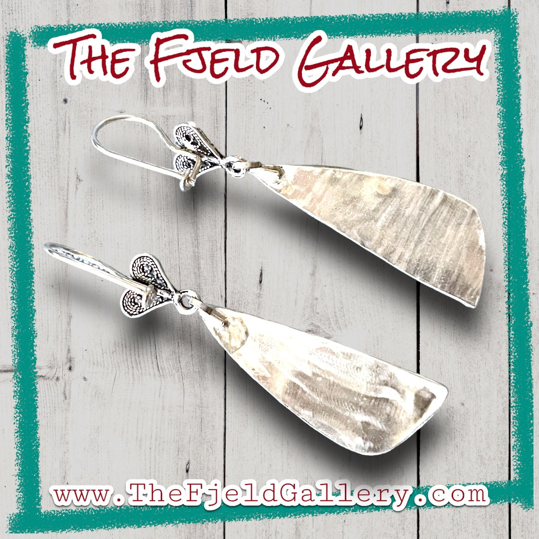 Handmade Picasso Jasper Gemstone Sterling Silver Heart Filigree Dangle Earrings