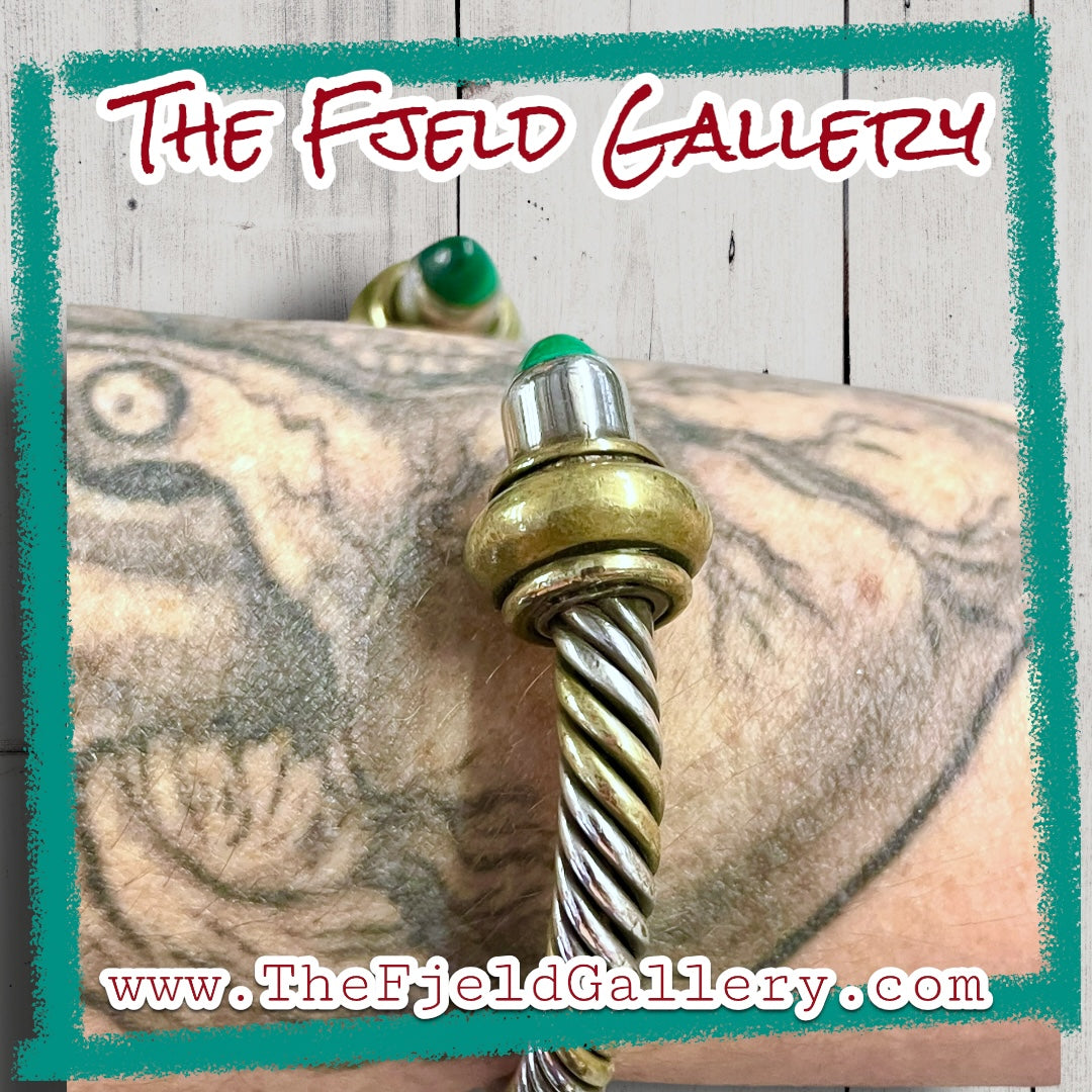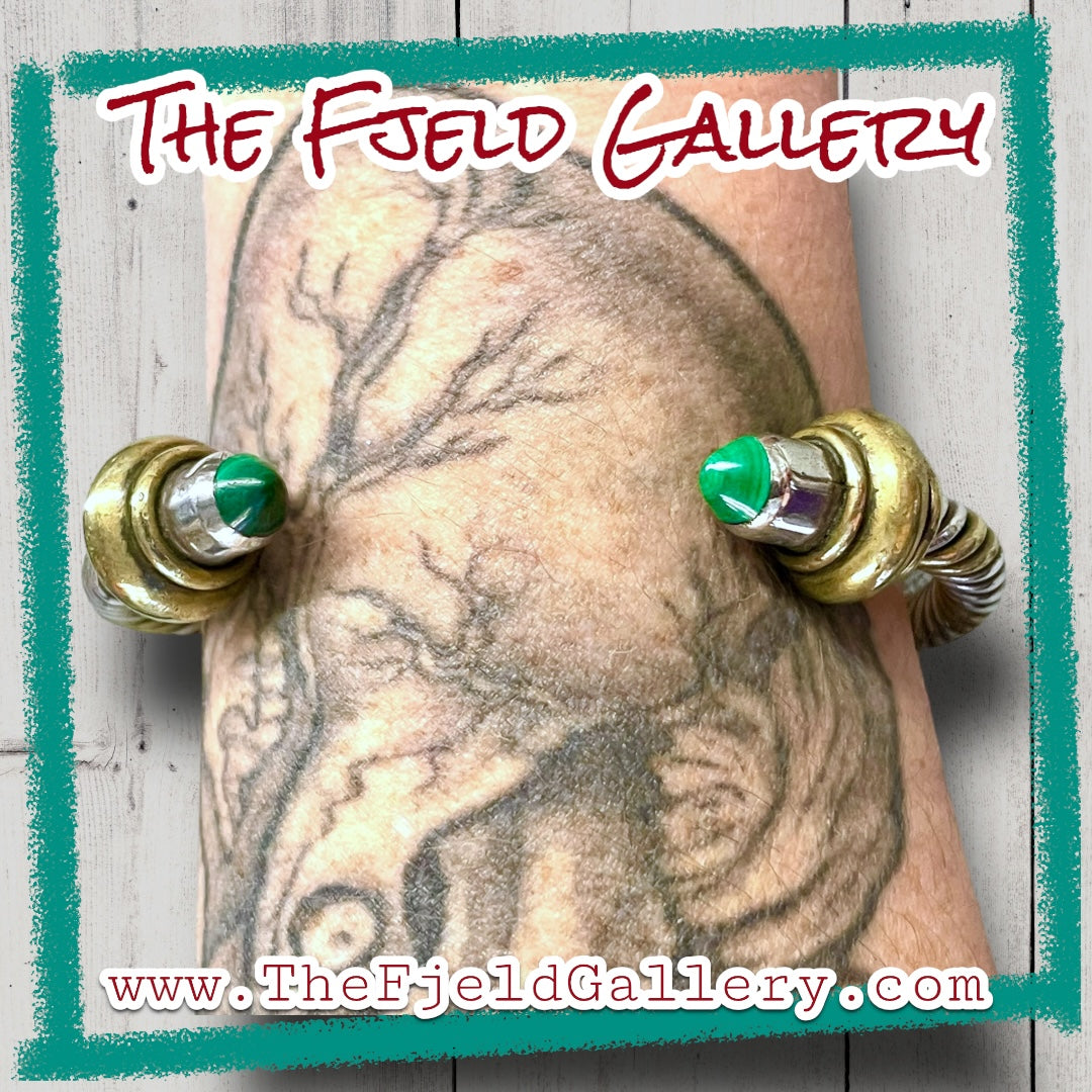Malachite Taxco Sterling Silver & Brass Twisted Cable Cuff Bracelet