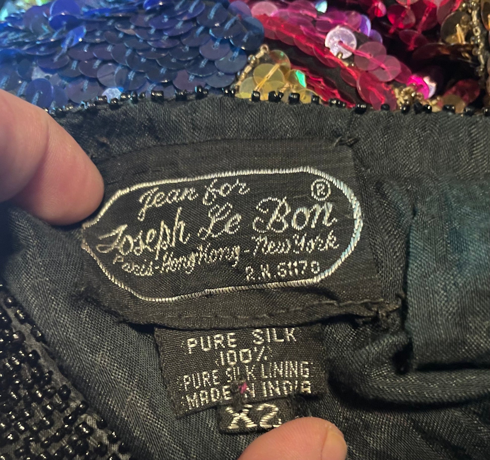Tag designer says: “Jean for Joseph Le Bon / Paris - Hong Kong - New York”. Care tag states: 100% Silk, Made in India.