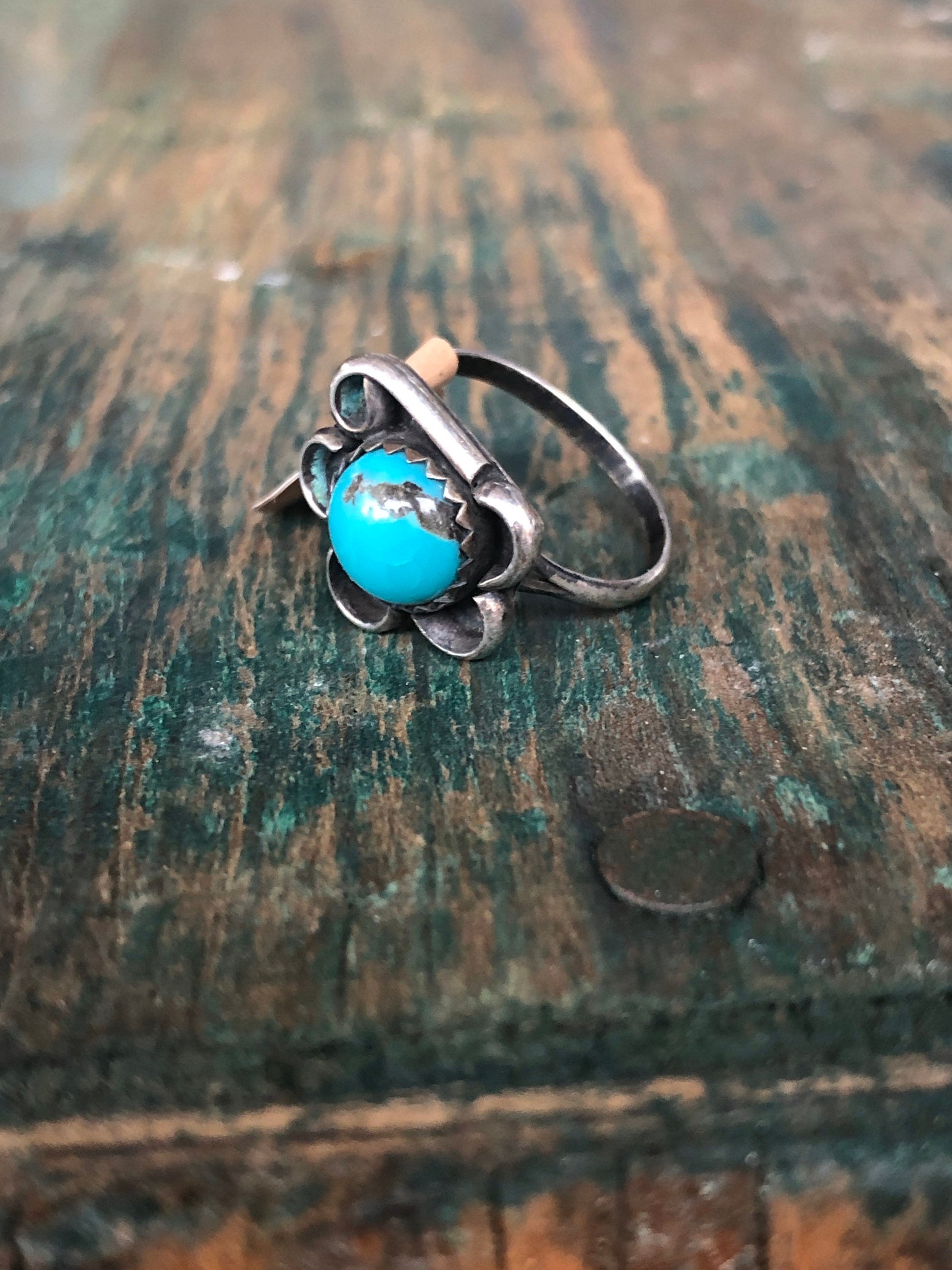 Sterling Silver Native American Turquoise Gemstone Flower Ring