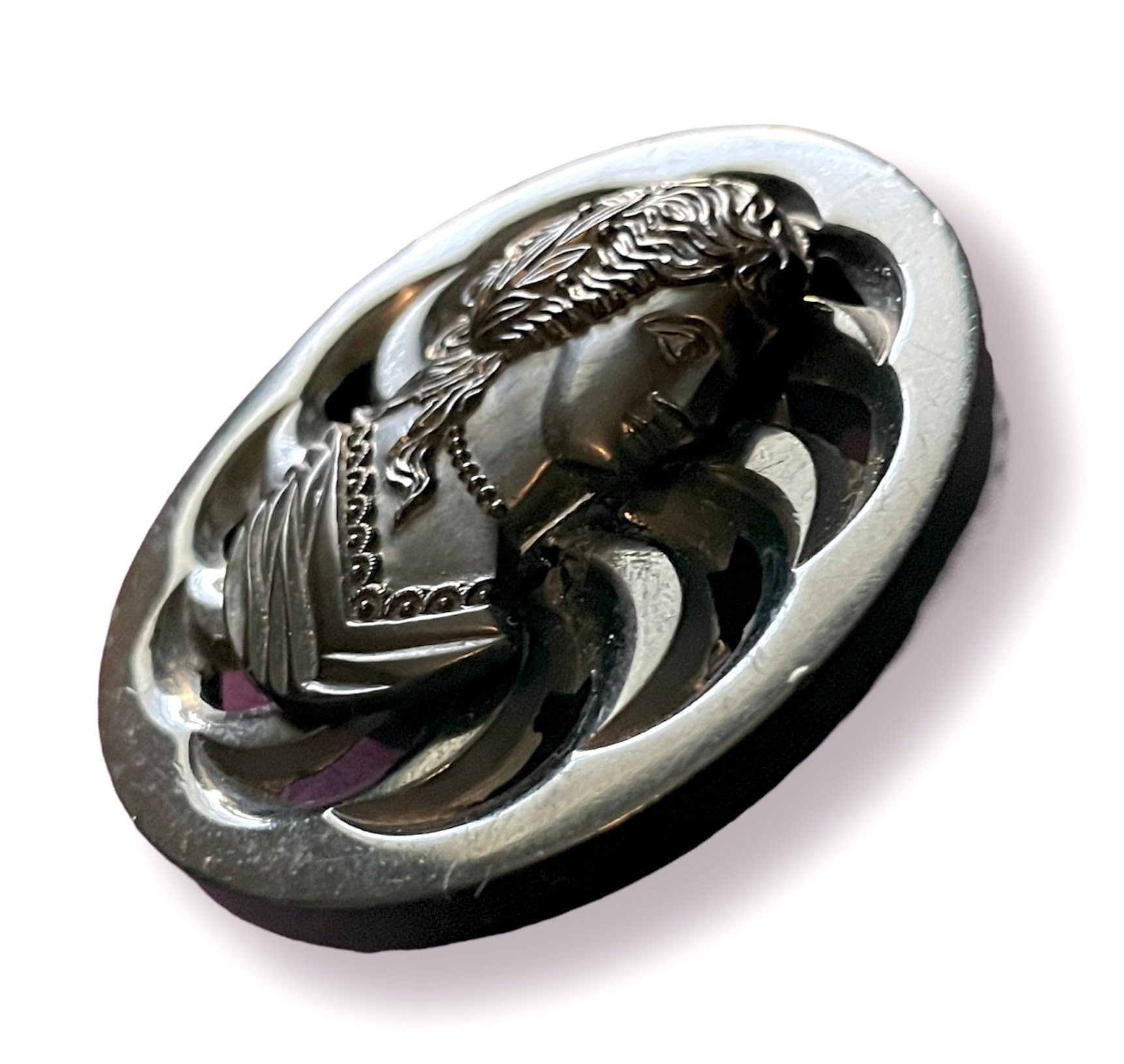 Victorian Molded Early Plastic Mourning Cameo Brooch