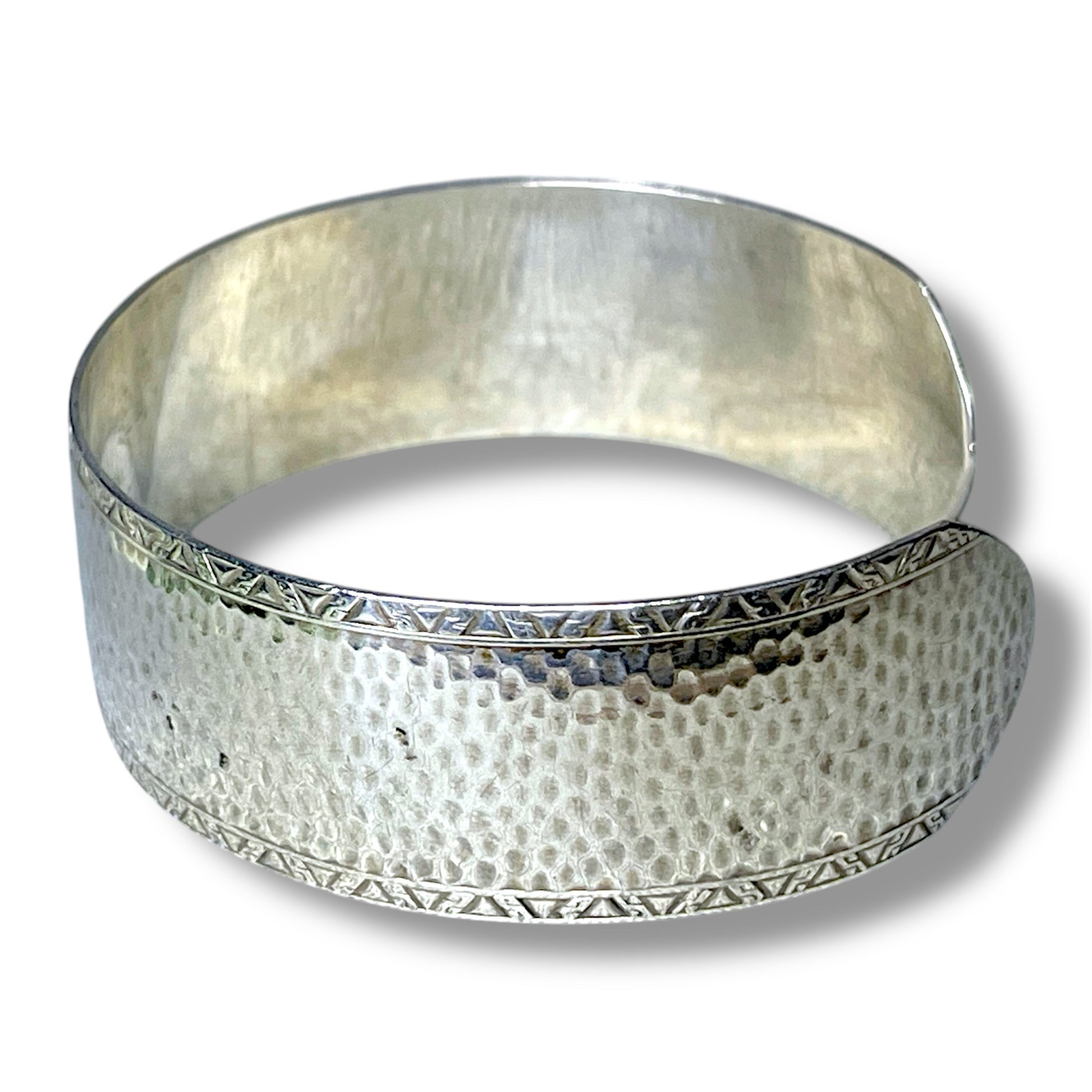 Vintage Hammer Finish Sterling Silver Wide Cuff Bracelet