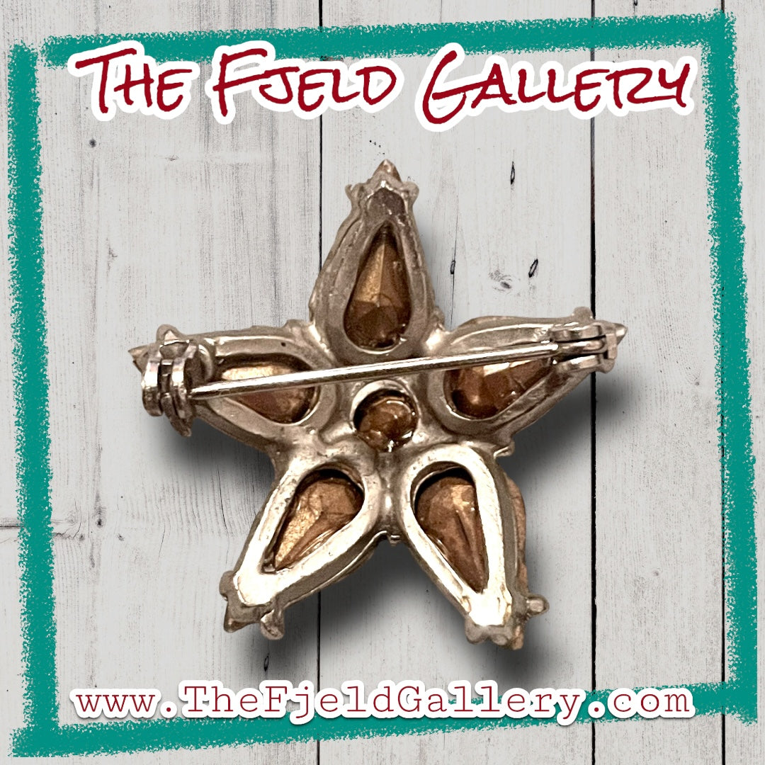 Vintage Hollywood Regency Crystal Rhinestone Flower Brooch