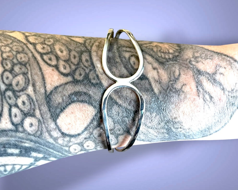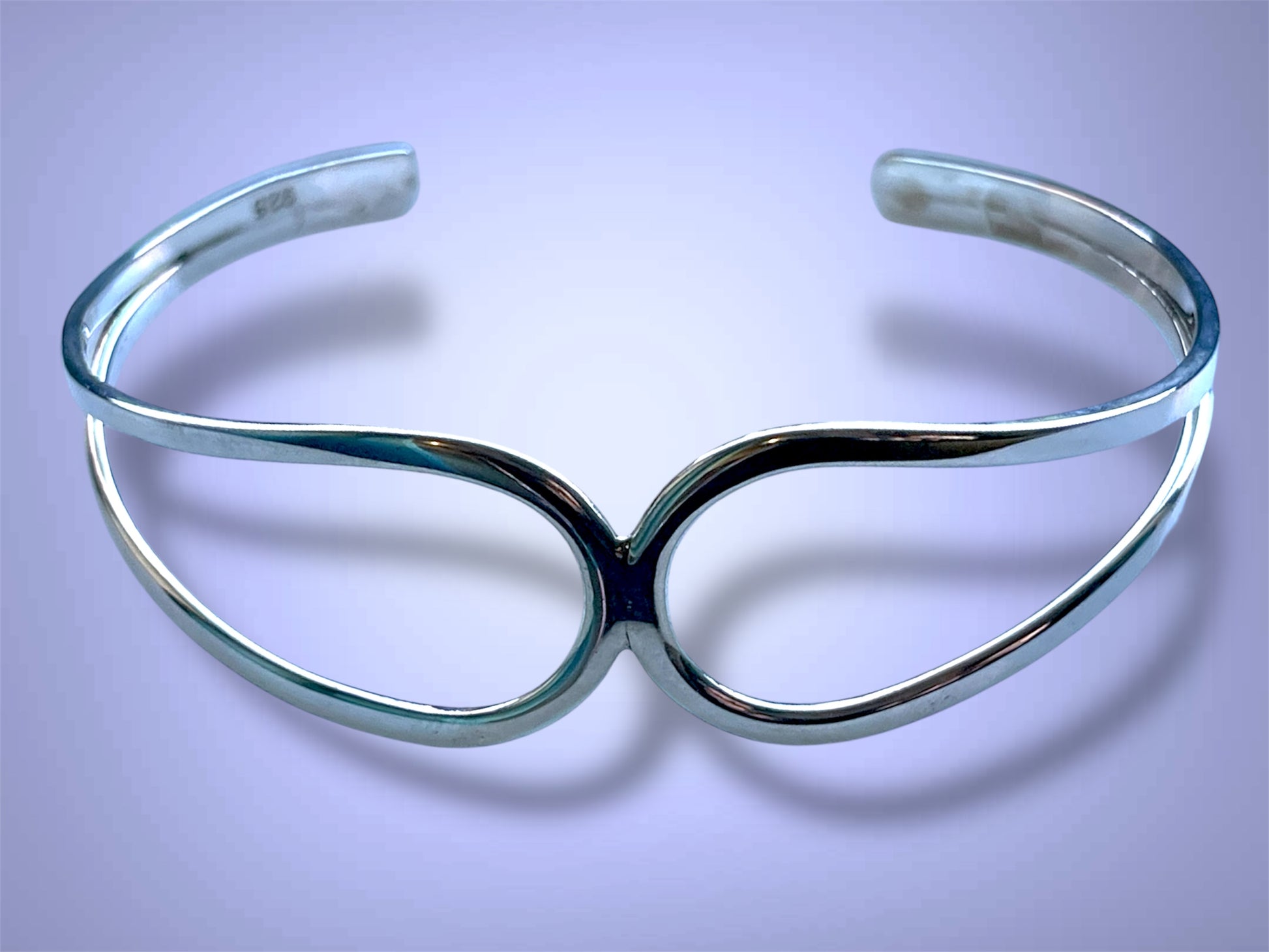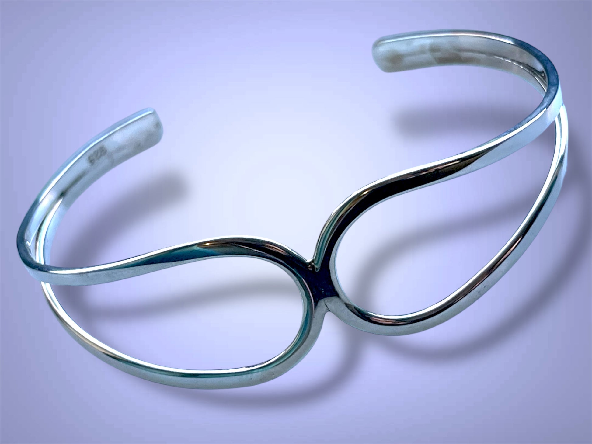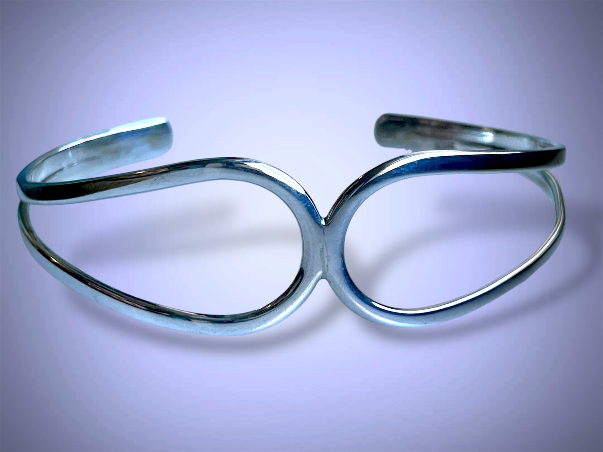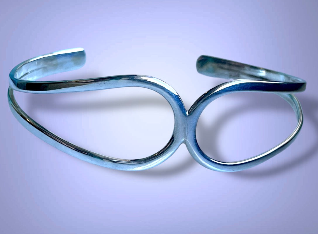 Vintage Solid Sterling Silver Geometric Double Teardrop Cuff Bracelet