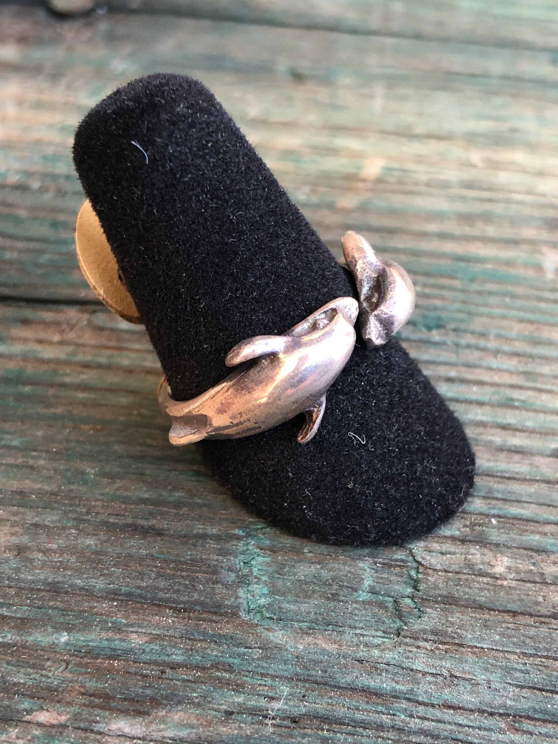 Vintage Sterling Silver Double Dolphin Open Bypass Ring