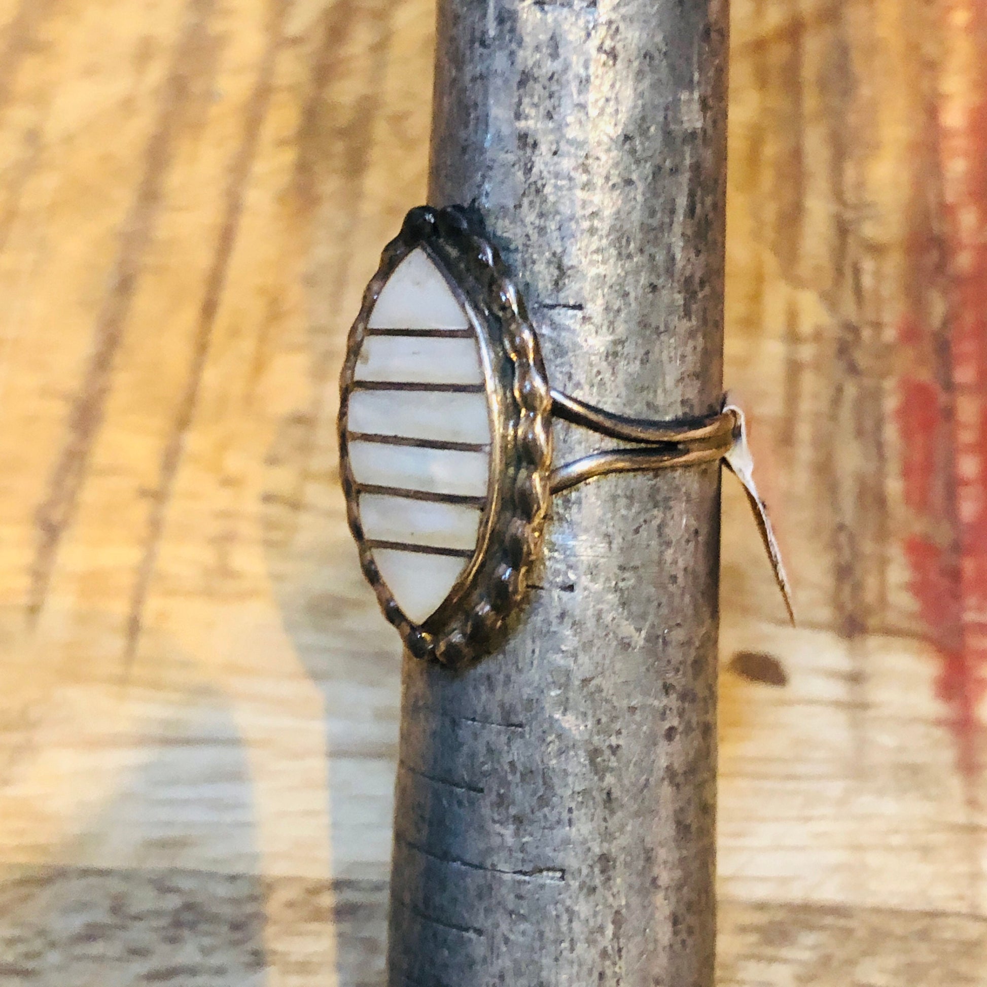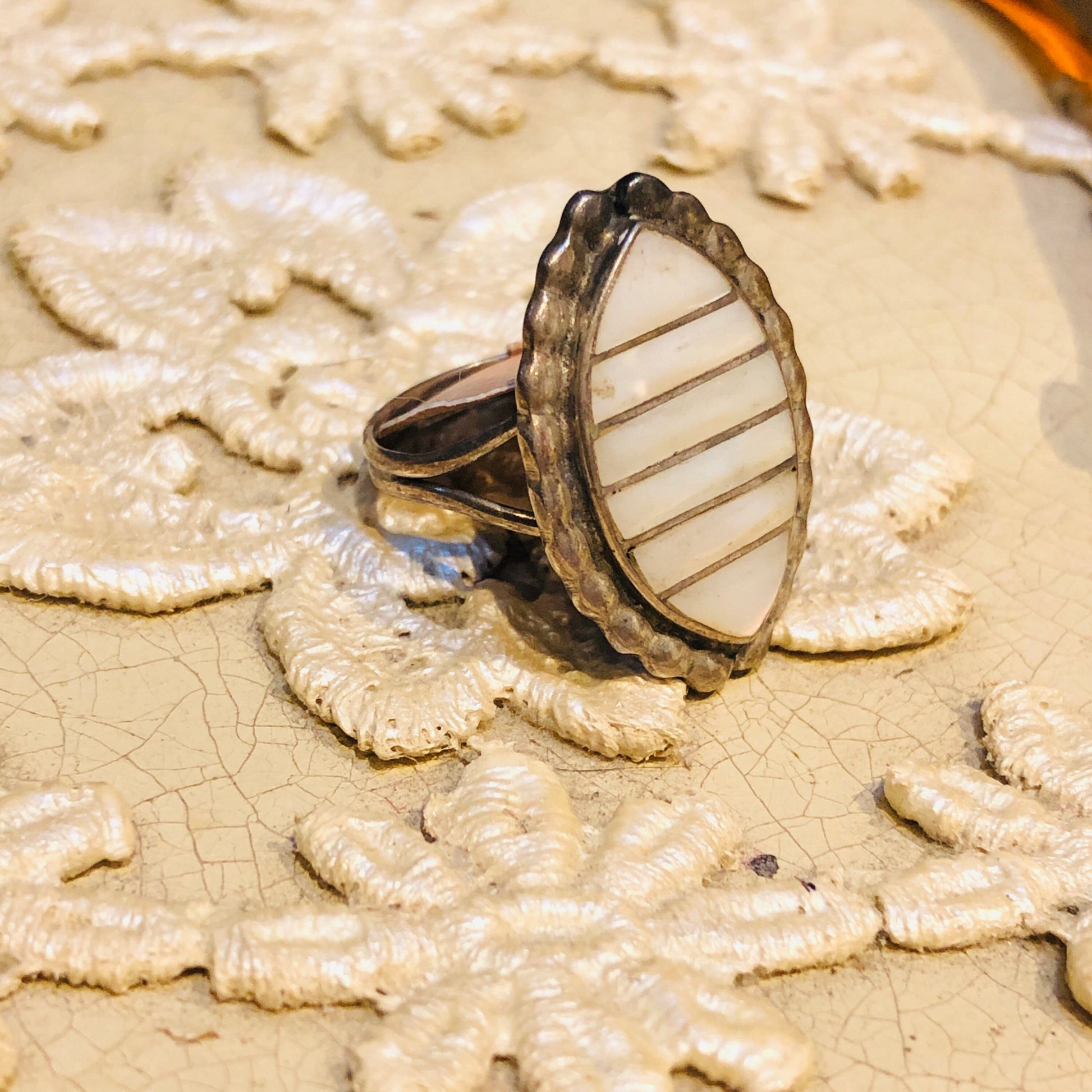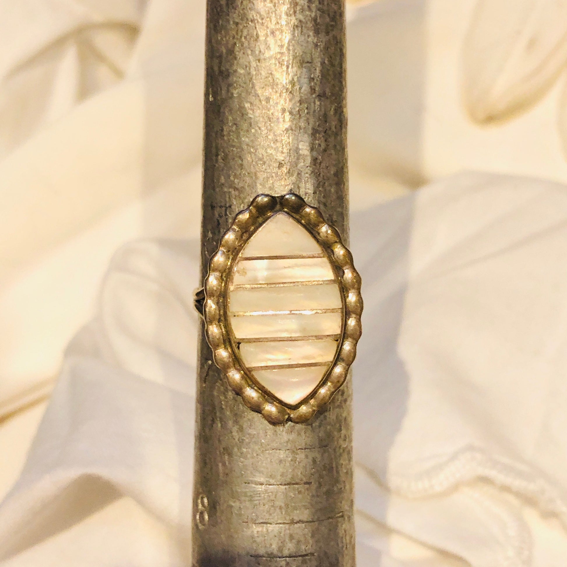 Vintage Zuni Native American Sterling Silver & Mother of Pearl with silver inlay Diamond Shaped Ring