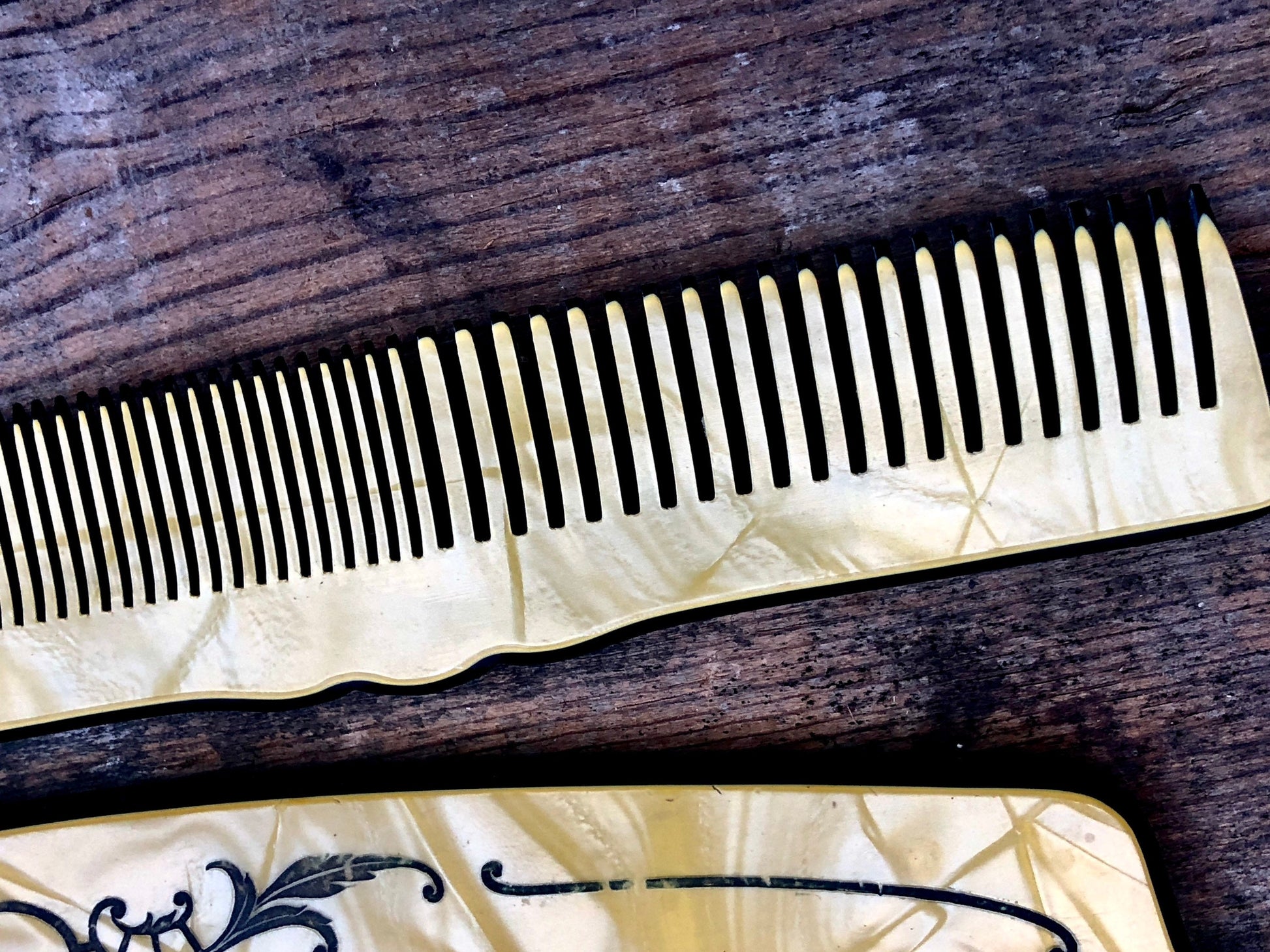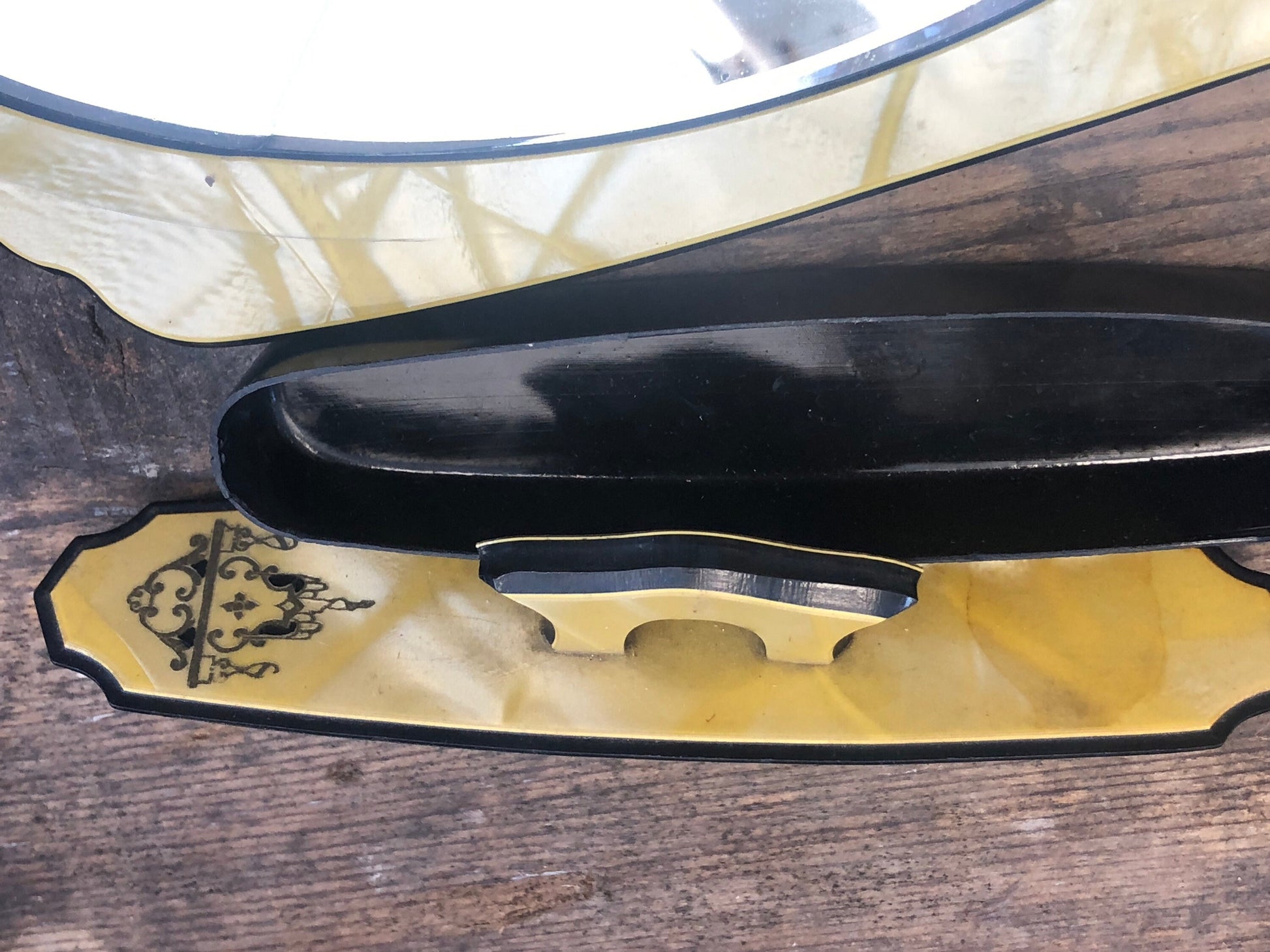 Antique 1920’s Marbleized Cream & Black Art Nouveau 6 pcs Vanity Set : Mirror, Brush & More