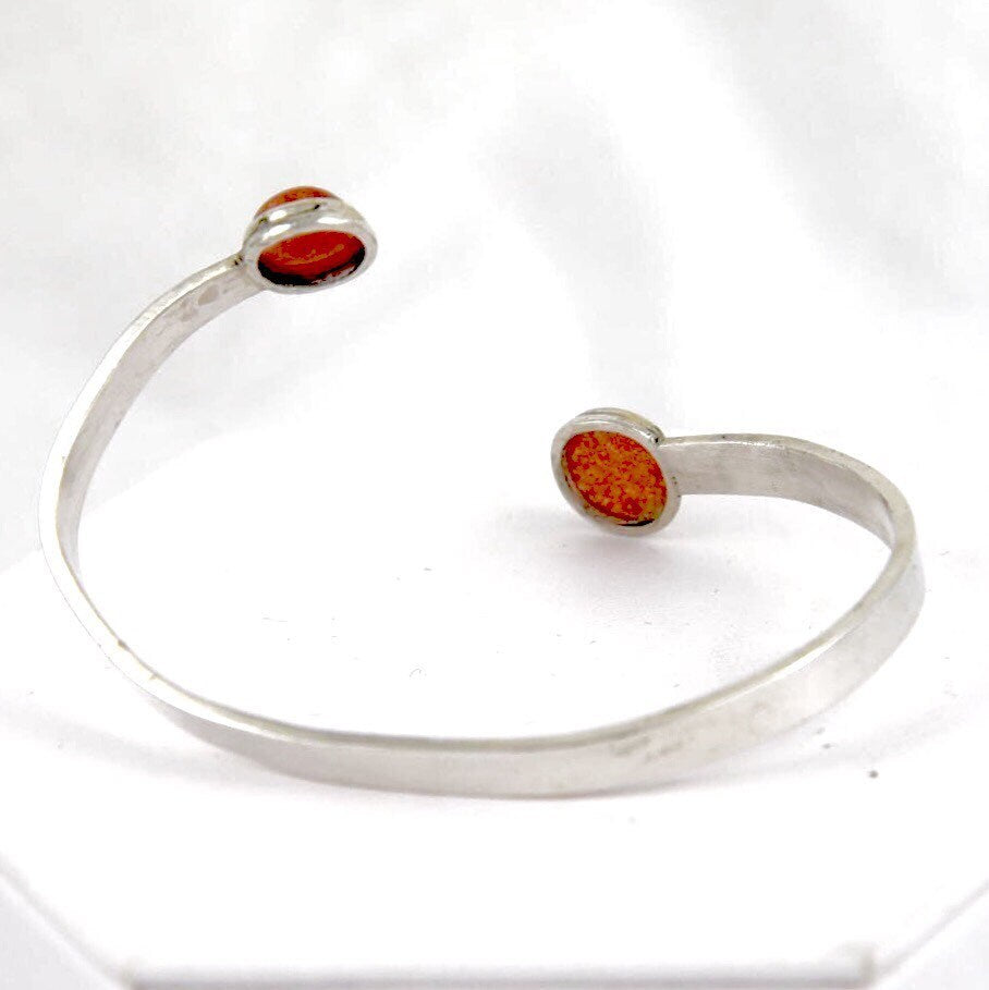 Norwegian Sunstone Handmade Open Back Bezel Set Sterling Silver Modern Minimalist Cuff Bracelet