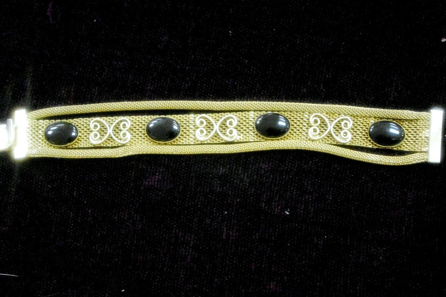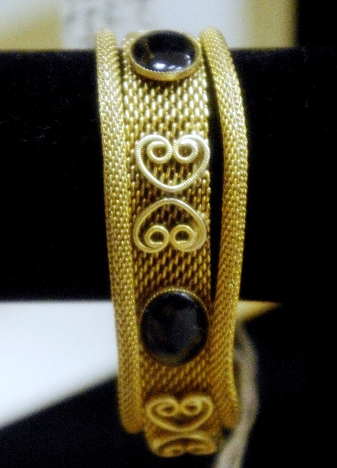 SALE Antique Victorian Gold Mesh, Filigree & Jet Black Onyx Cabochon Bracelet