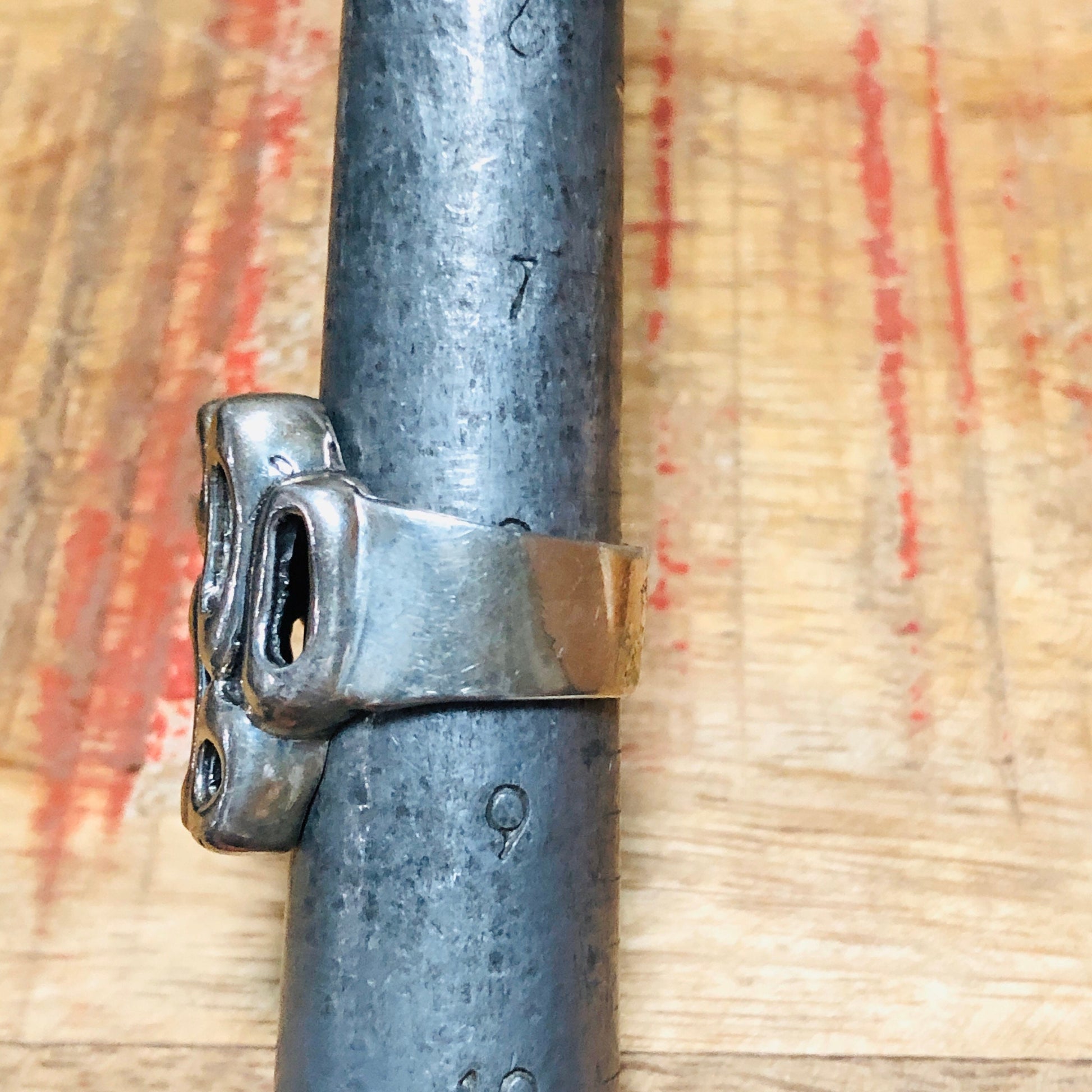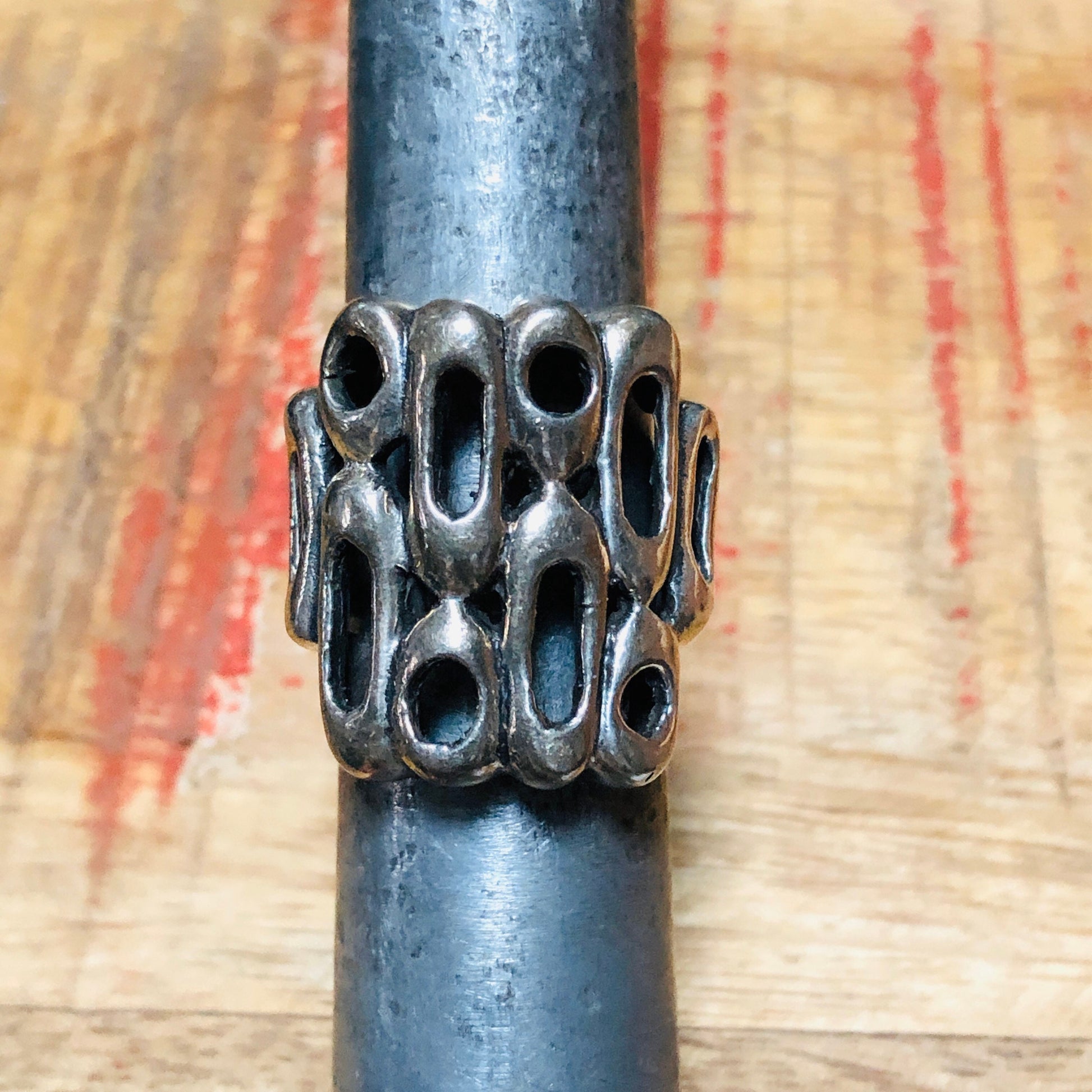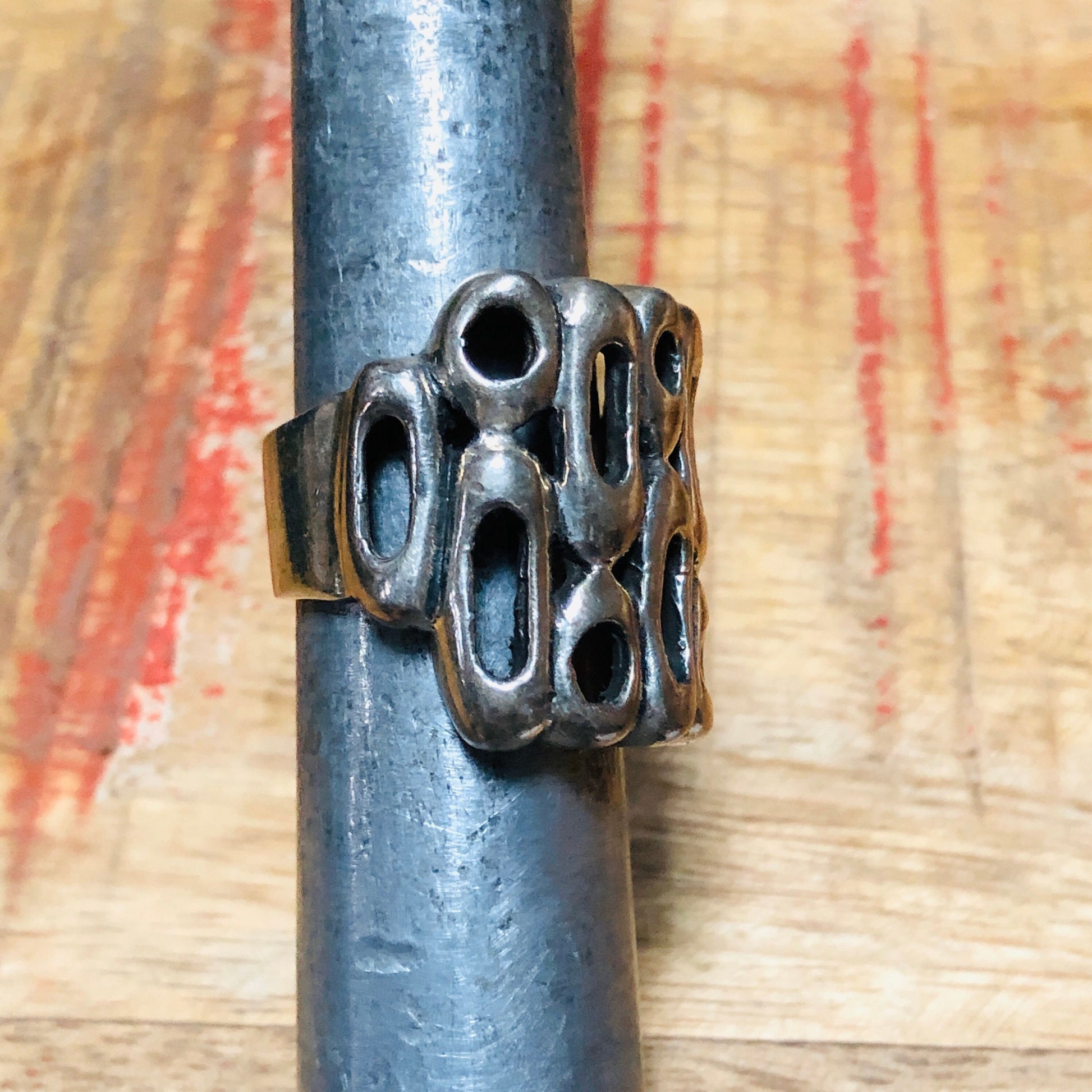 Unique Chunky Cast Sterling Silver Geometric Abstract Mid Century Ring
