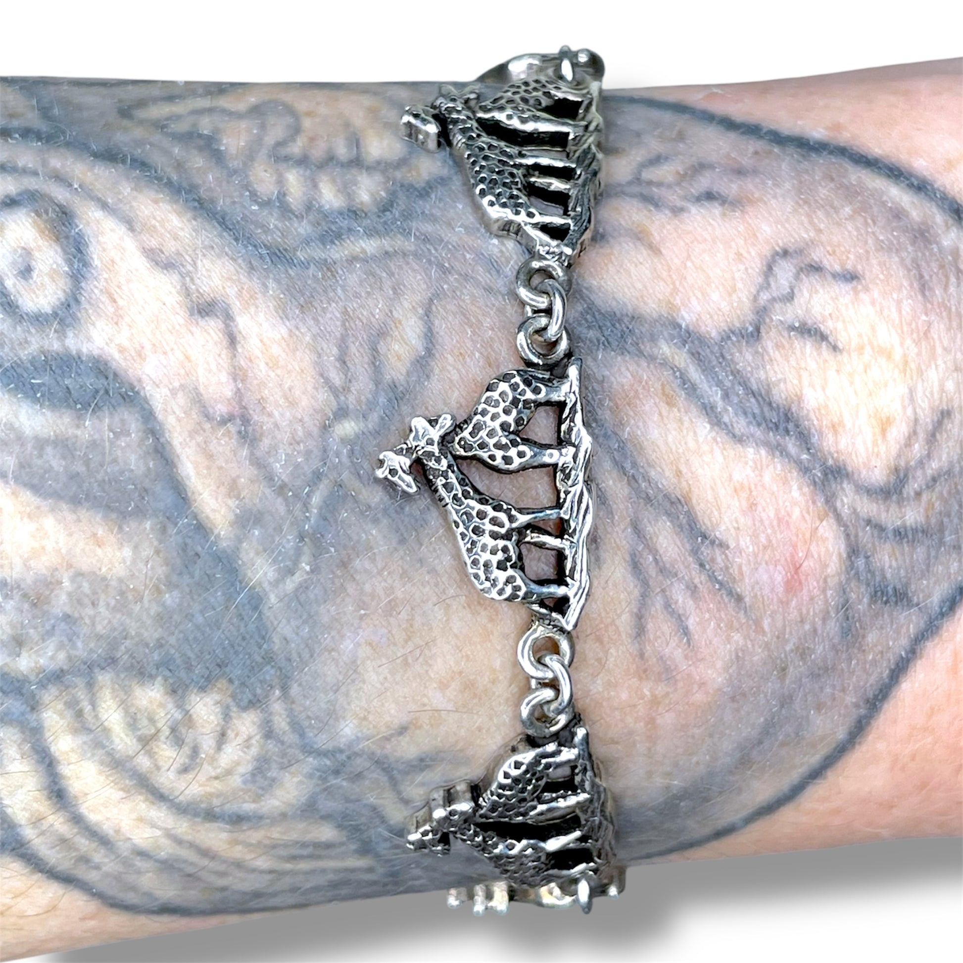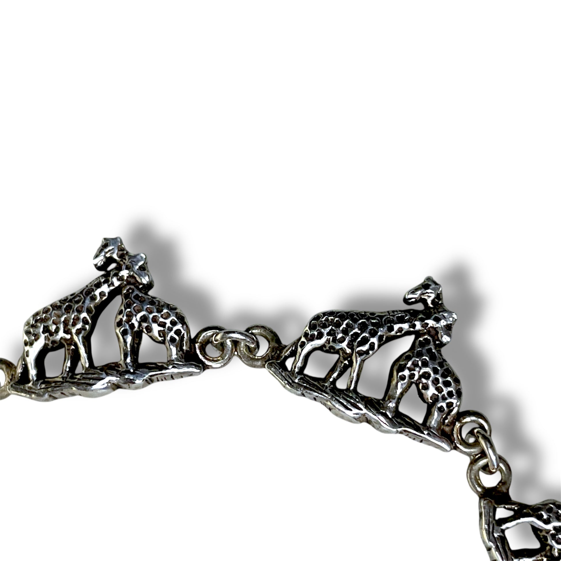 Vintage Sterling Silver Mother & Child Giraffe Link Bracelet