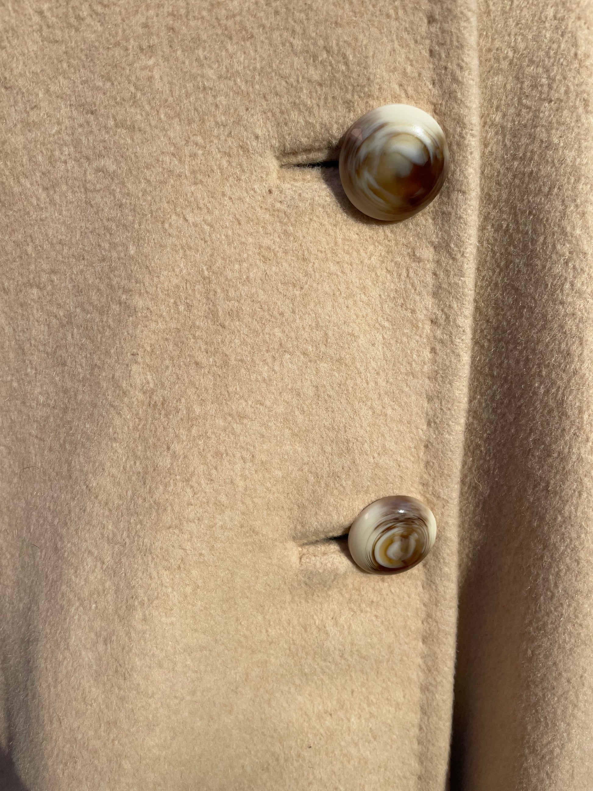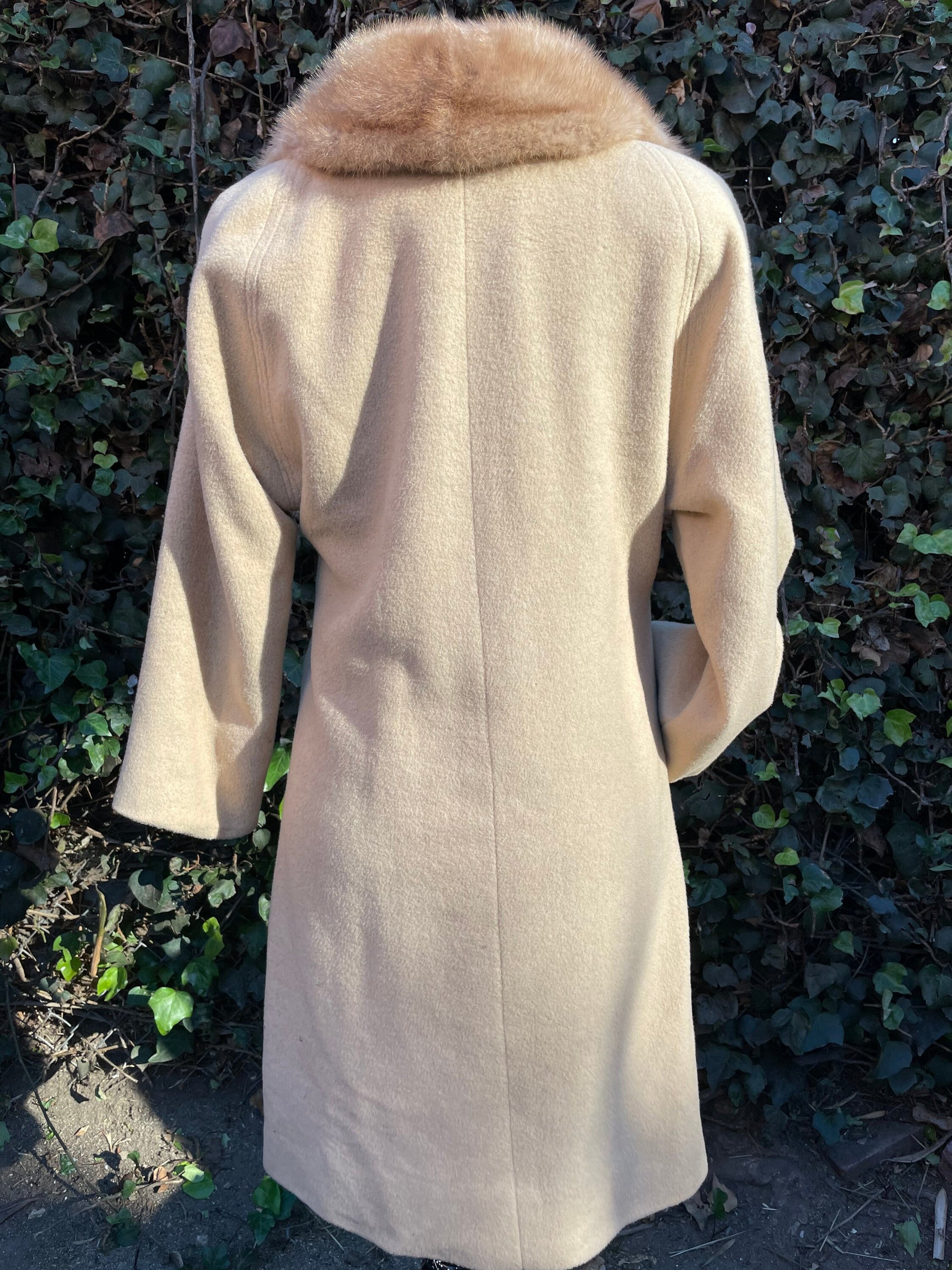 1960 Vintage Light Tan Camel Hair Long Coat with Fur Collar