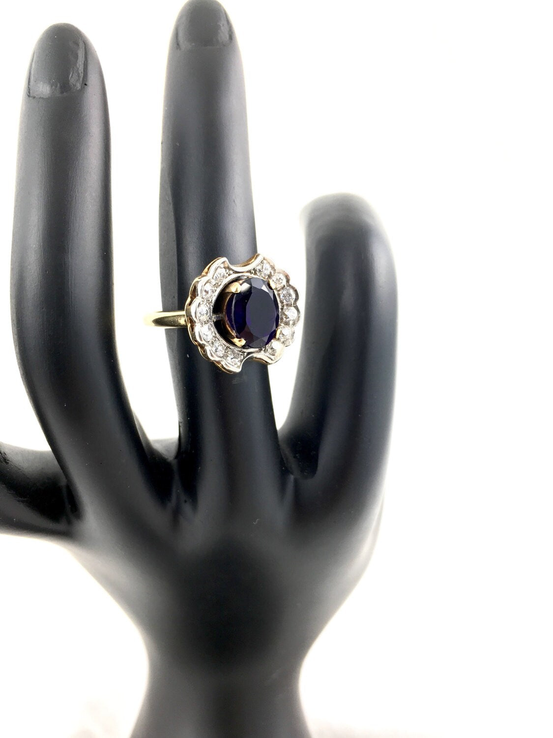 This is a beautiful antique Edwardian 14K gold, & Palladium ring c.1800's. Ring shank is all gold with a palladium face and setting for the diamonds. The amethyst is beautiful, deep purple and prong set in gold. signed 14K Palldm and makers mark. size 5