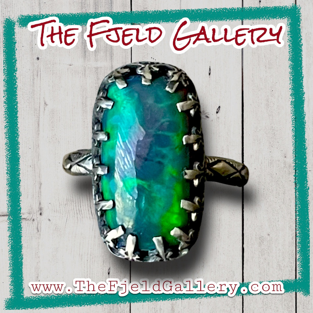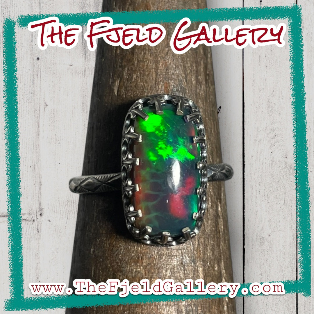Handmade Ethiopian Black Green Opal Gemstone Sterling Ring