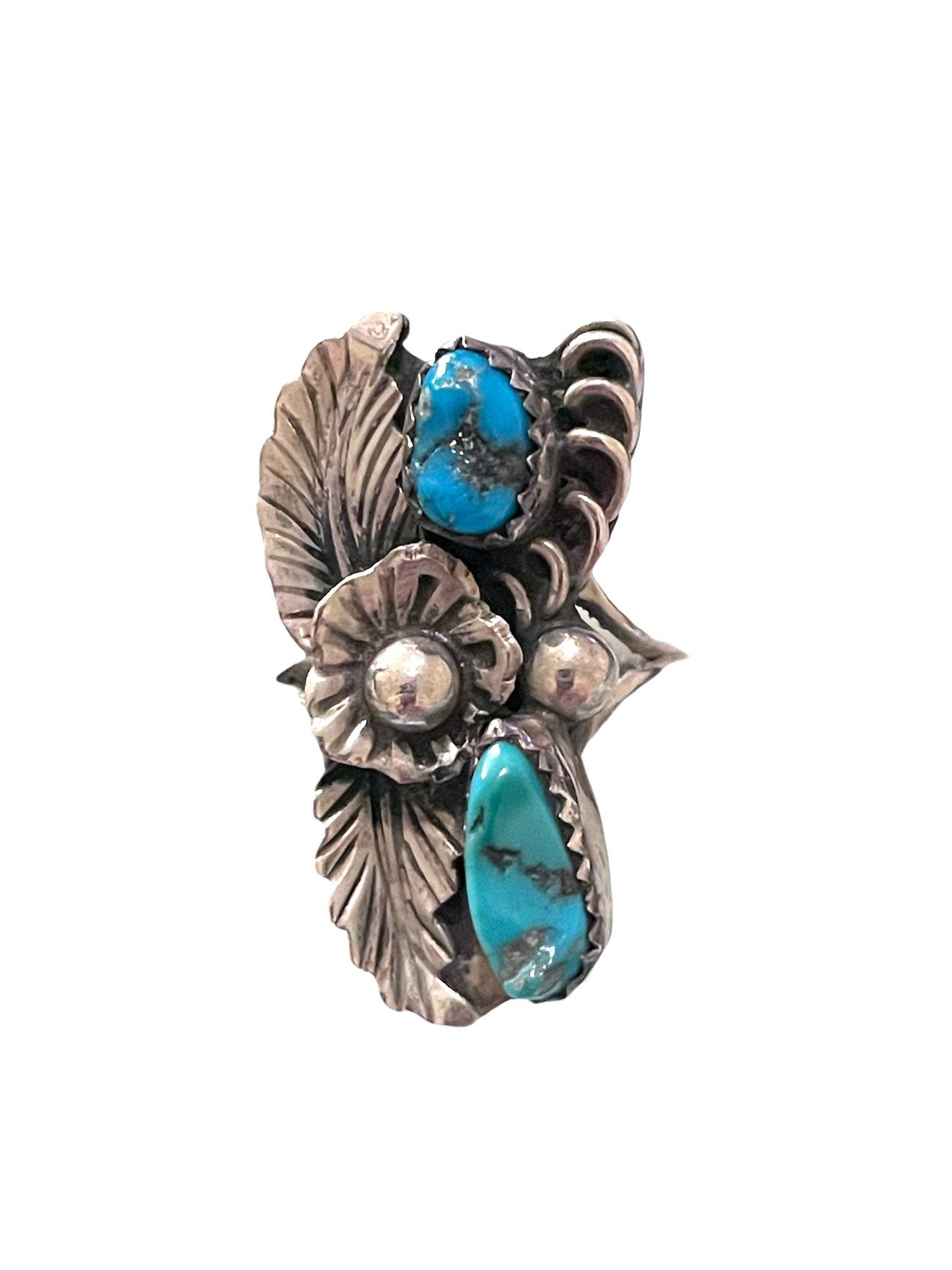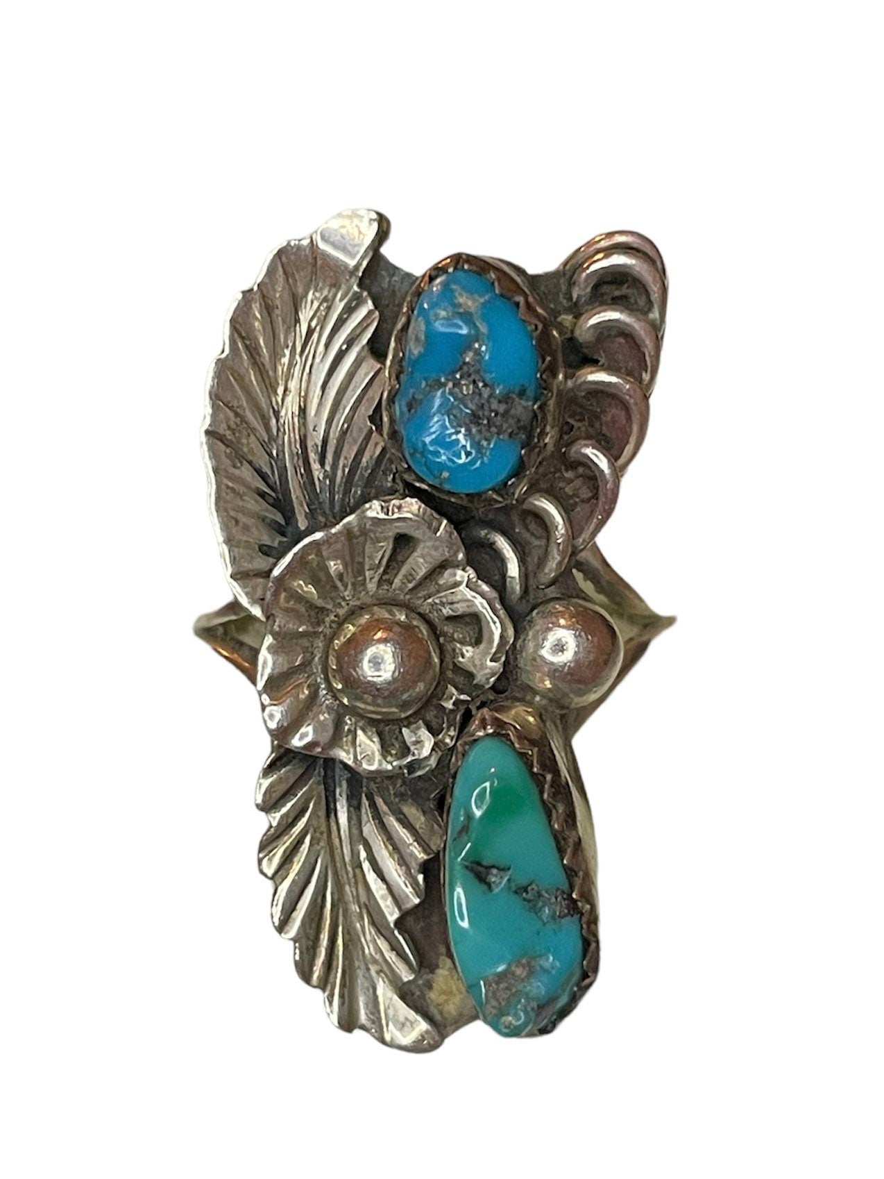 Native American Double Turquoise Gemstone Sterling Silver Vintage Ring