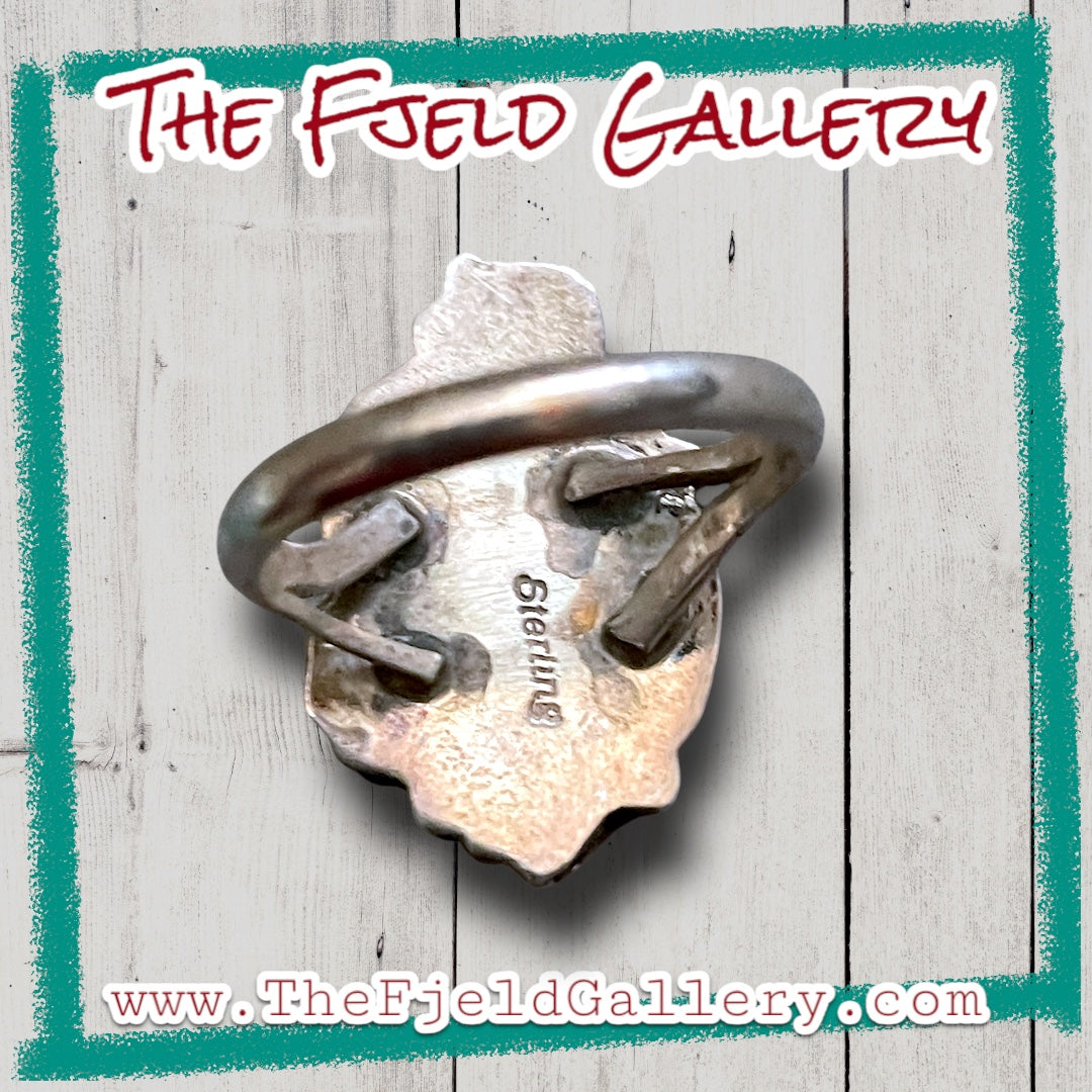 Native American Turquoise & Red Coral Sterling Silver Flower Leaf Detail Ring