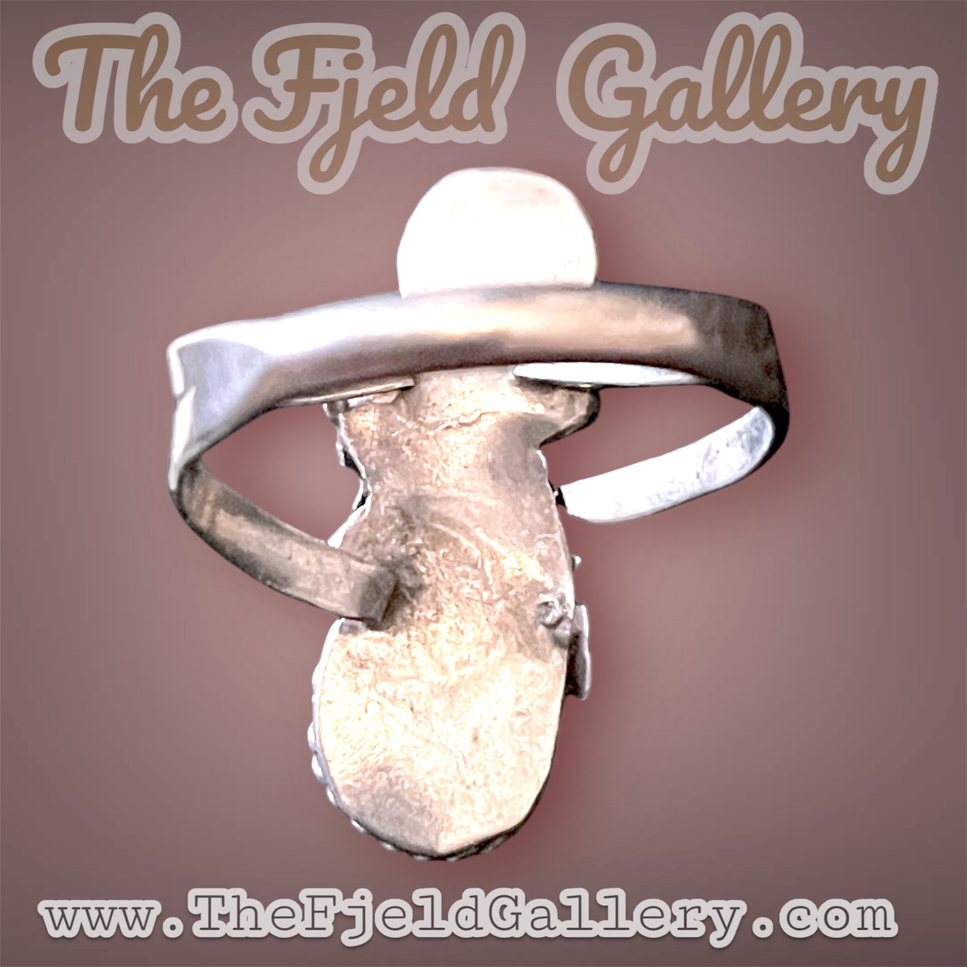 Native American Turquoise & Red Coral Sterling Silver Leaf Bypass Wrap Ring