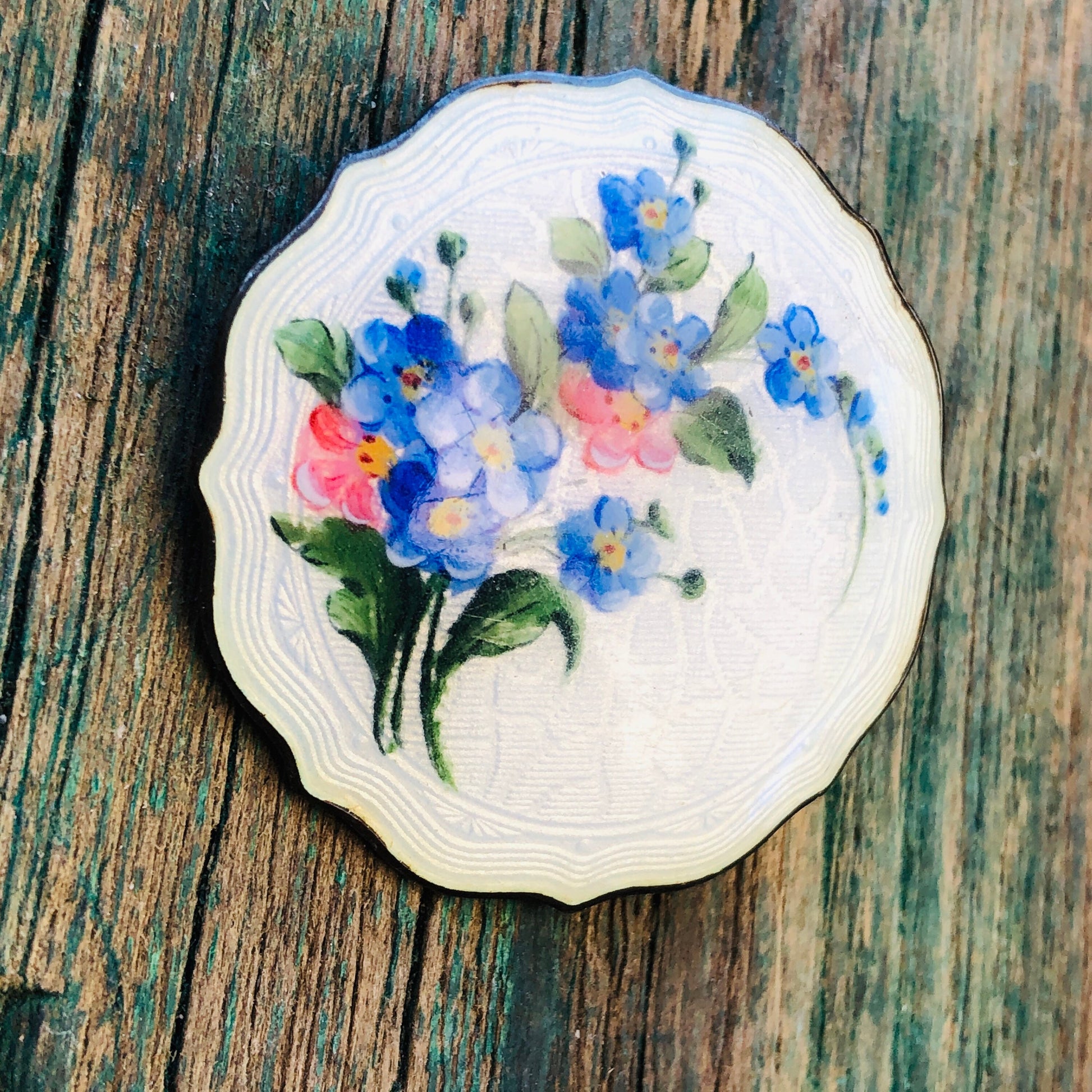 Norwegian Sterling Silver Cloisonné Guilloche Enamel Floral Brooch Purple Blue & Pink Enamel Flowers 32mm Hallmarked Askel Holmsen