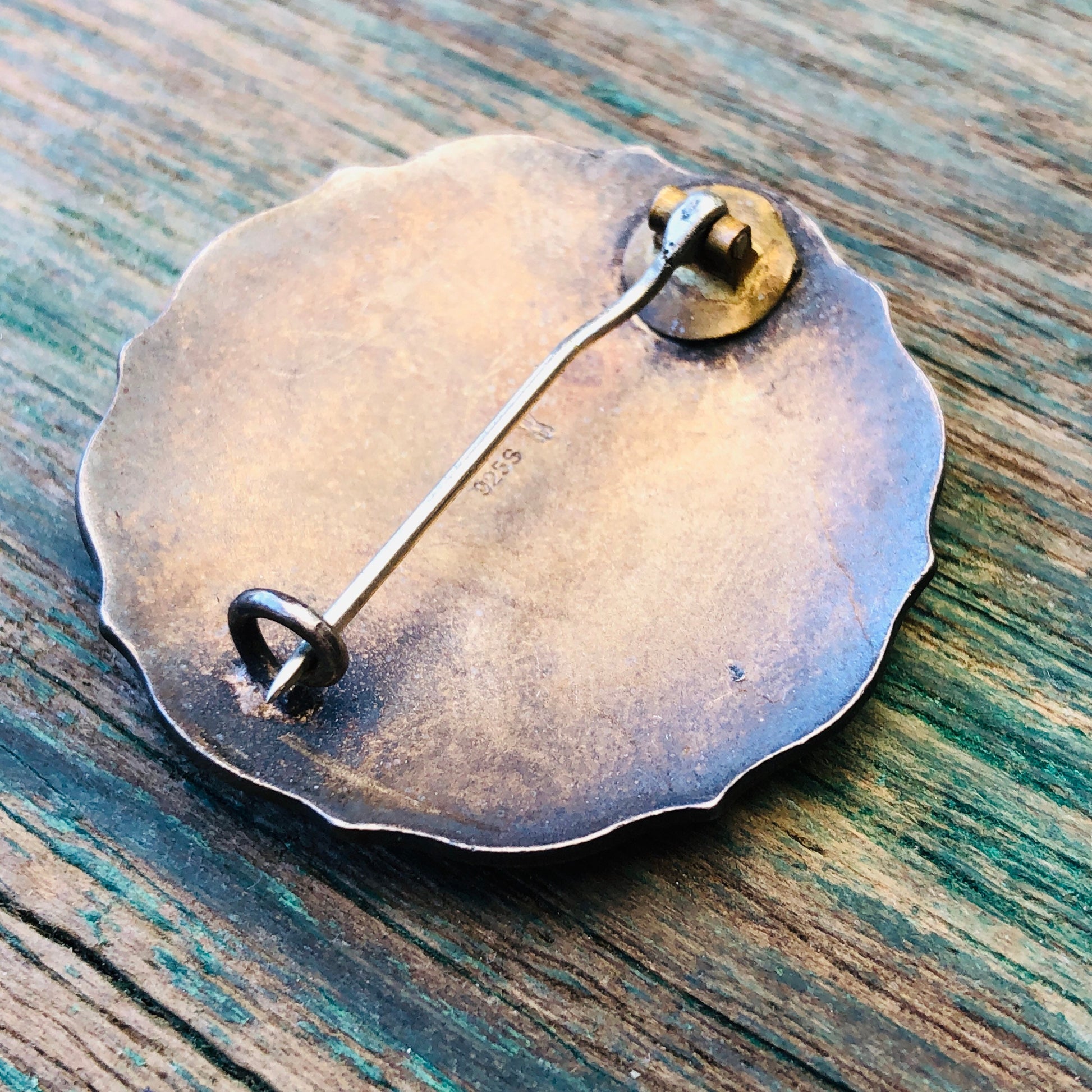 Norwegian Askel Holmsen Sterling Cloisonné Guilloche Enamel Floral Brooch