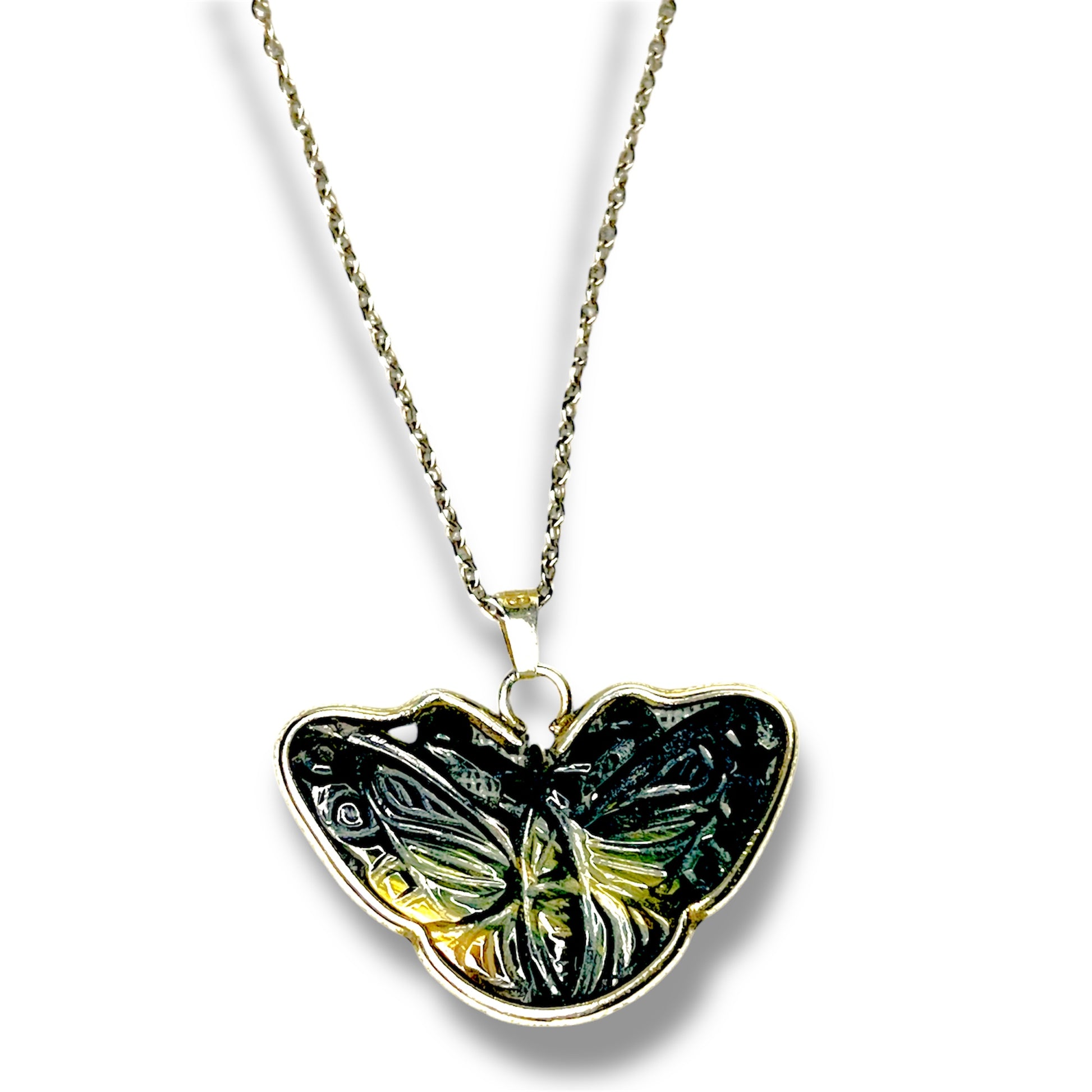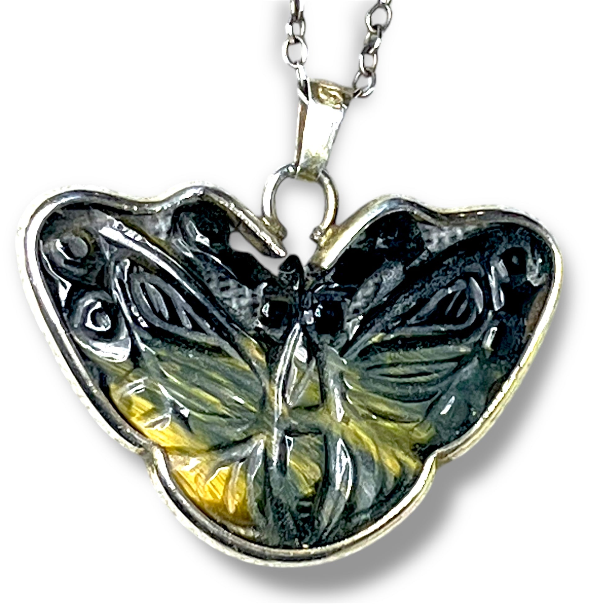 Sterling Silver Carved Tigers Eye Butterfly Necklace Pendant