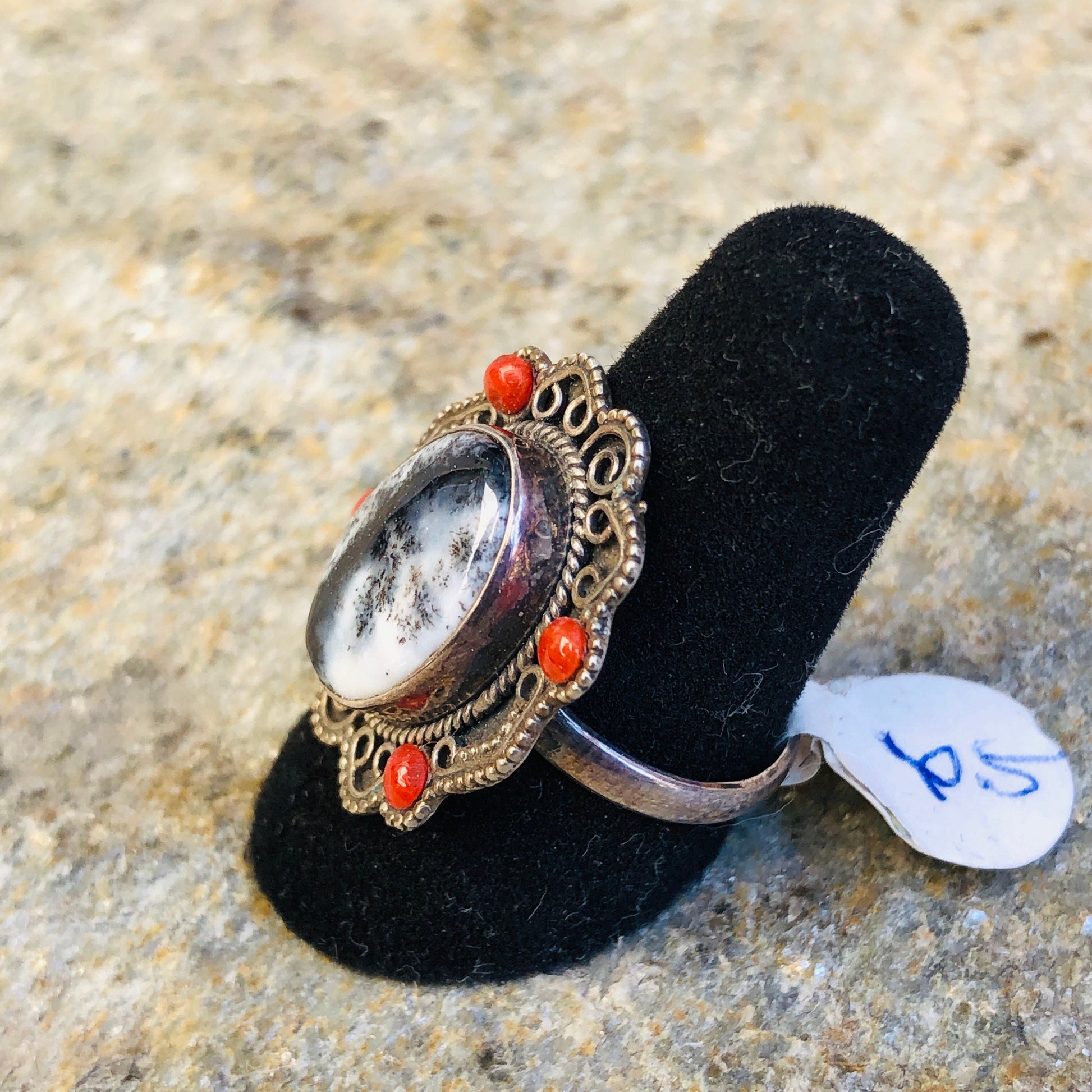 Sterling Silver Winter Dendrite Agate & Res Coral Gemstone Ring