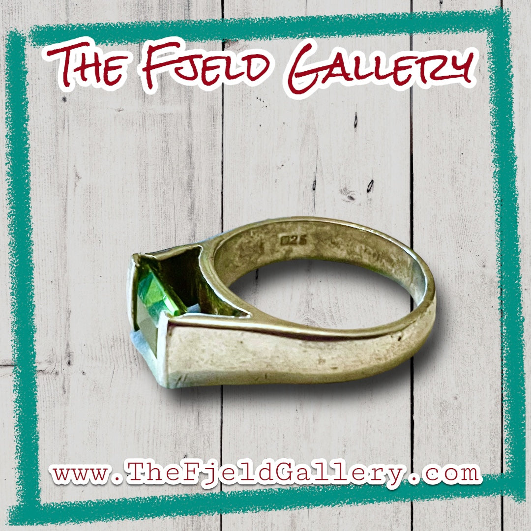 Vintage Modern Square Peridot Gemstone Ring