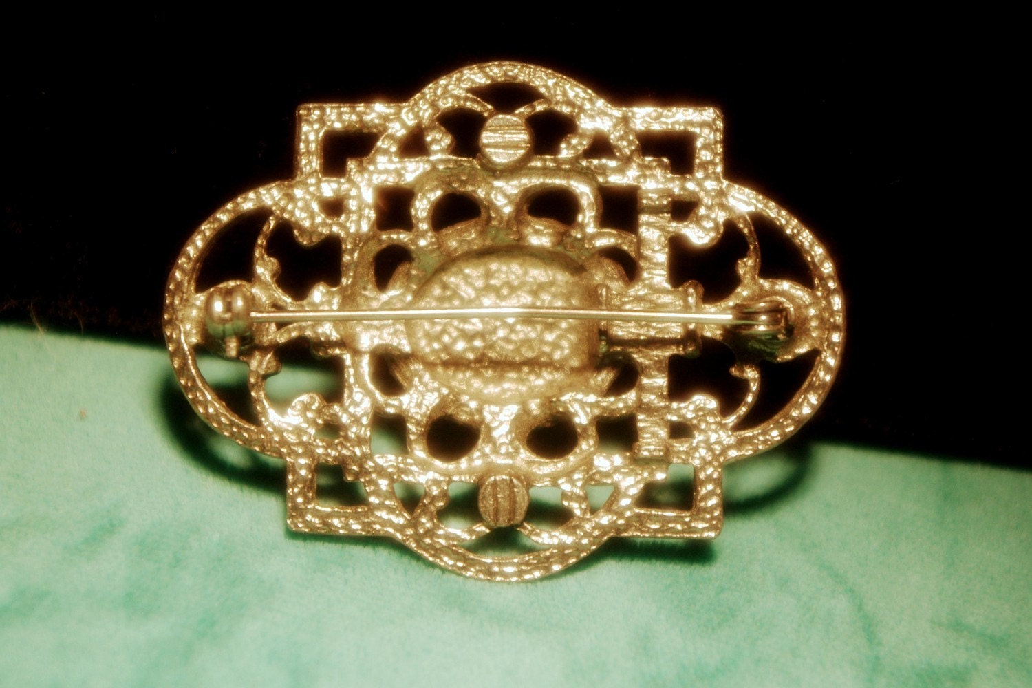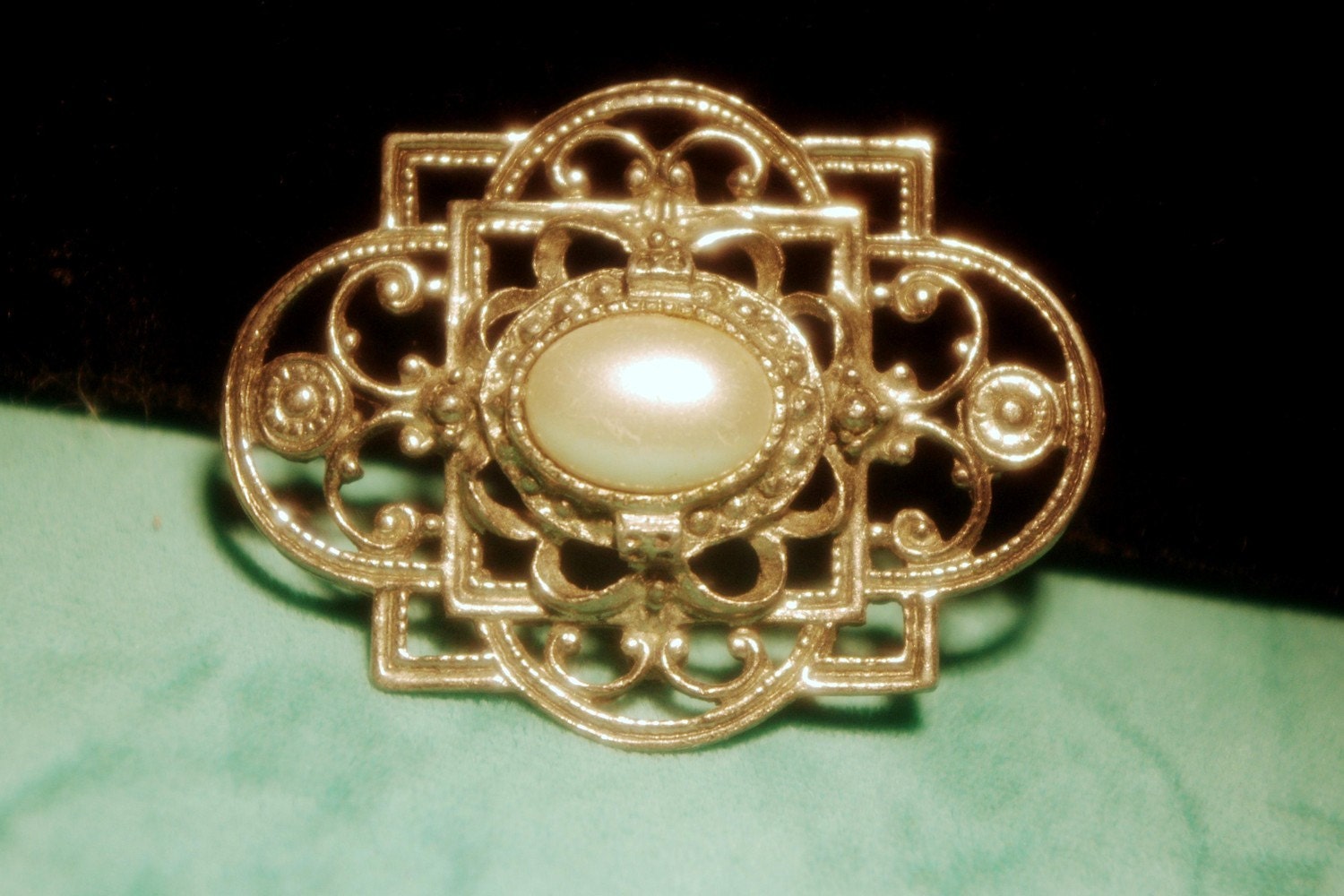 Vintage Silver Filigree Brooch with Pearl Cabochon Stone