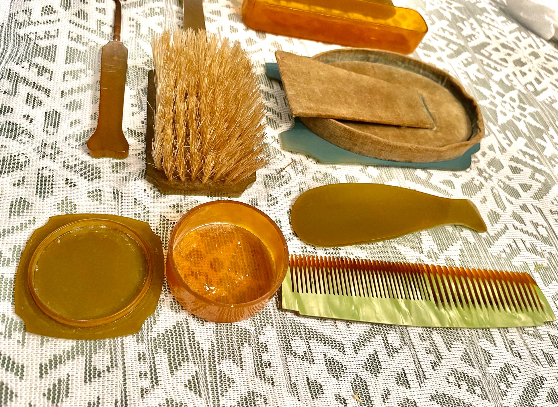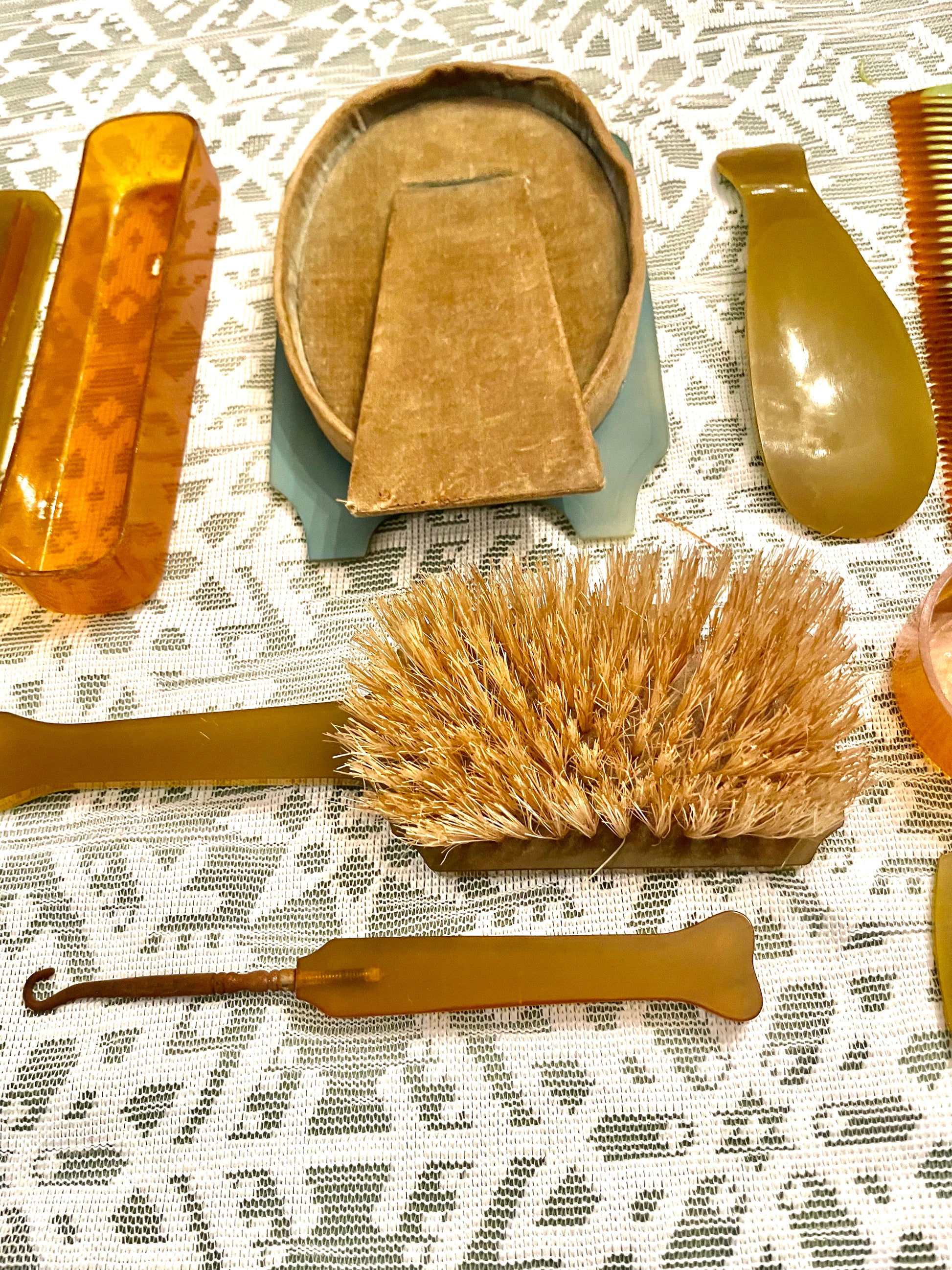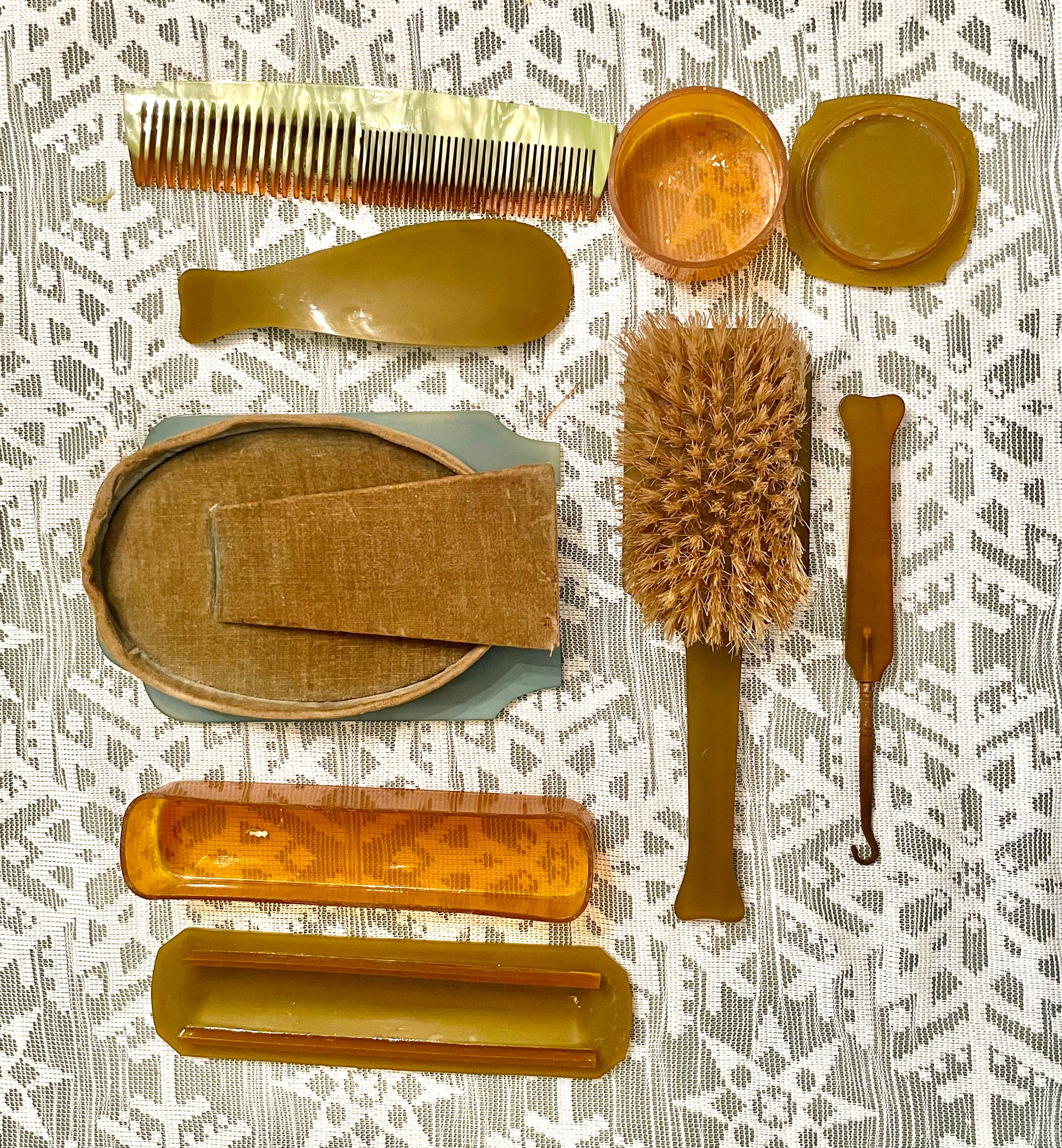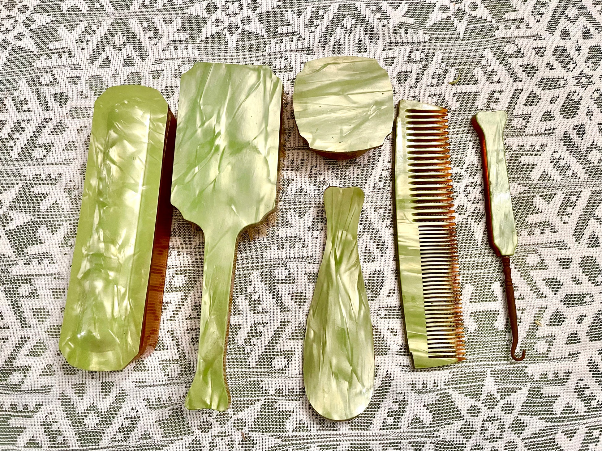 1920’s Green Marble Celluloid 7 pcs Vanity Set