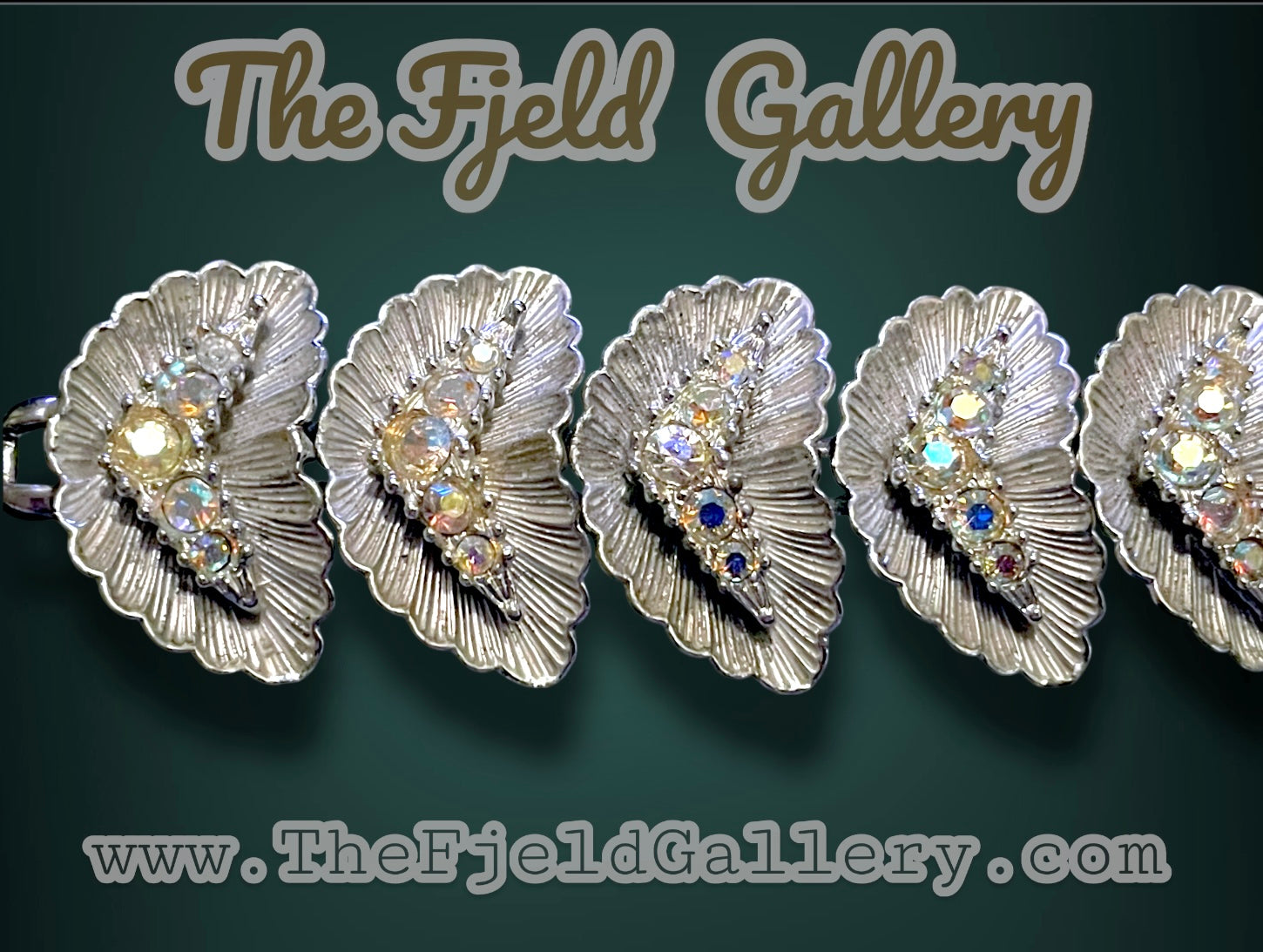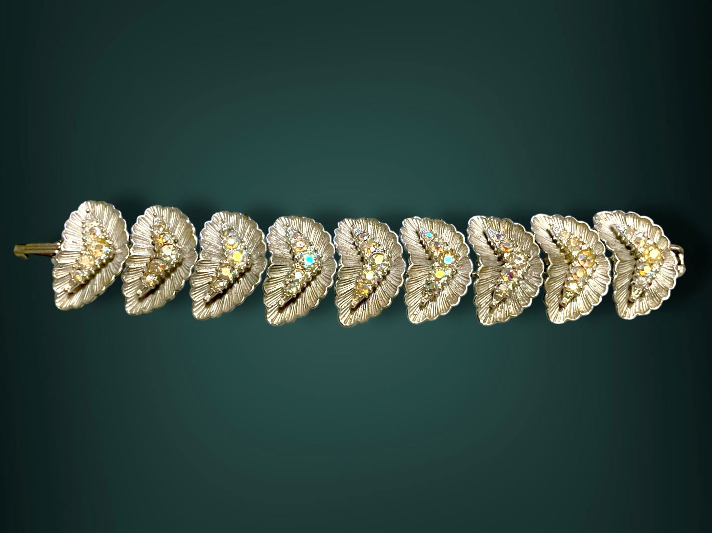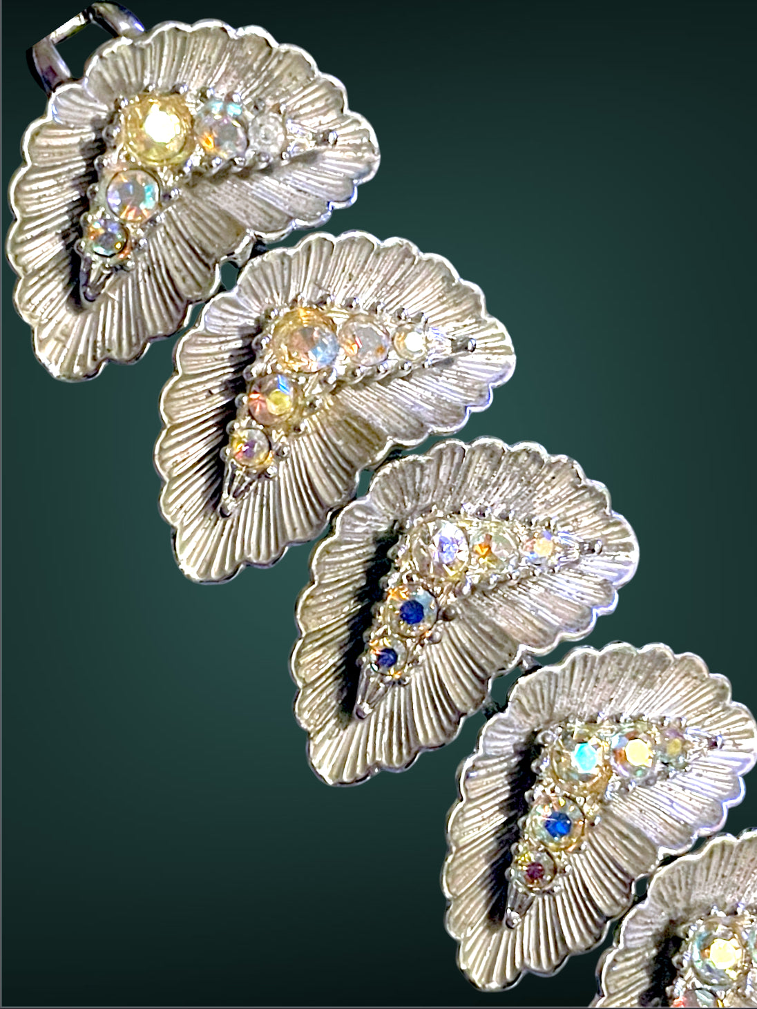 1940’s BSK Aurora Borealis Crystal Hollywood Regency Mid Century Silver Bracelet