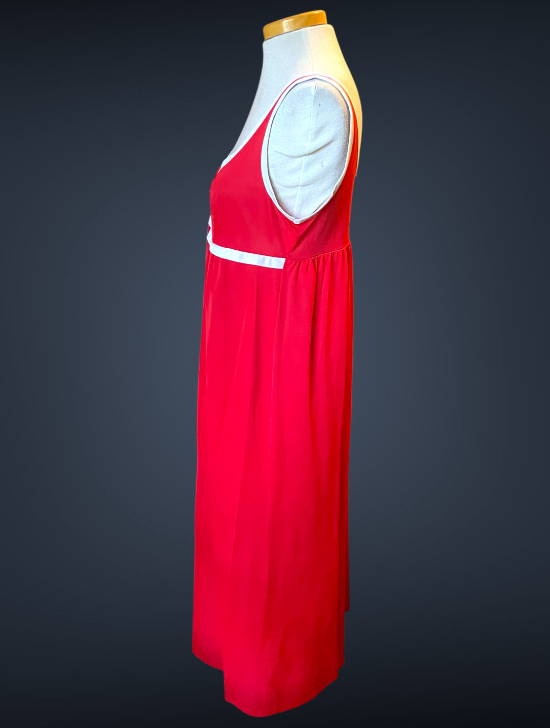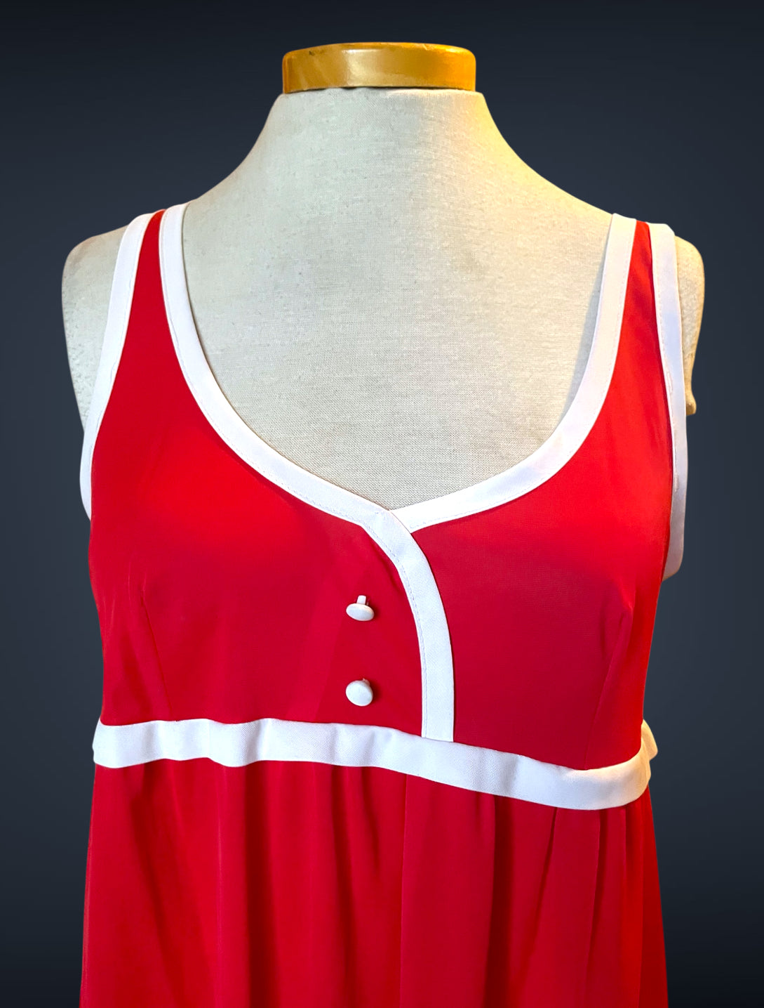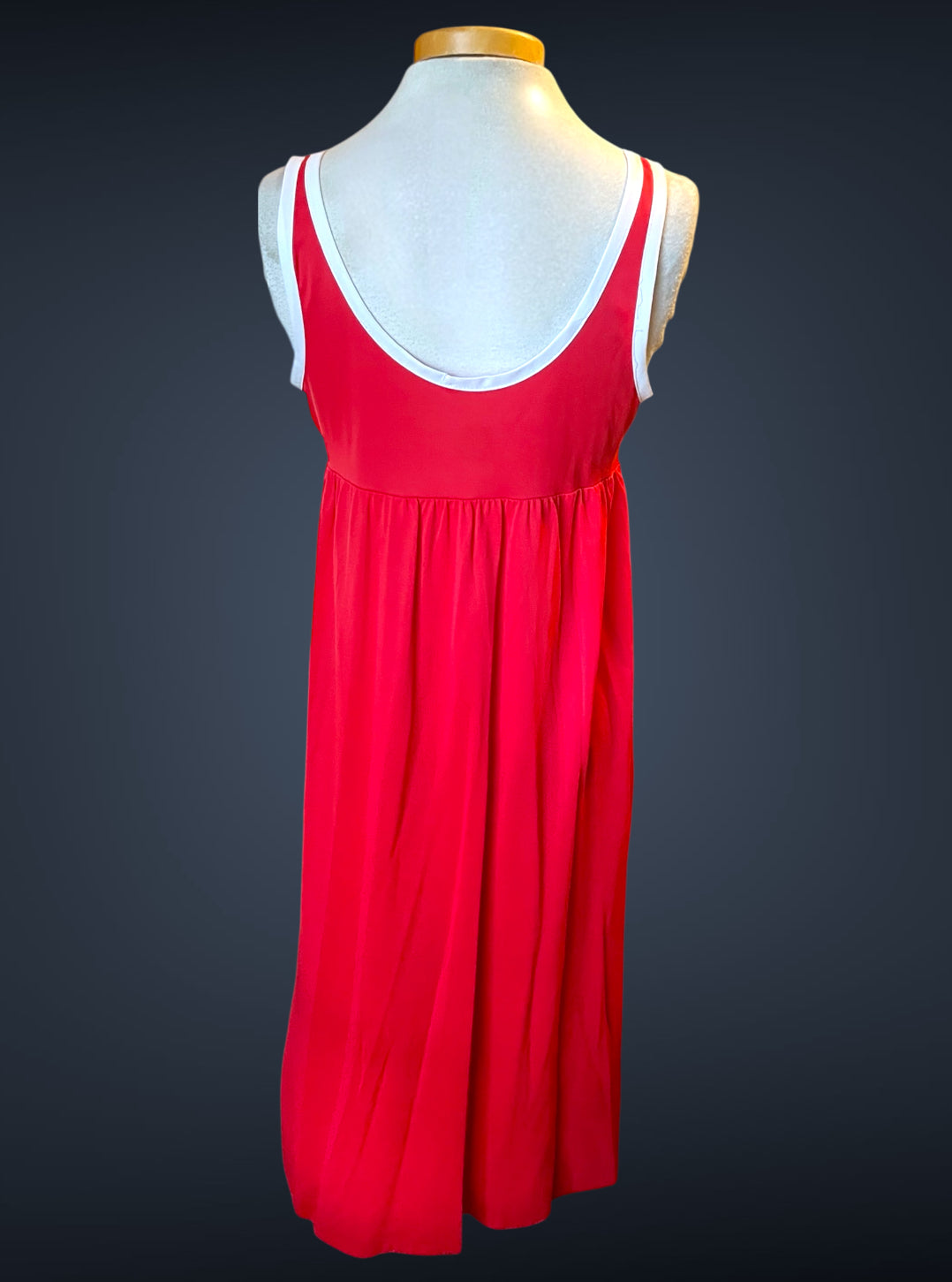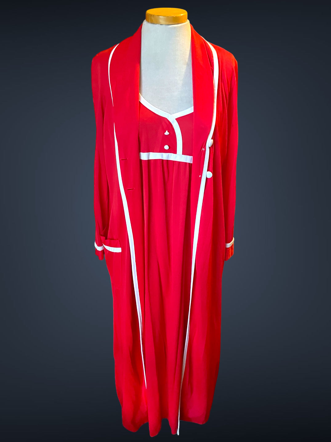 1960’s Sears Red & White Long Tank & Robe Peignoir Nightgown Set