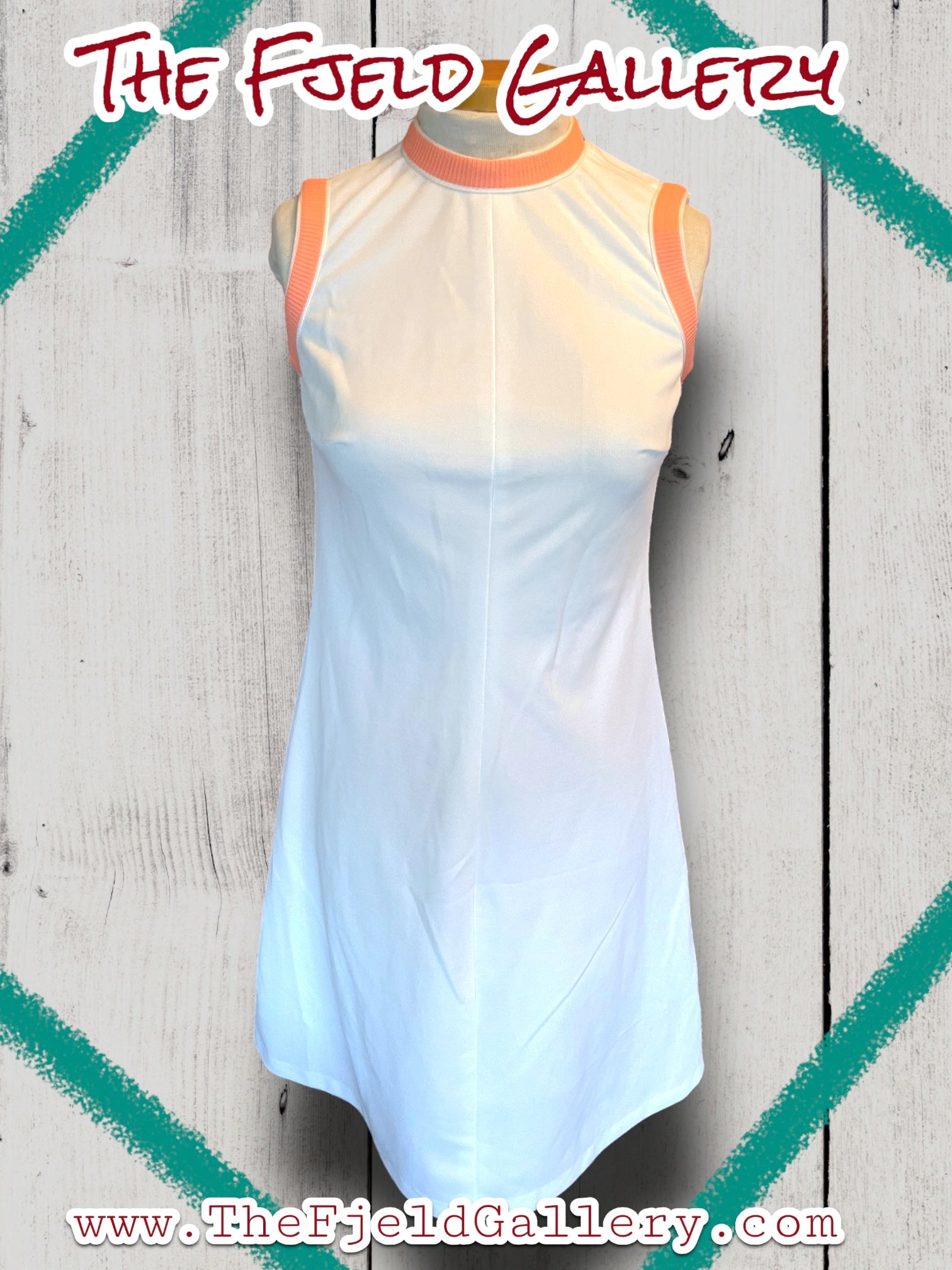 Beautiful vintage shift dress and sweater set. White poly blend A line shift dress with pastel pink collar and sleeve detail. Short sleeve sweater is pastel pink, blue and green. No tags remain unfortunately.