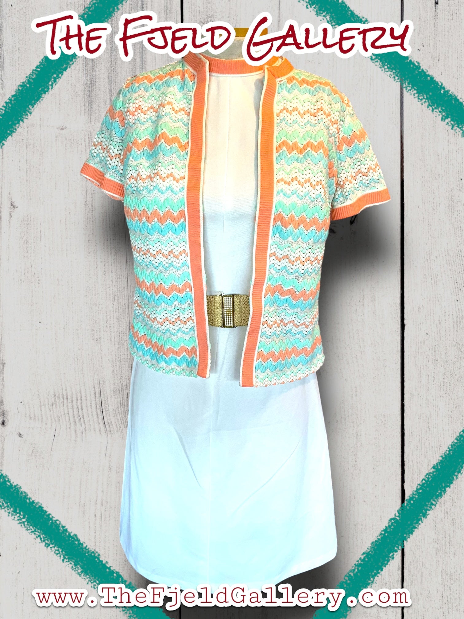 1960’s White, Pastel Pink, Blue & Green Spring Sleeveless Dress & Sweater Set