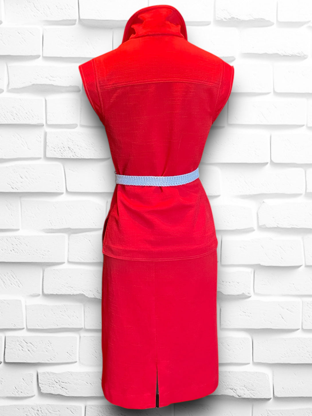 1970’s Red Polyester Linen Skirt & Sleeveless Top Set