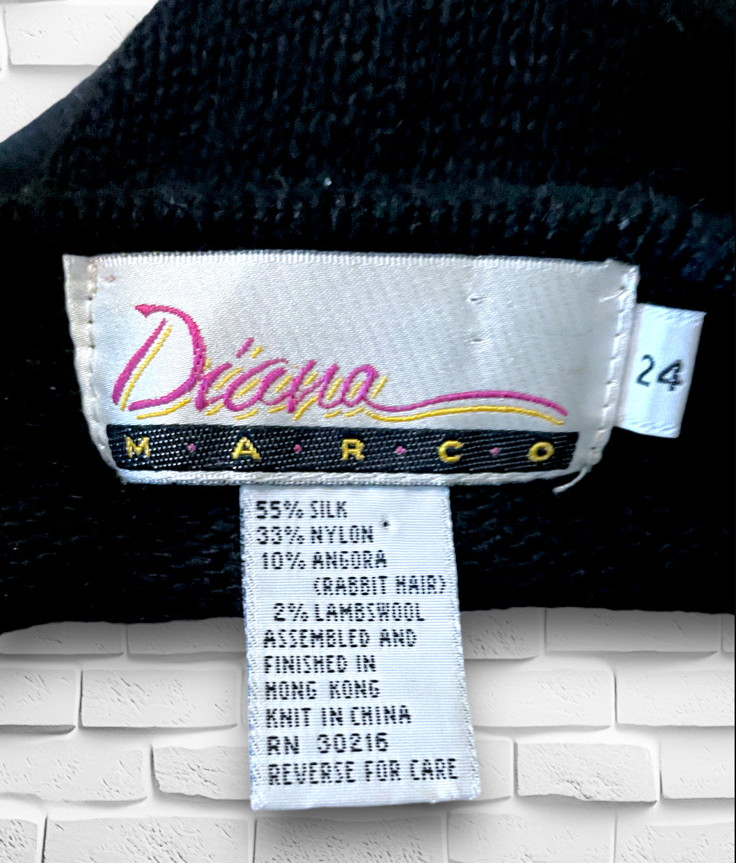 Super fun and sparkly 1980’s vintage rainbow sequin abstract design black sweater. Sweater is a silk & nylon mix with angora and lambs wool. Label designer is “Diana Marco” size 24. In perfect condition.
