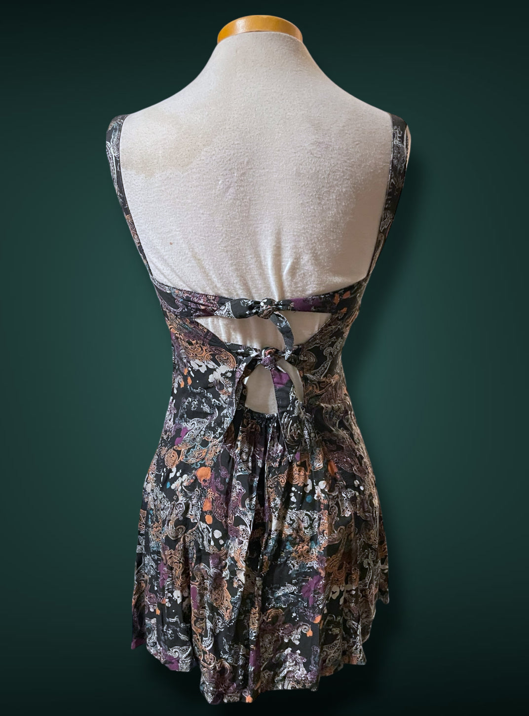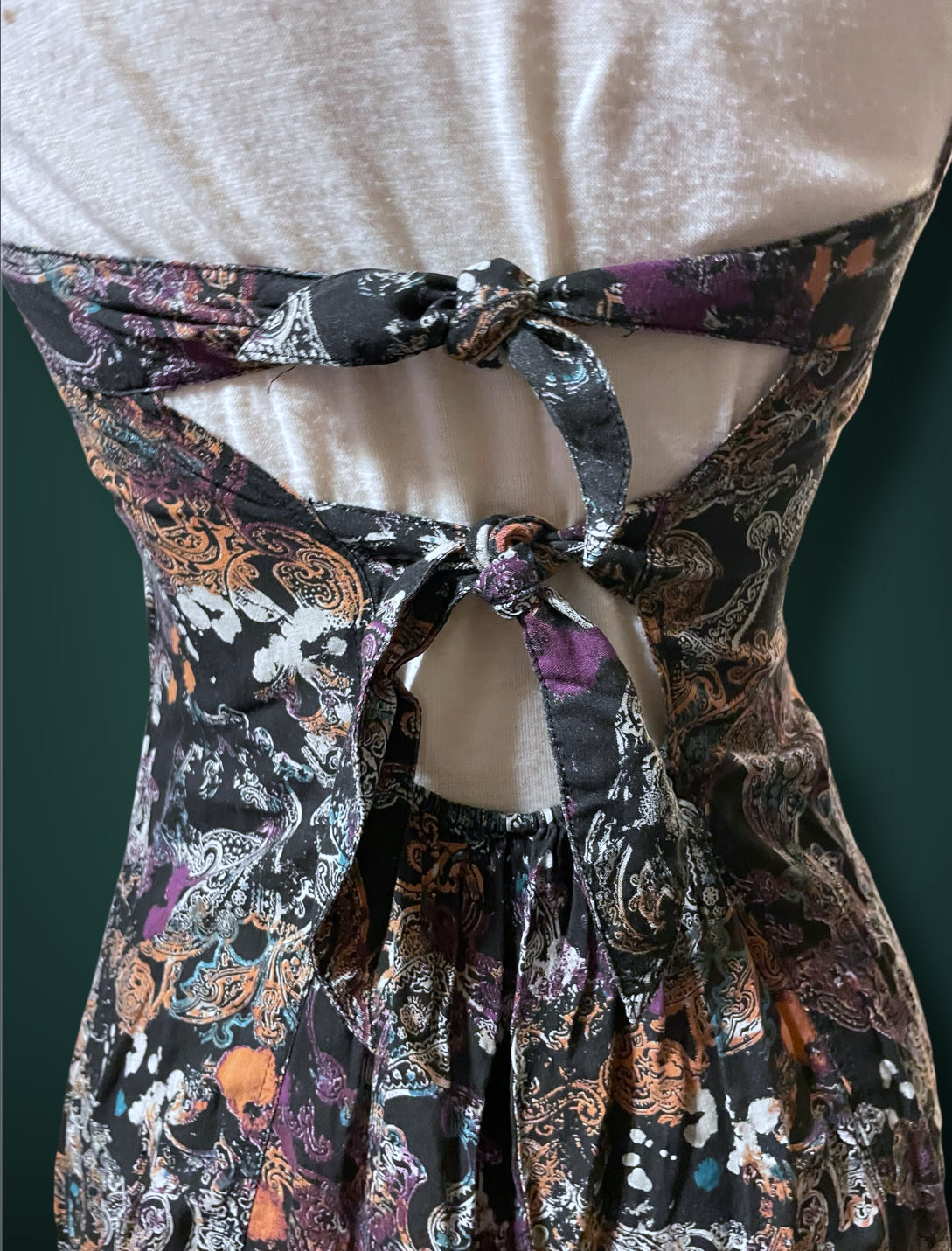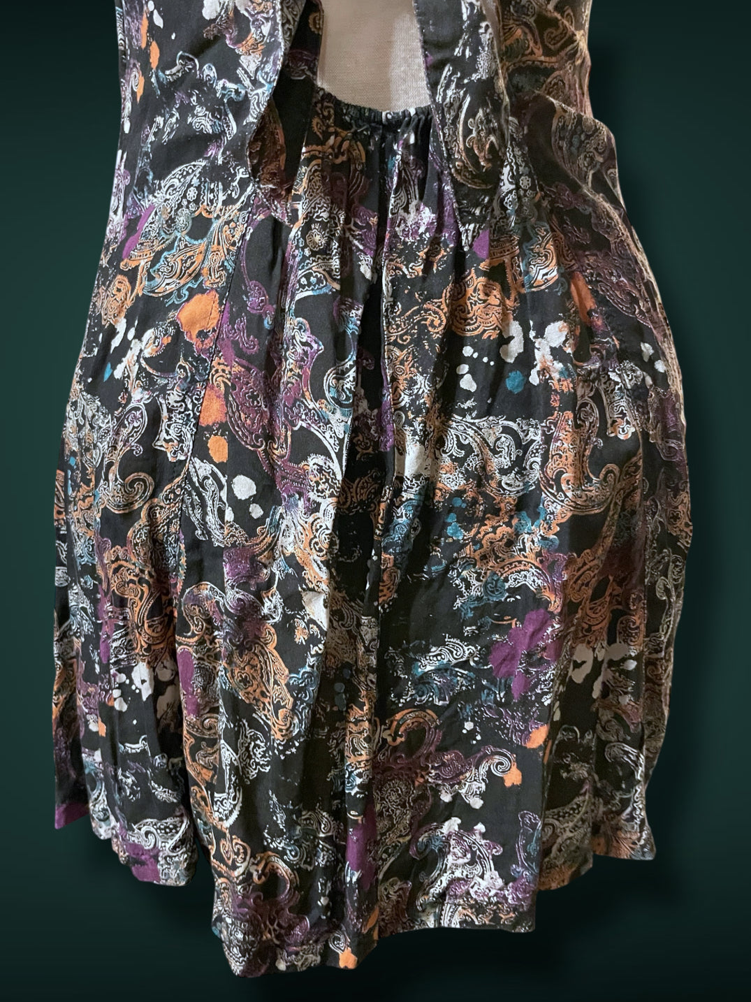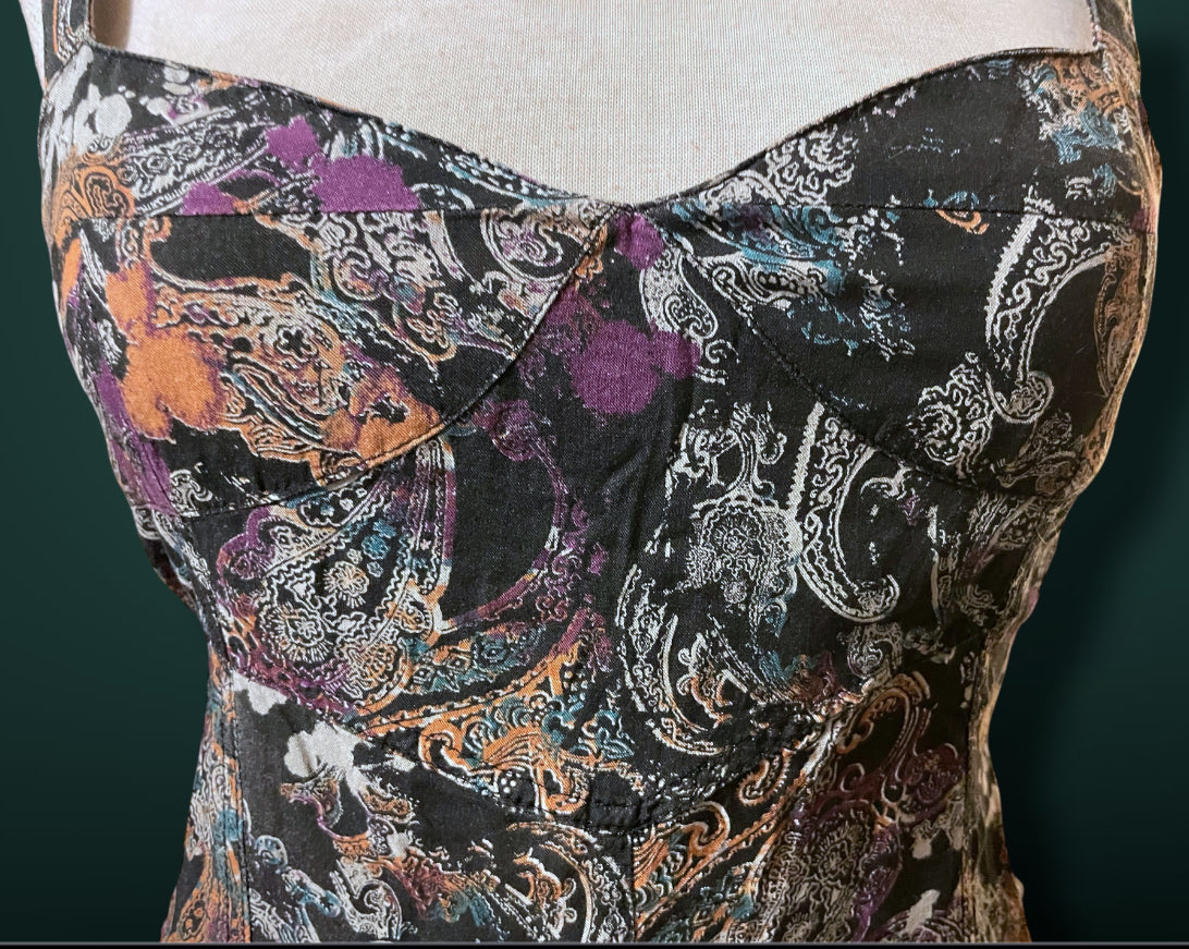 1990’s Black & White Paisley Print w Purple, Teal & Rust Bleach Splash Sundress