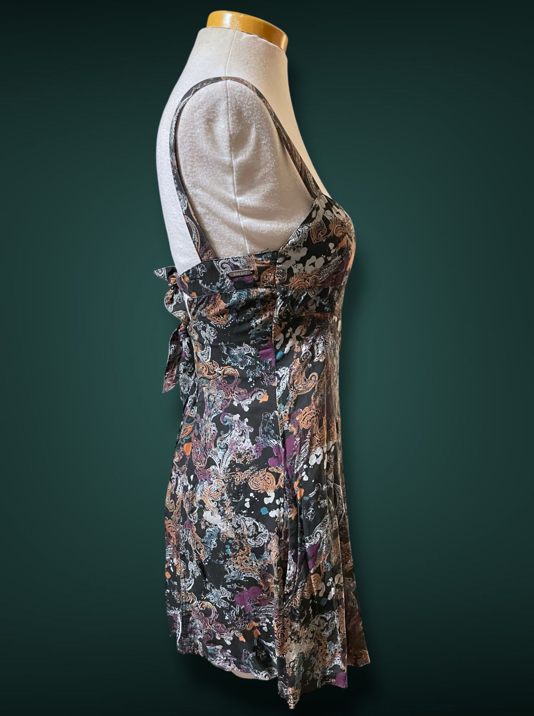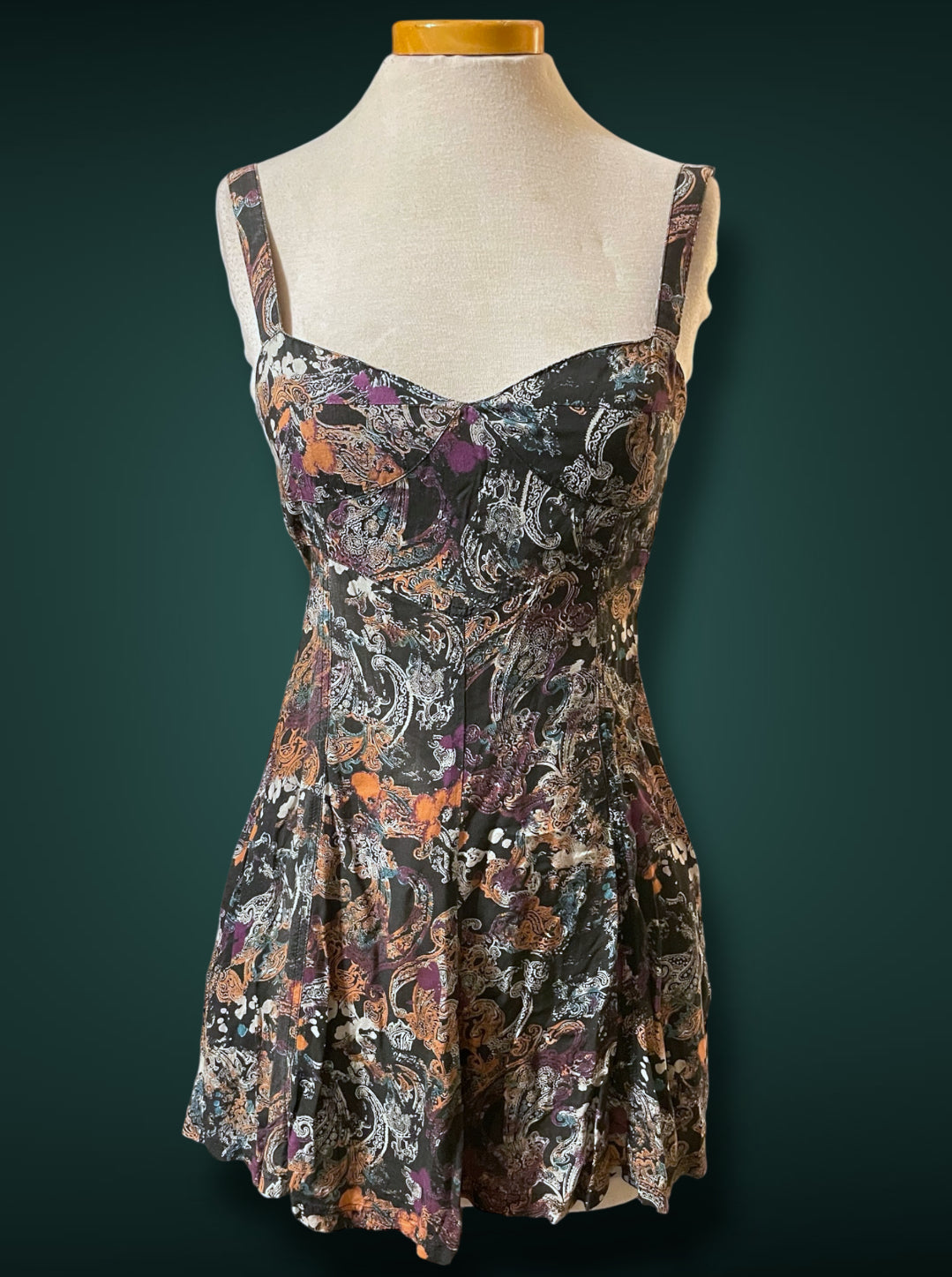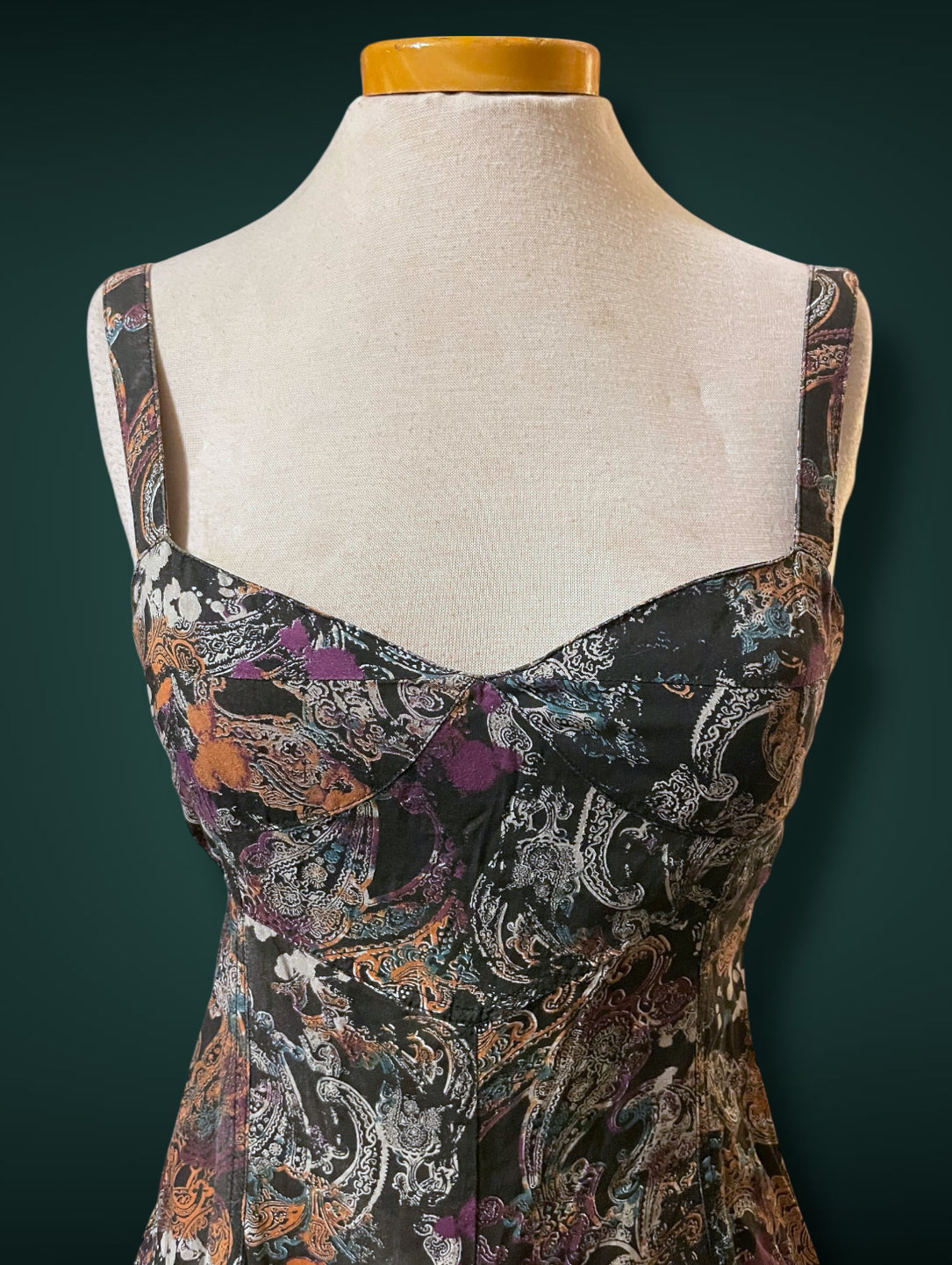 1990’s Black & White Paisley Print w Purple, Teal & Rust Bleach Splash Sundress