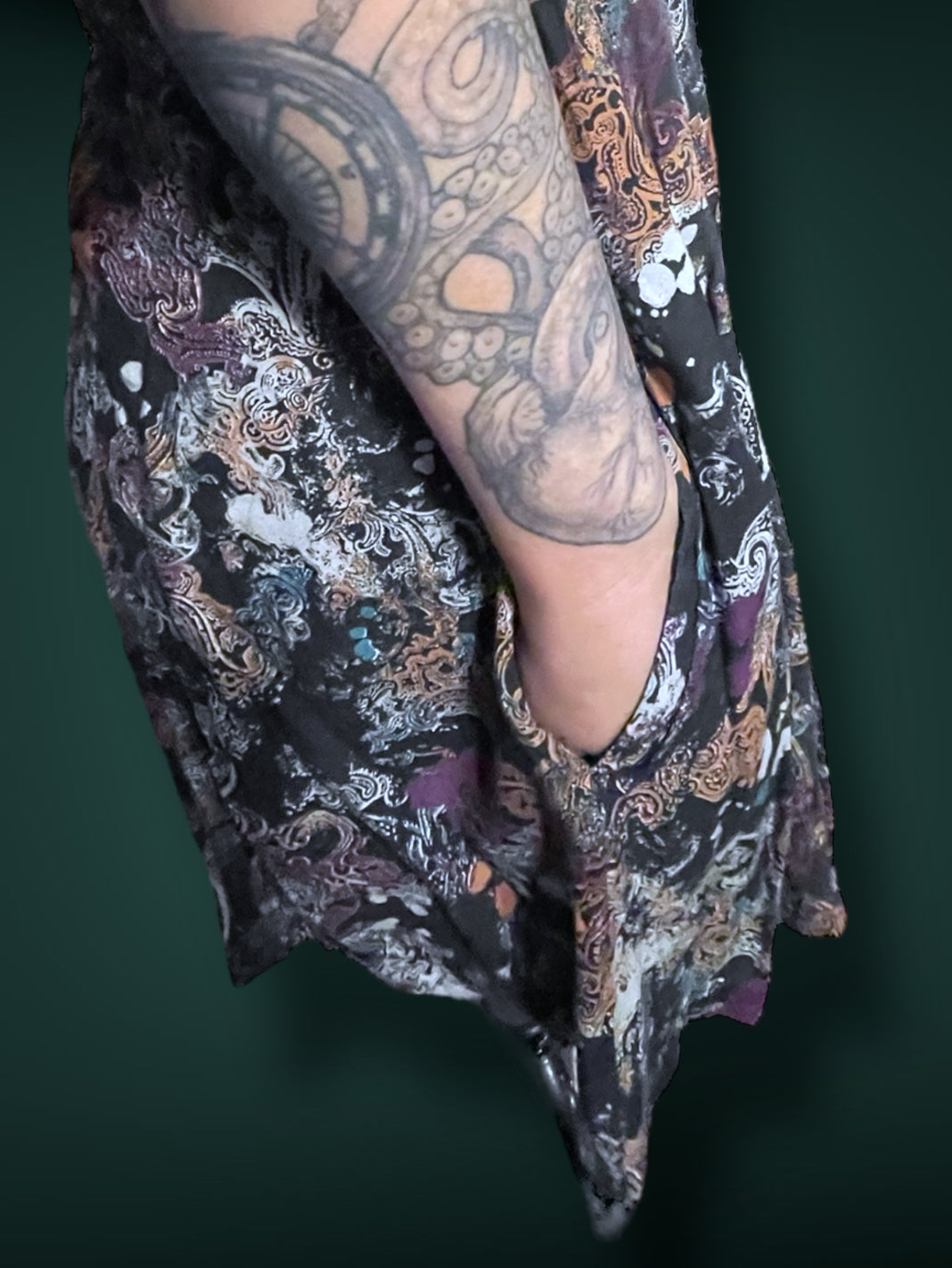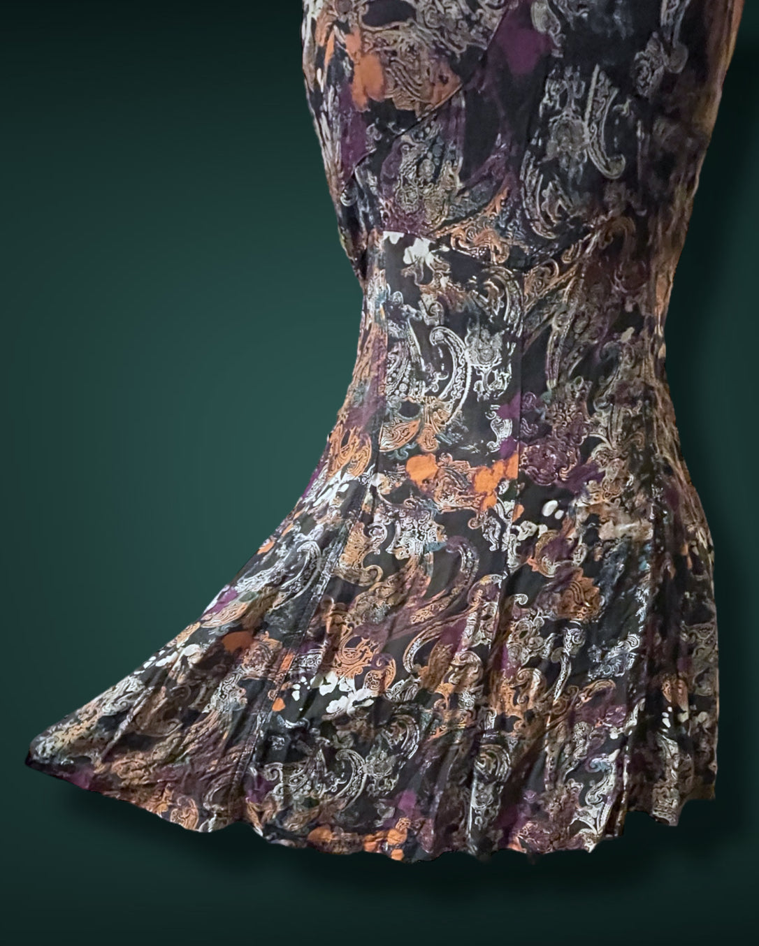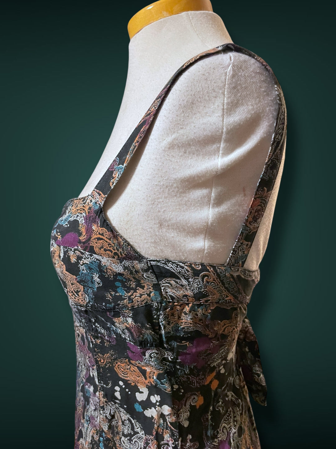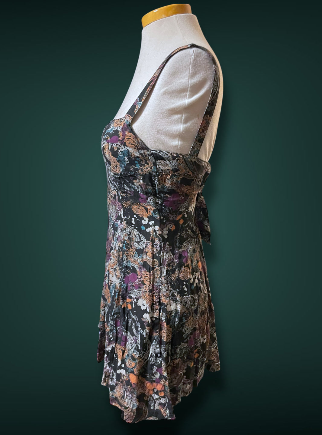 1990’s Black & White Paisley Print w Purple, Teal & Rust Bleach Splash Sundress