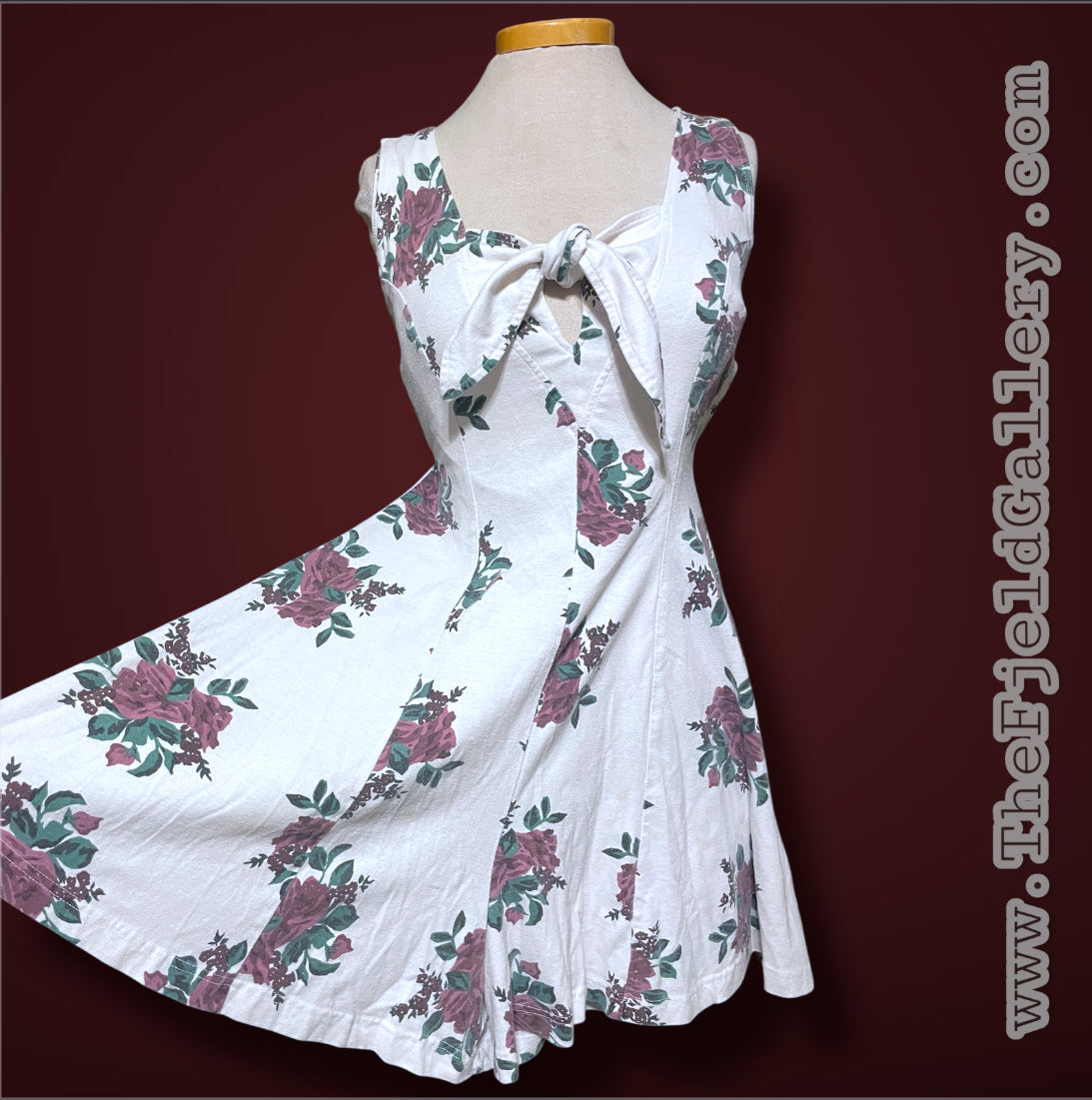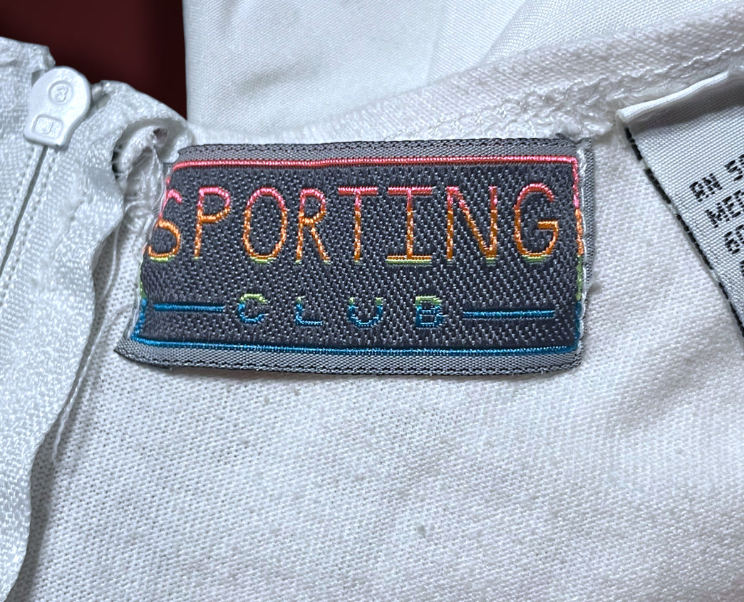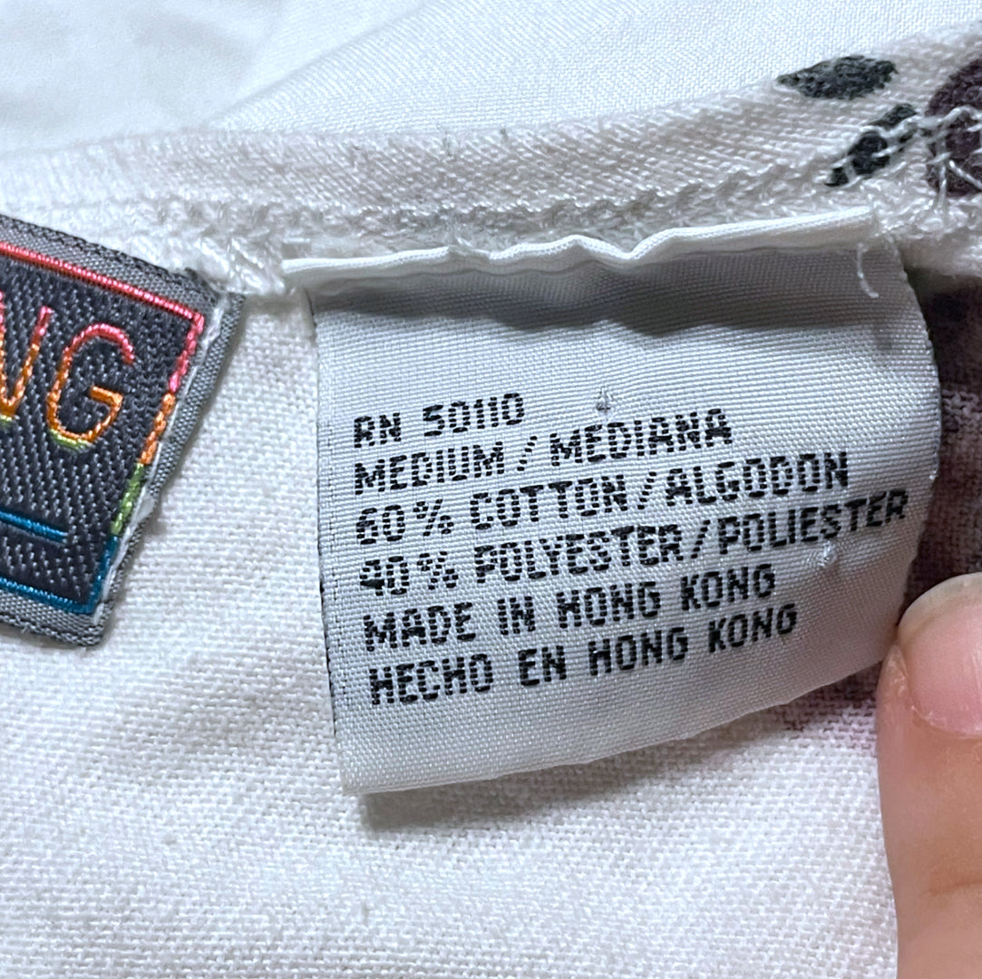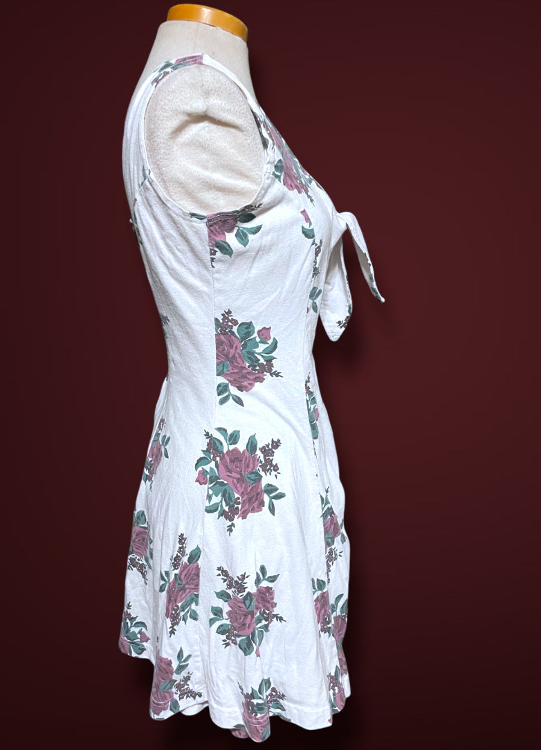 Super cute vintage 1990’s white & purple rose print romper. Short sleeve tank top with a tie front bust detail. Zipper closure up the back. Tag says “Sporting Club” and size care tag says “Medium / Cotton 60% Polyester 40% / Made in Hone Kong”