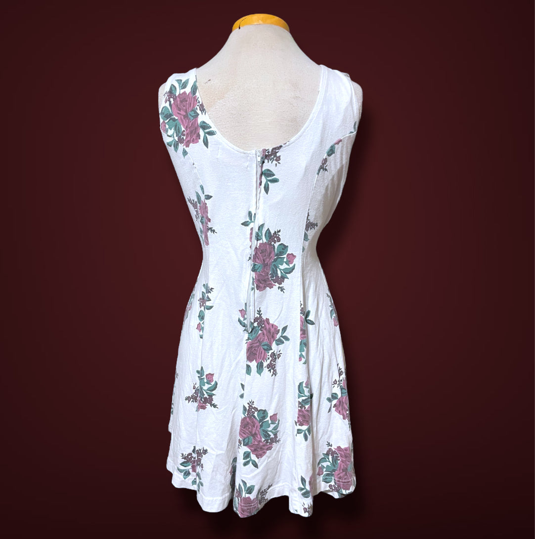 1990’s White & Purple Rose Print Tank Top Romper Jumpsuit