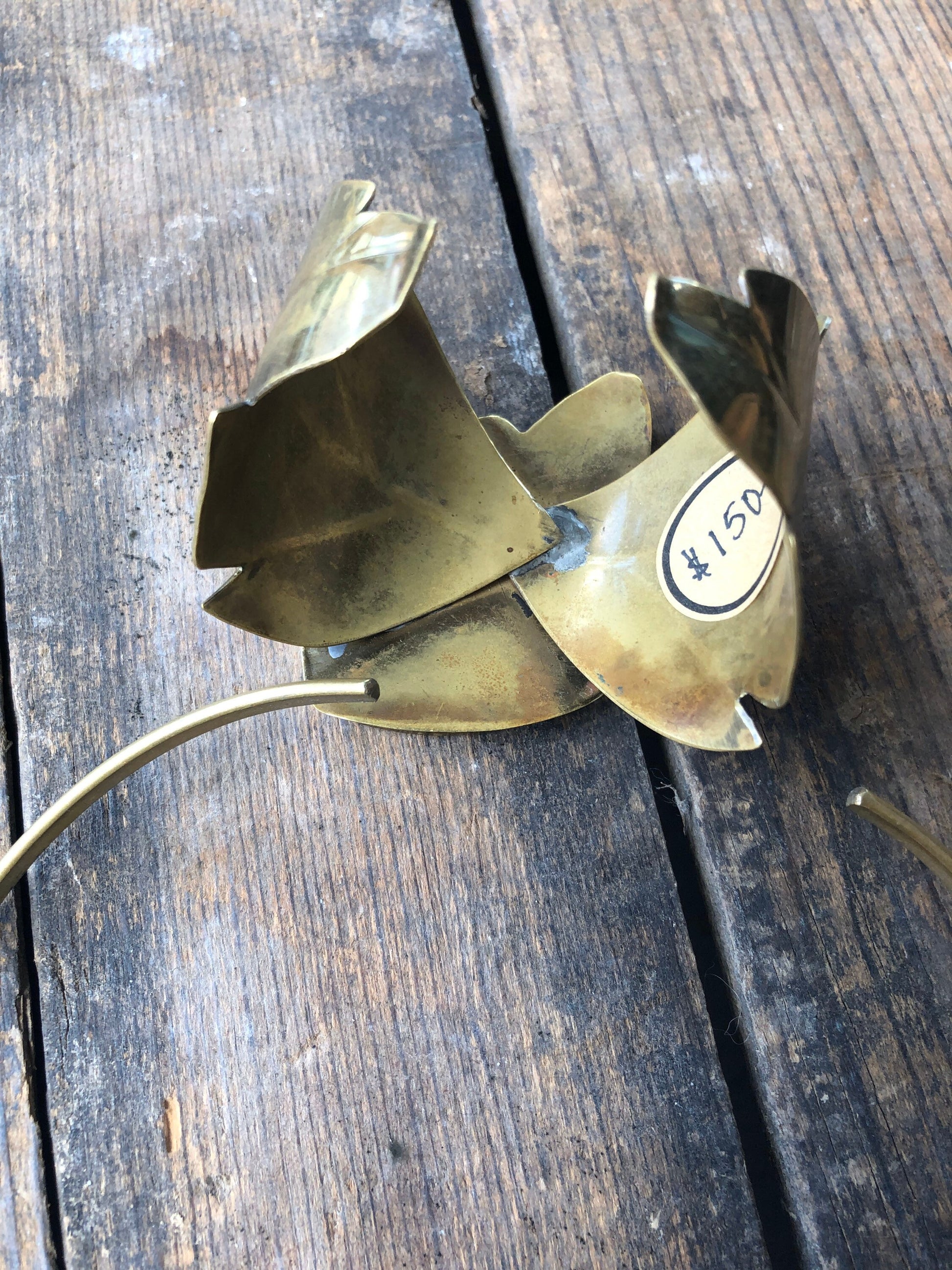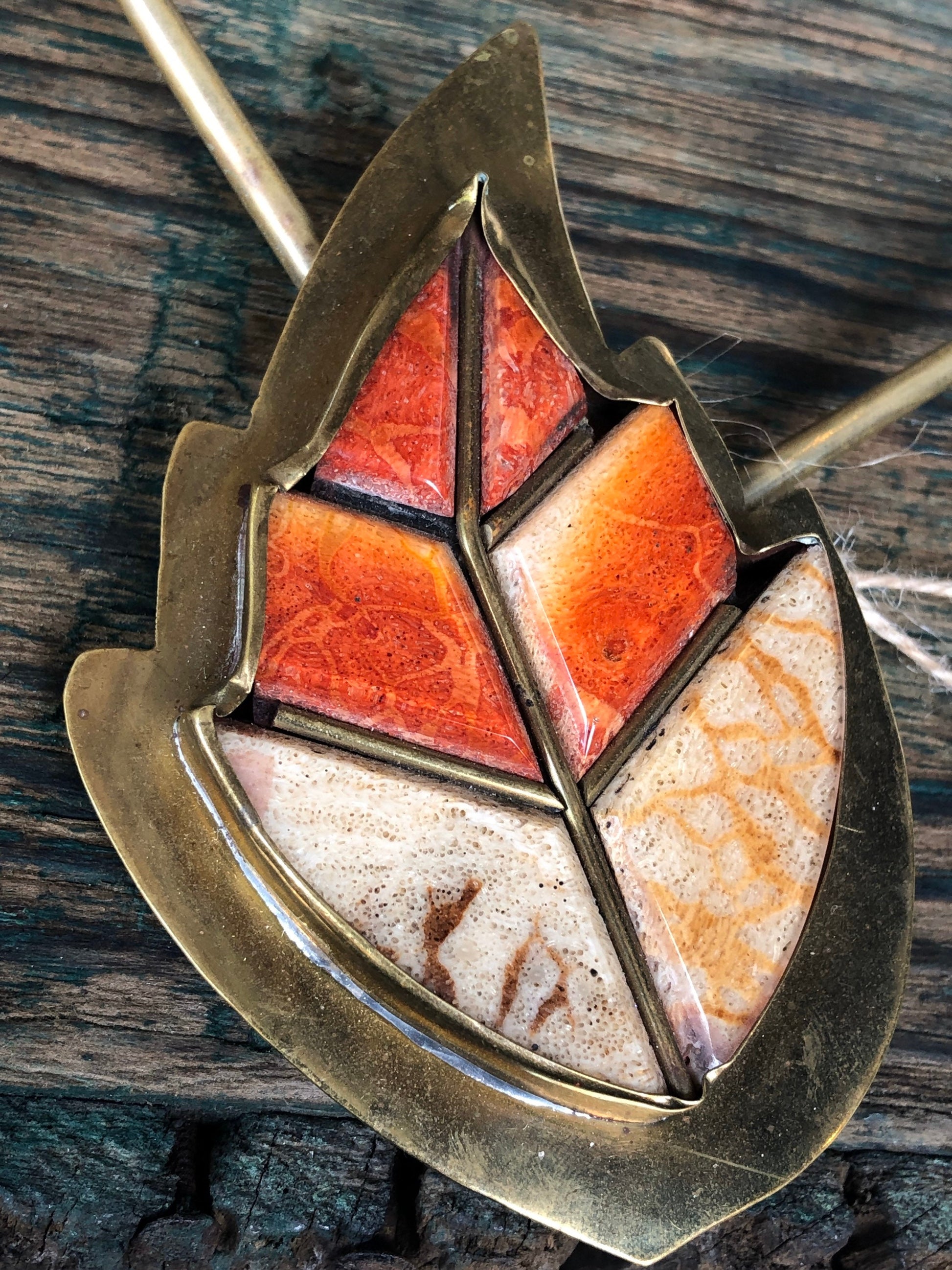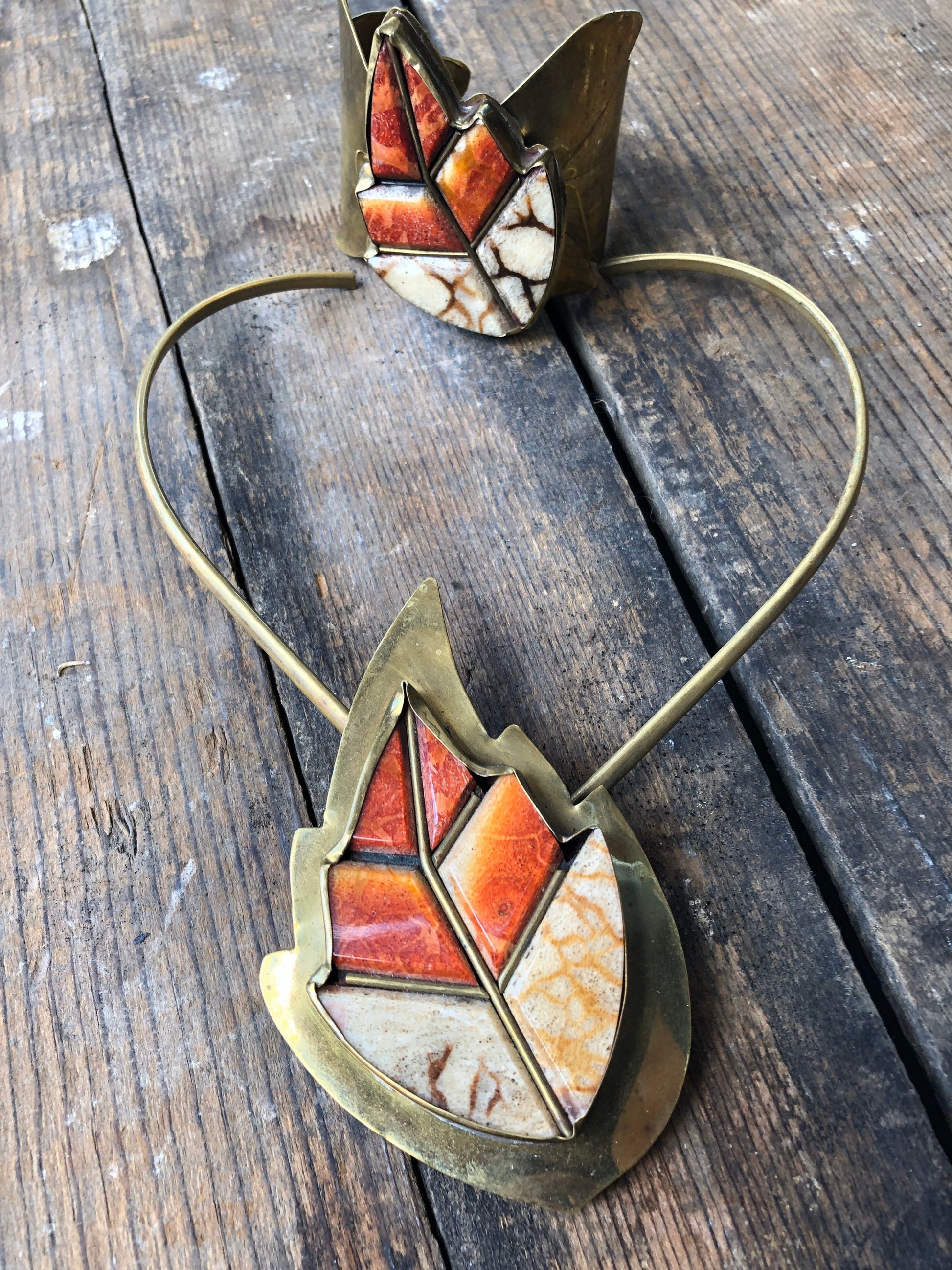 Antique Brass and Orange Coral Leaf Brass Necklace & Bracelet Set