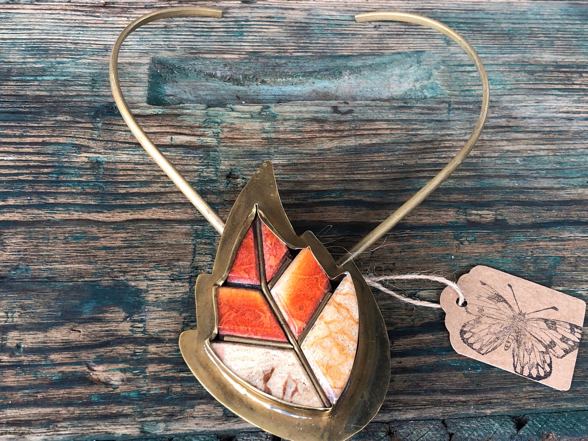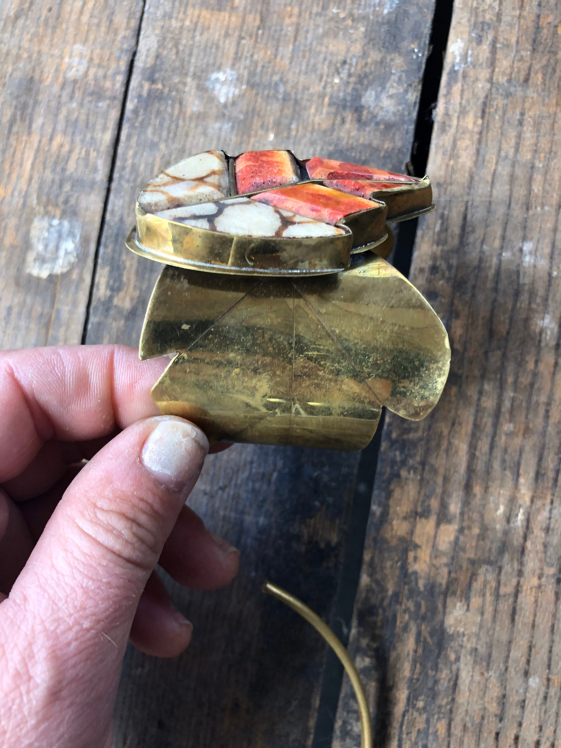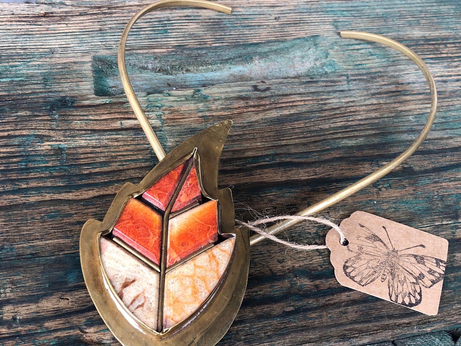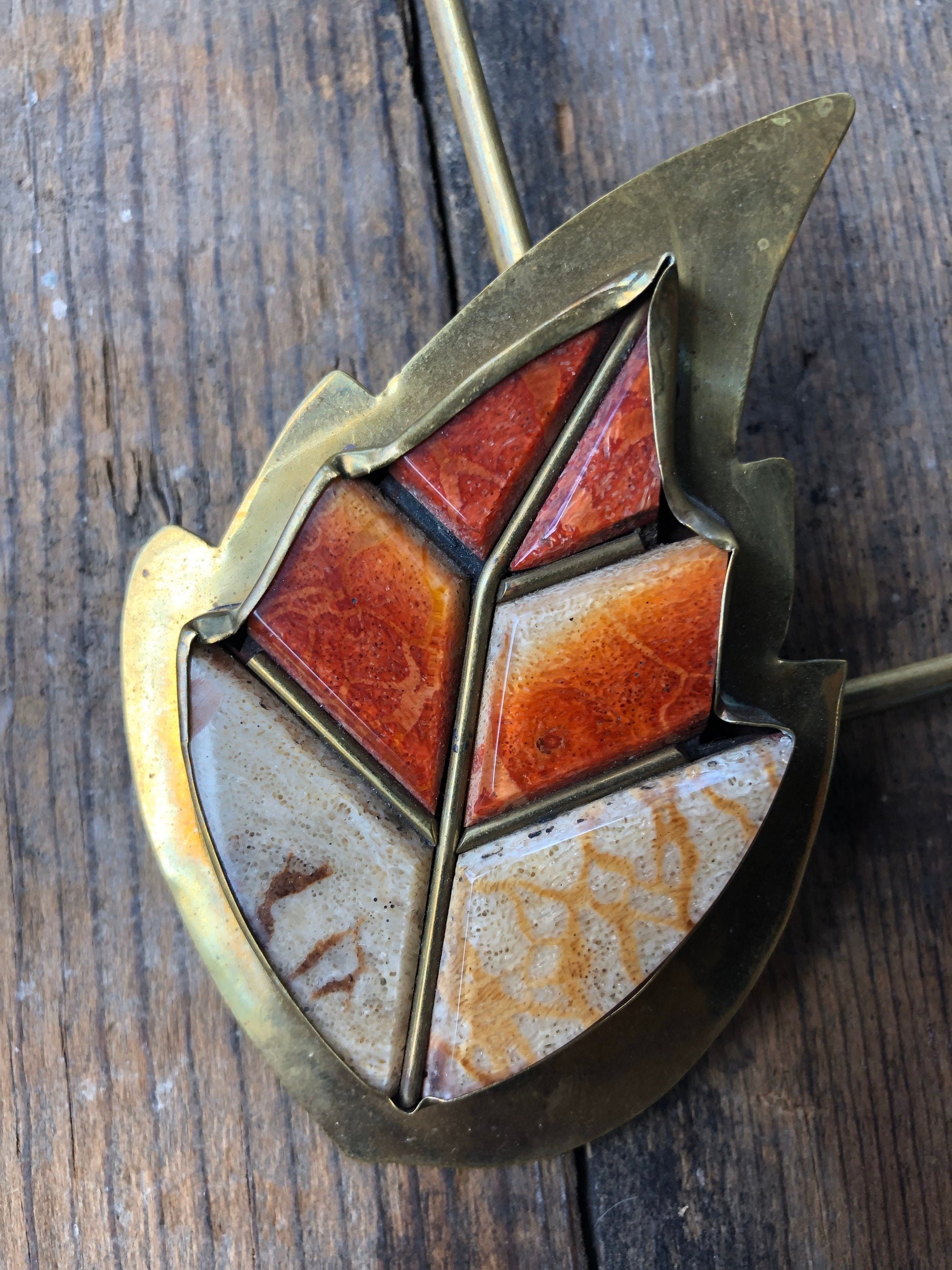 Antique Brass and Coral Brass Necklace and Bracelet Set