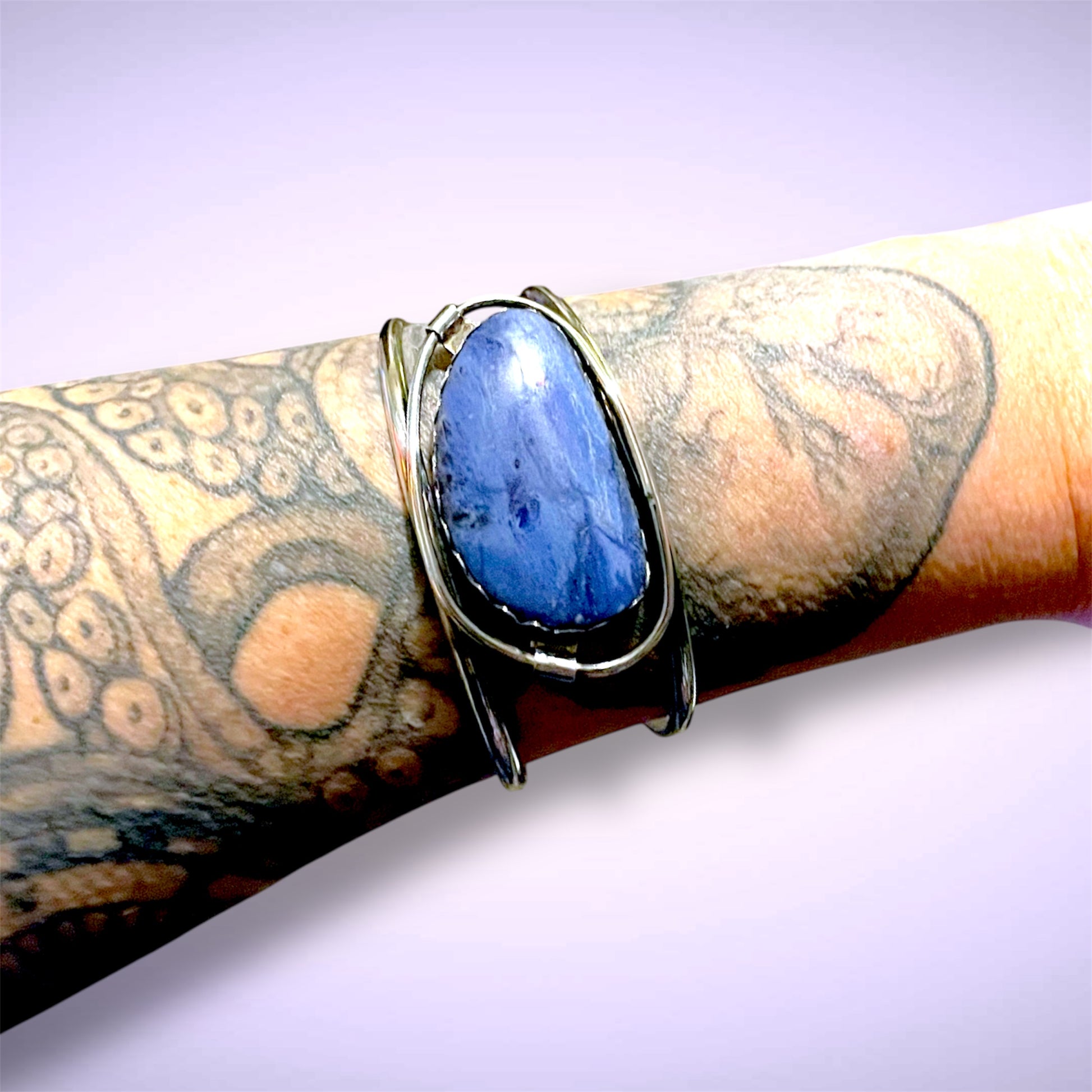 Antique Sterling Silver Sodalite Gemstone Free Bezel Set Chunky Cuff Bracelet