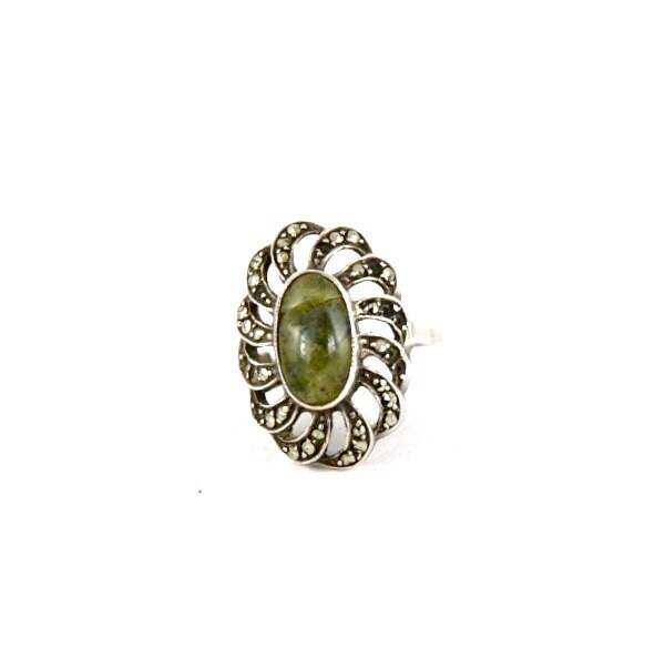 Art Deco Jade Gemstone & Marcasite Sterling Silver Ring