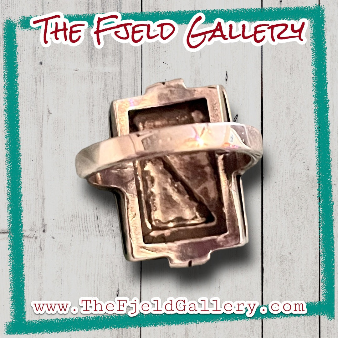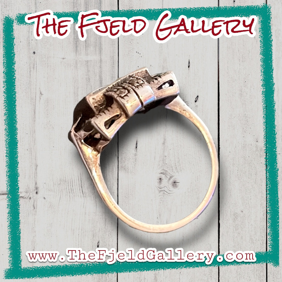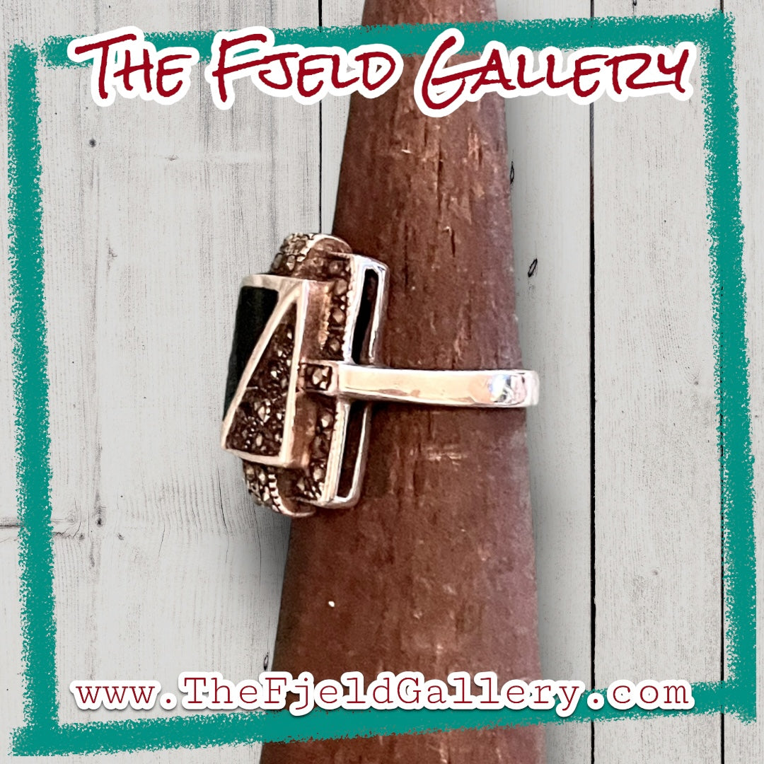 Art Deco Onyx & Marcasite Square Sterling Silver Geometric Ring