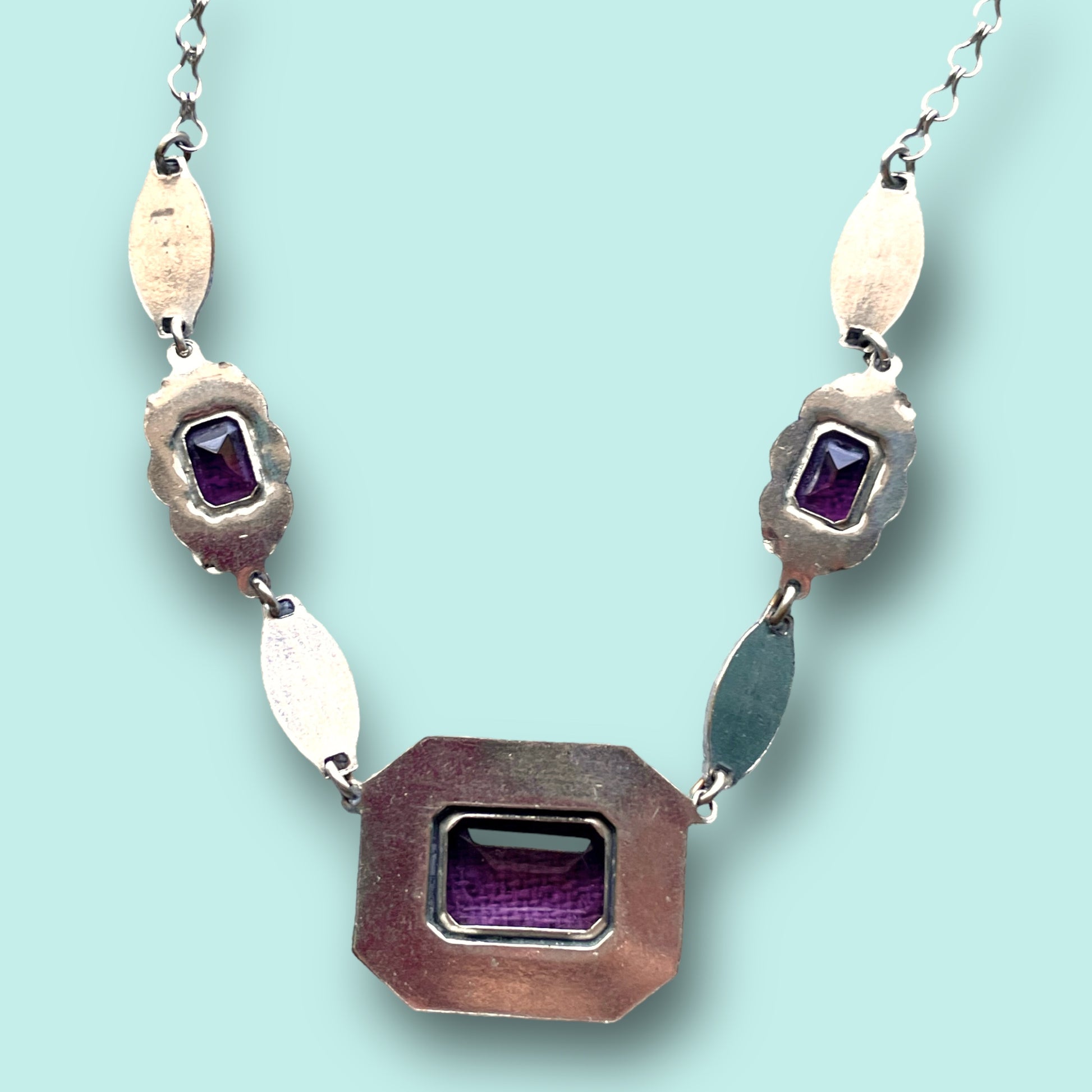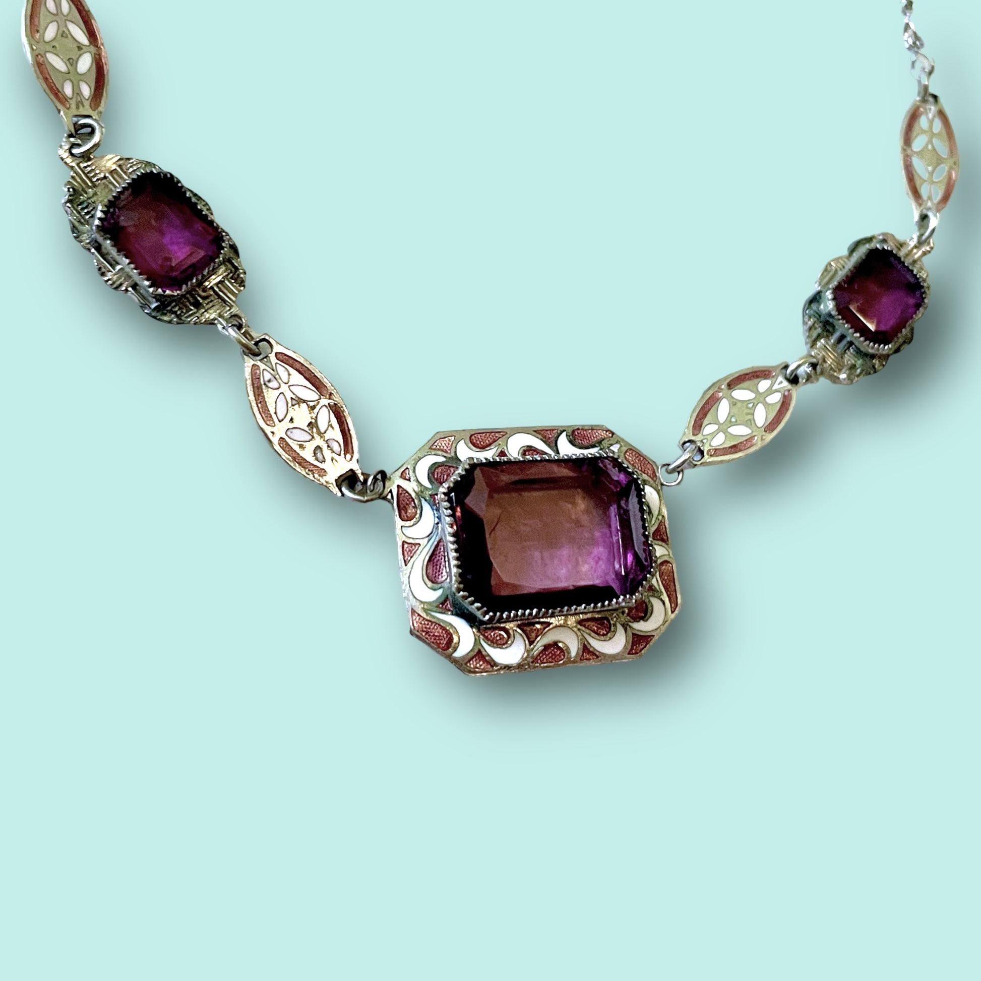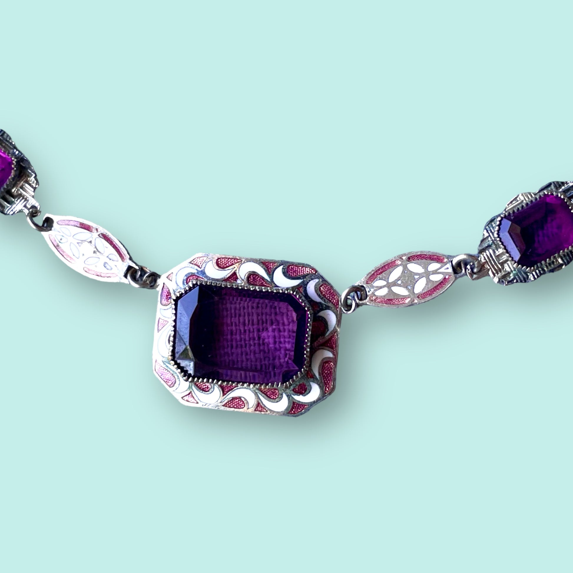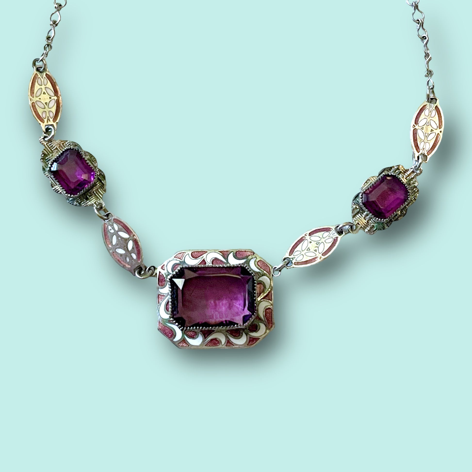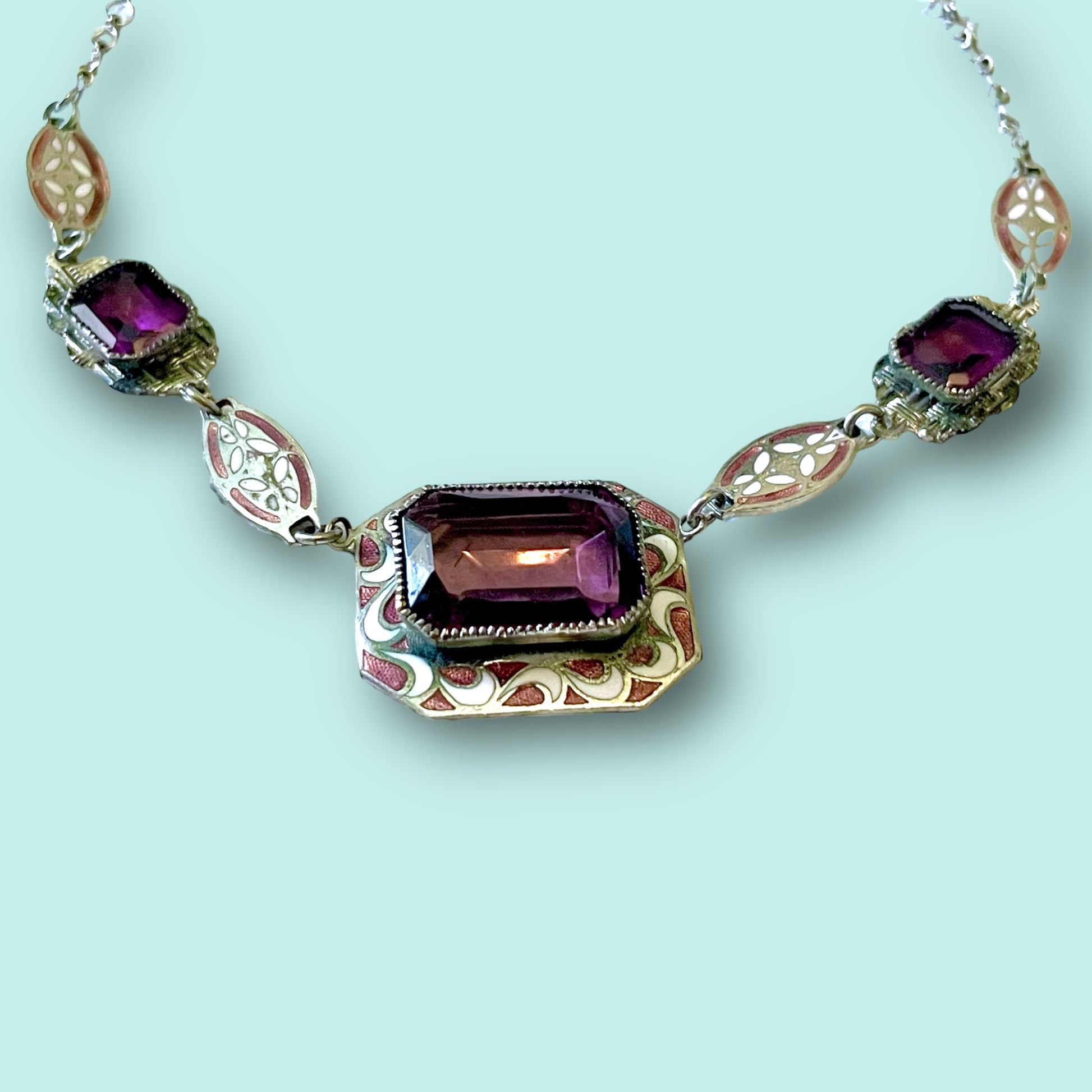 Art Deco Purple Art Glass & Enamel Necklace