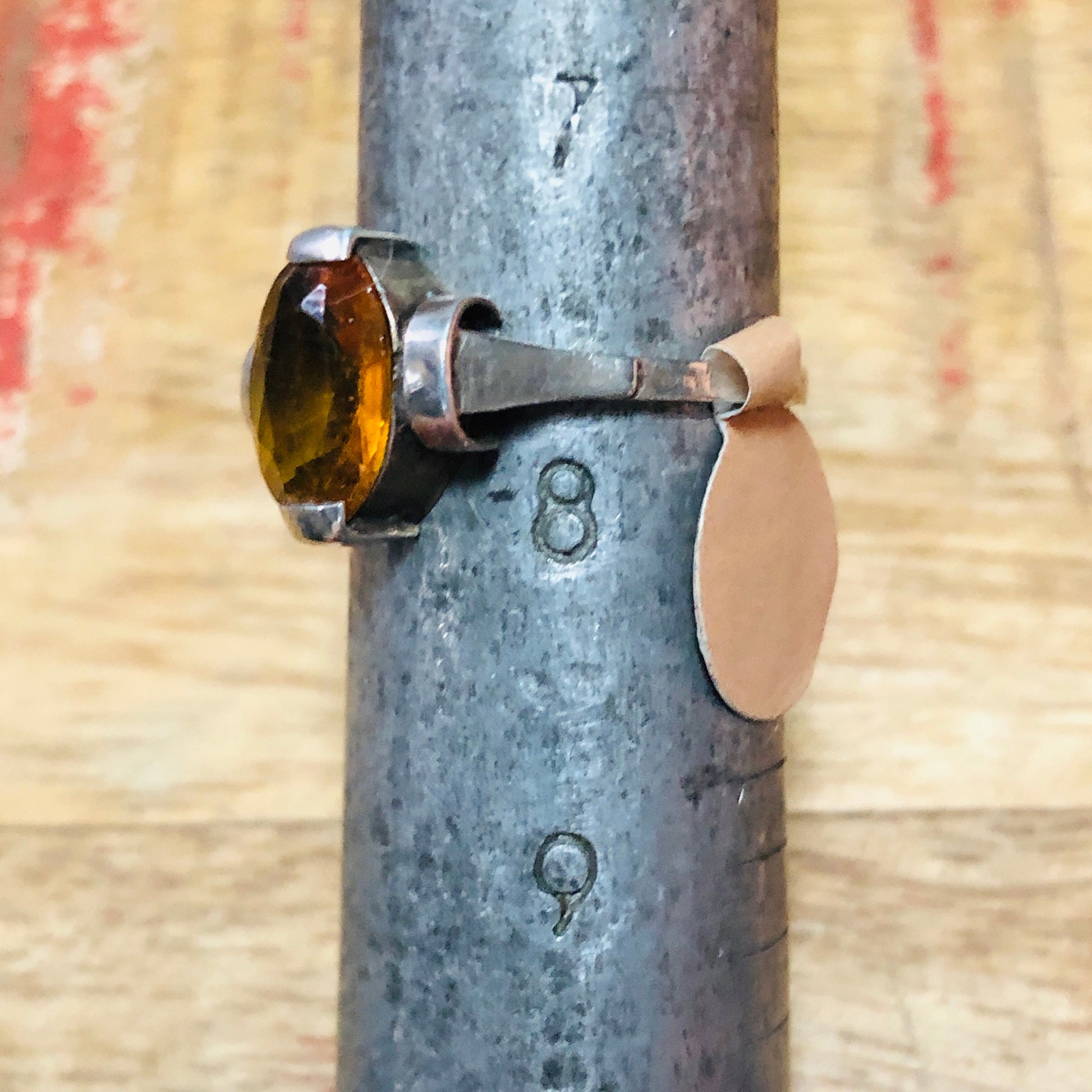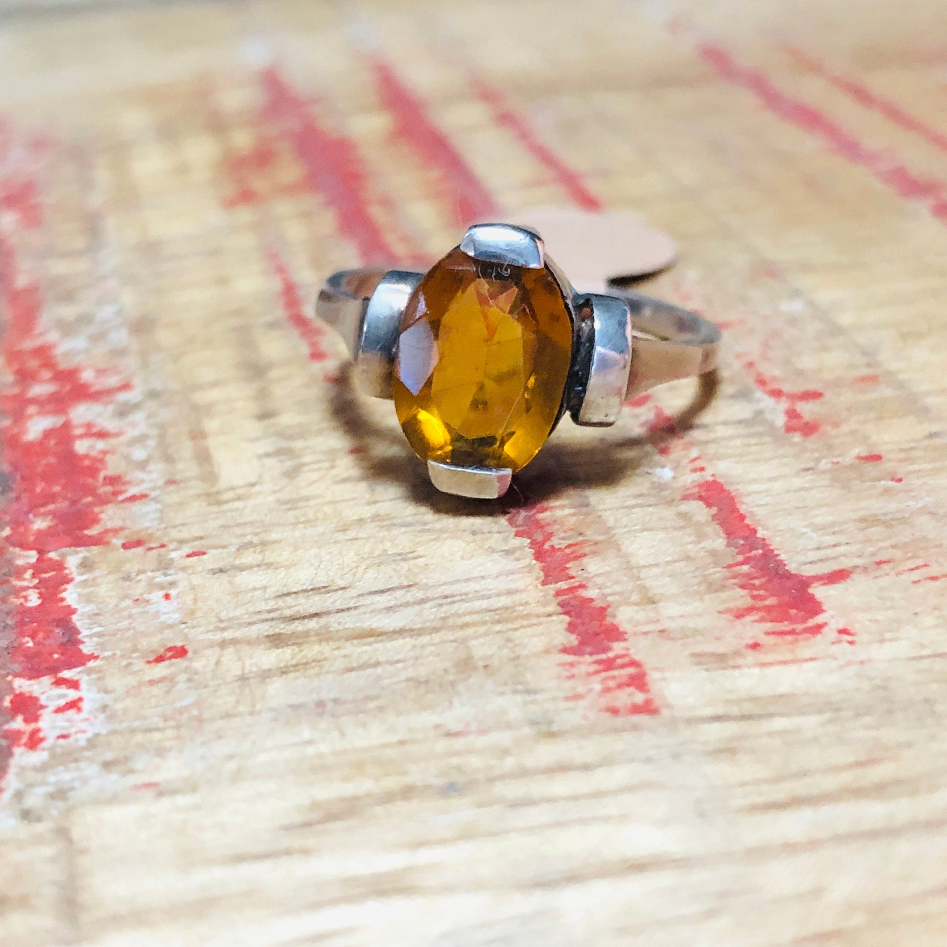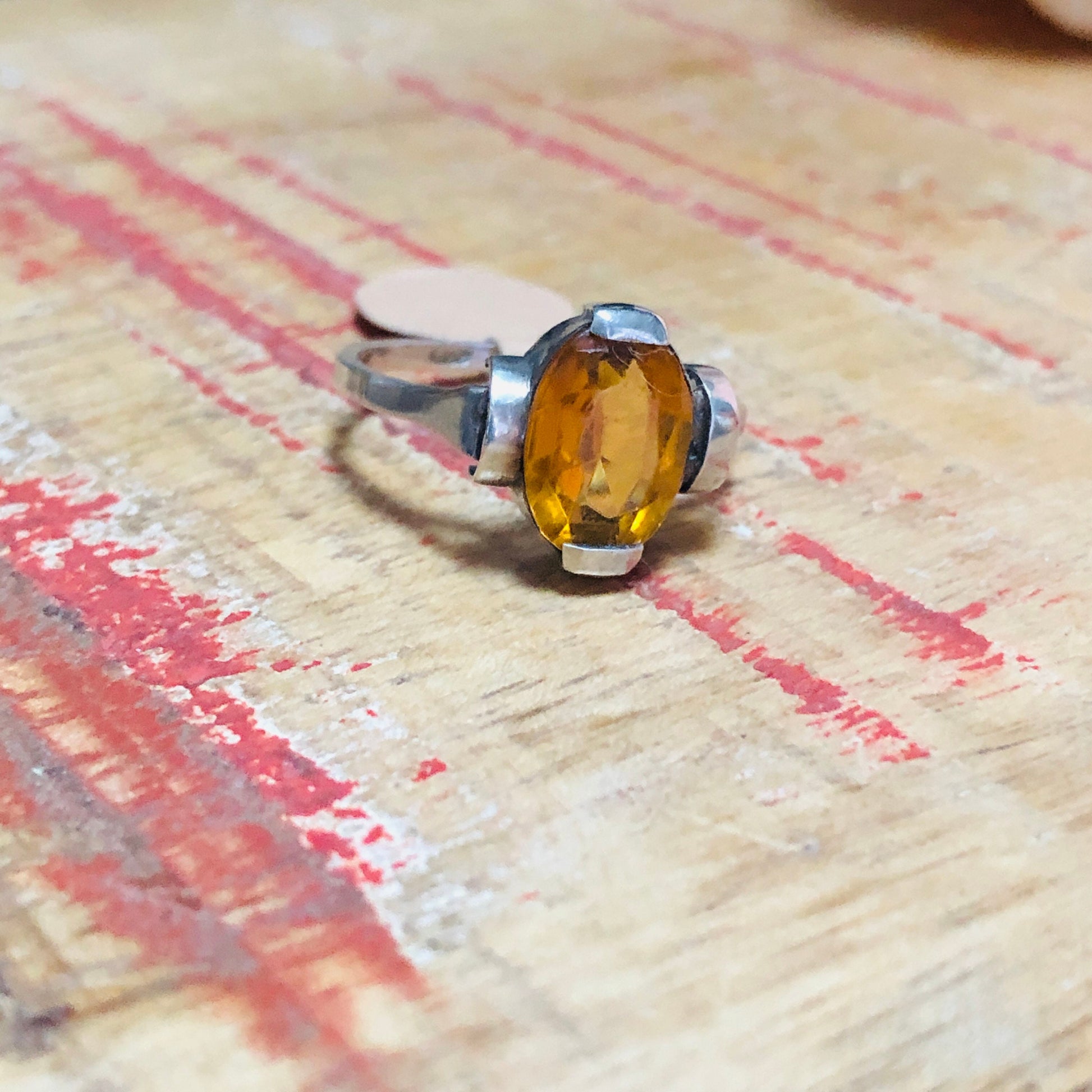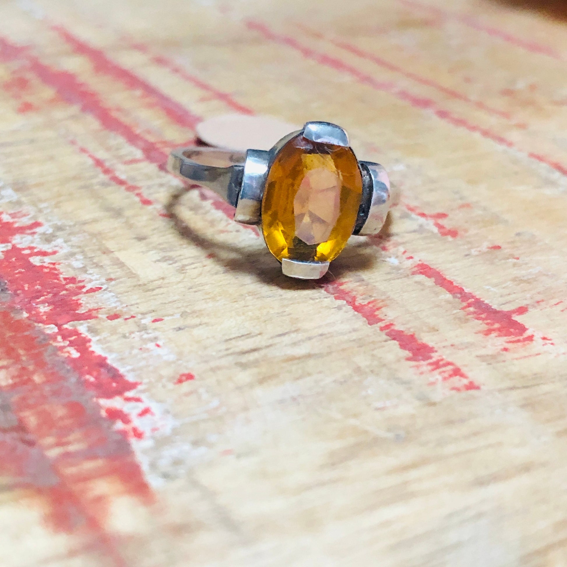 Art Deco Sterling Silver Citrine Geometric Cast Square print Set Ring