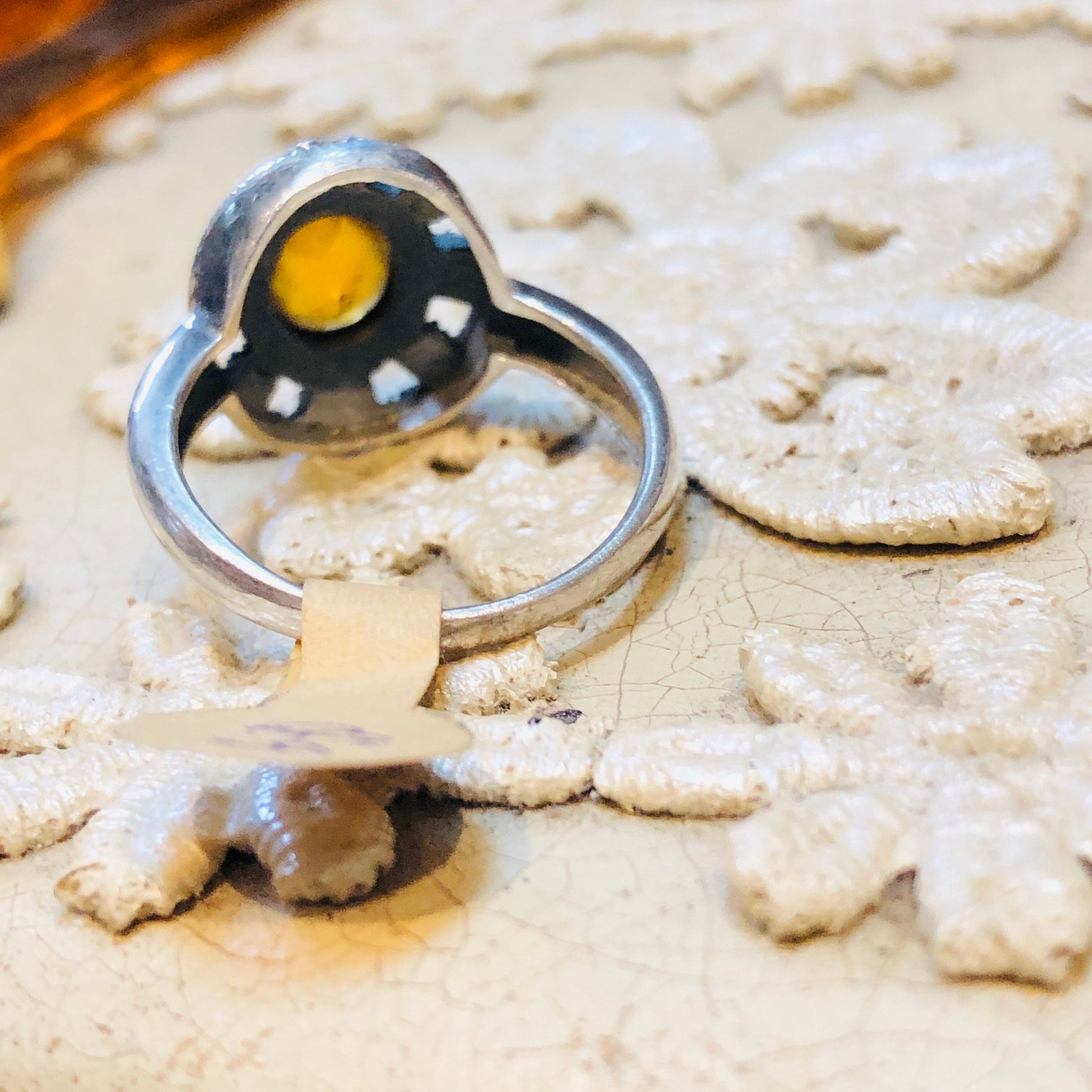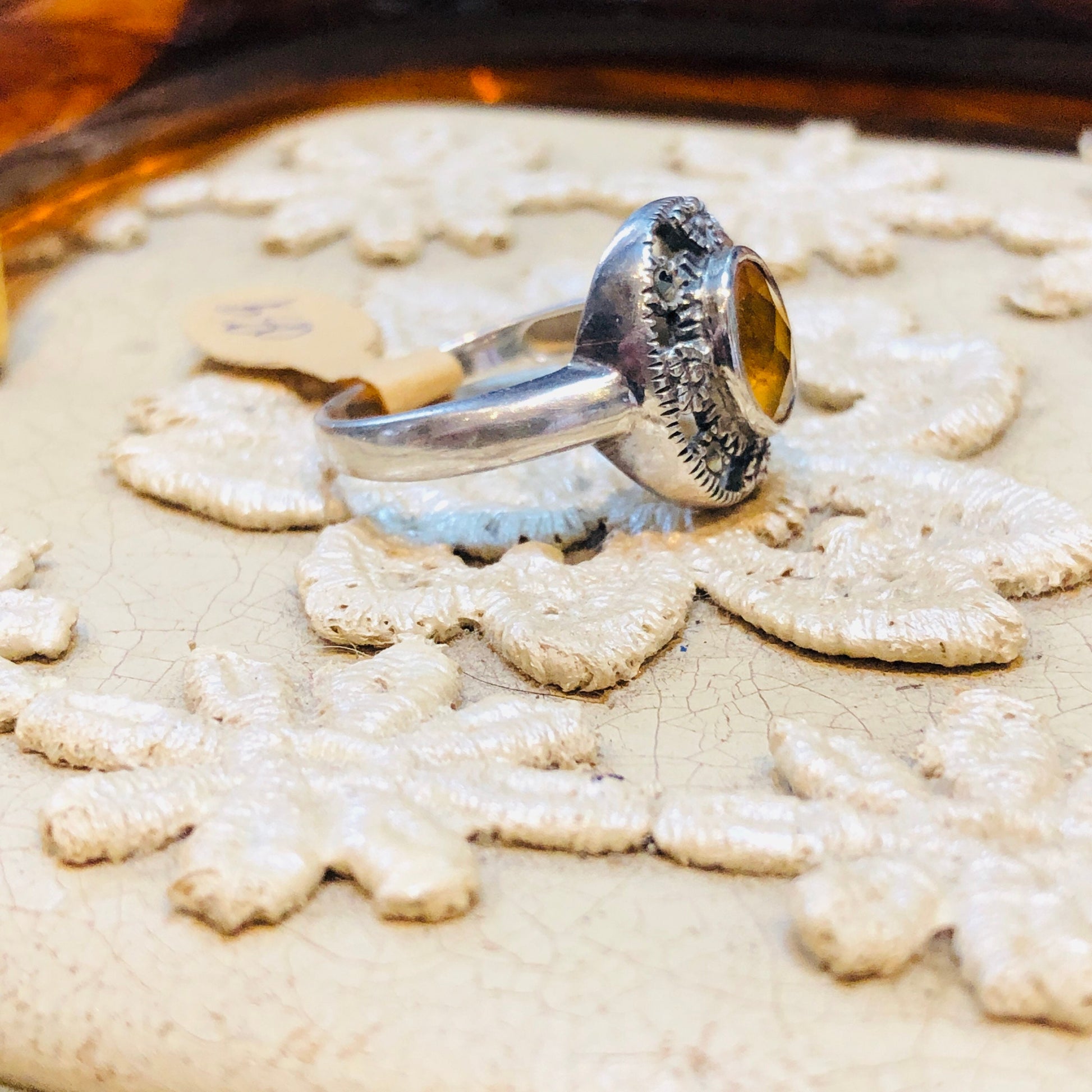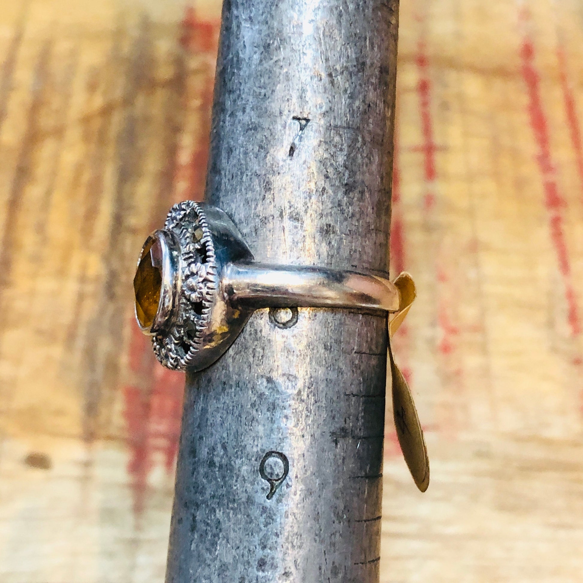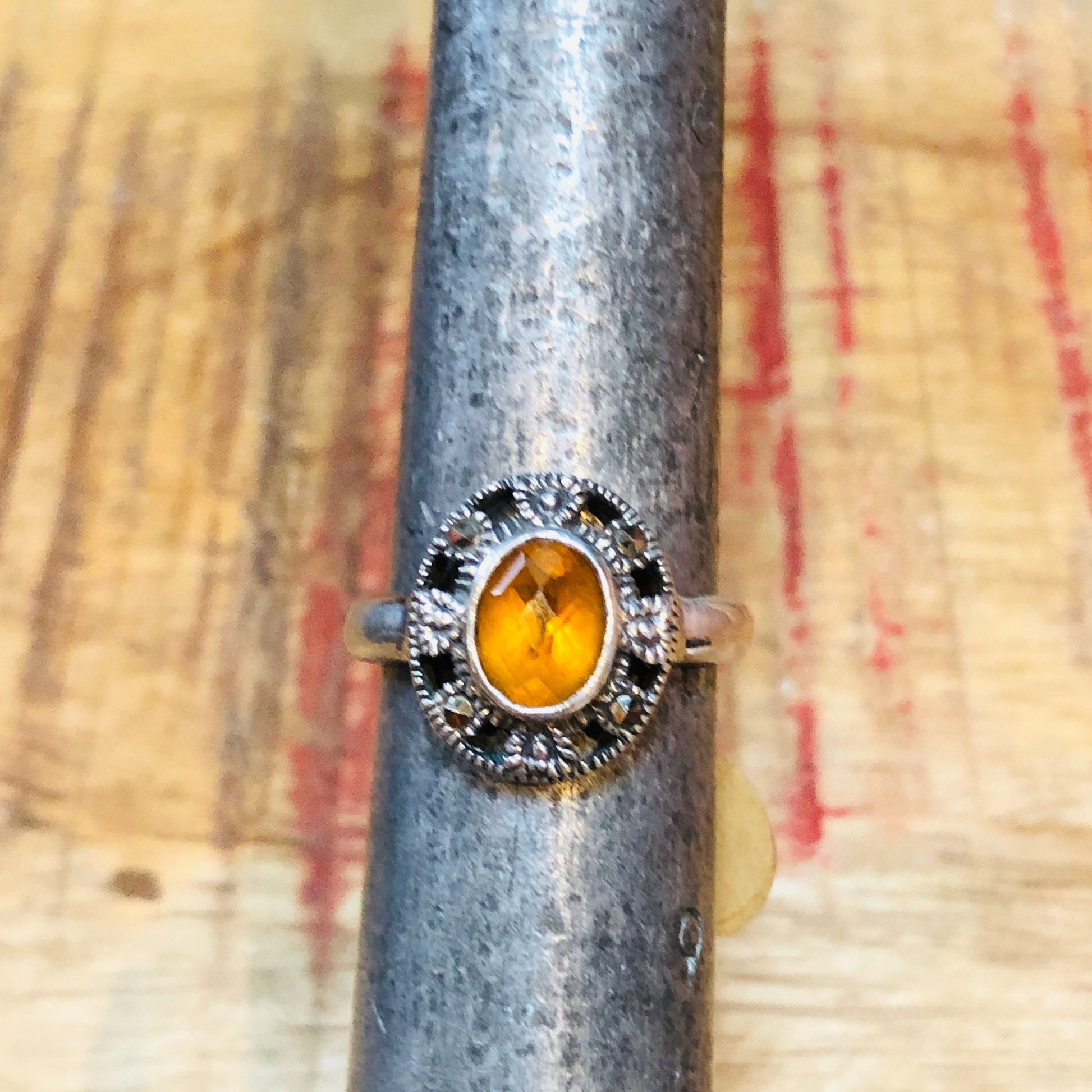 Art Deco Sterling Silver & Marcasite Citrine Gemstone Ring