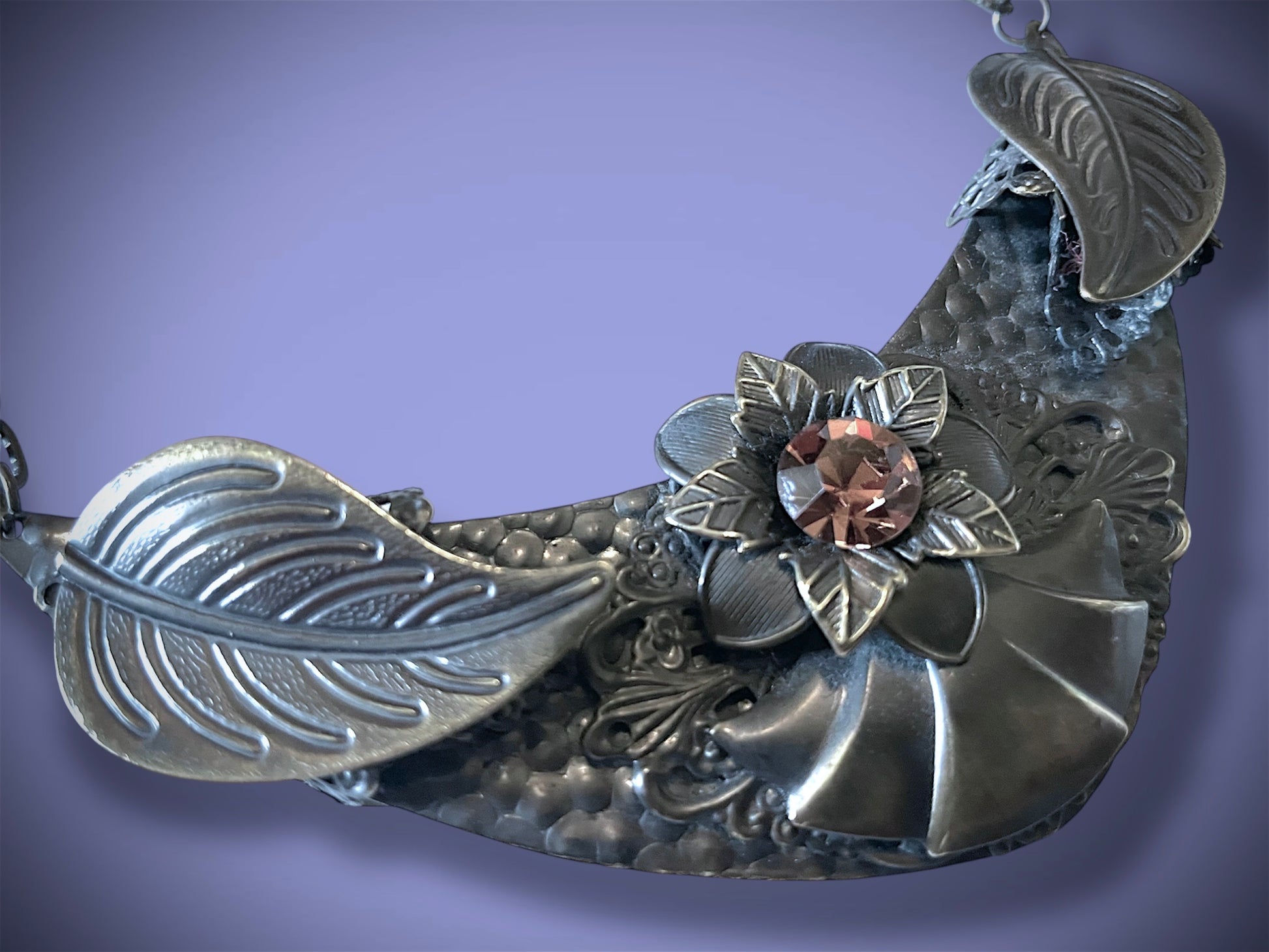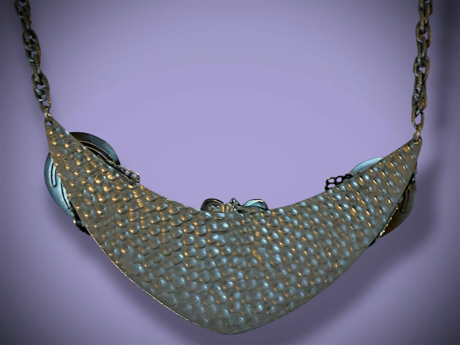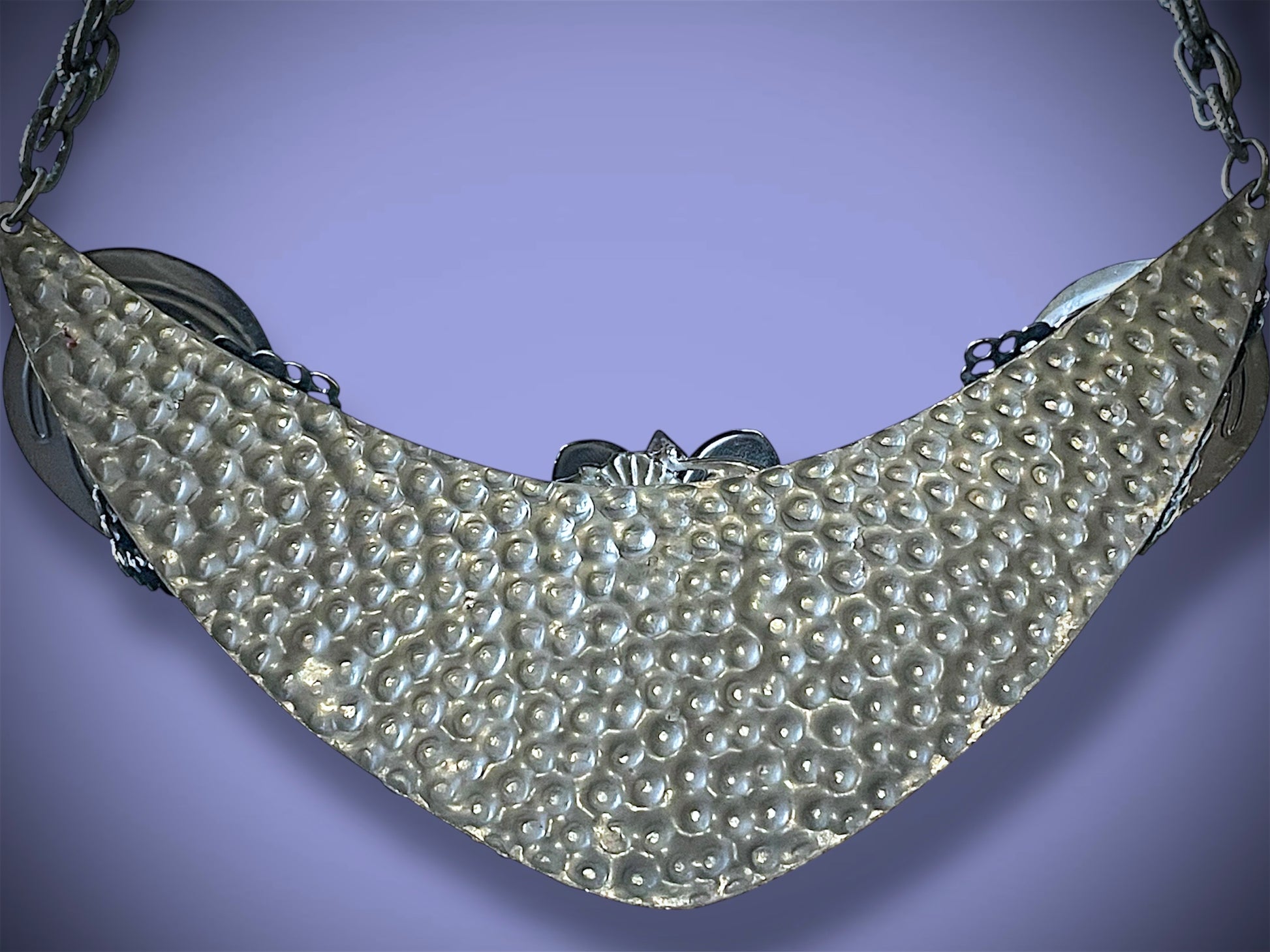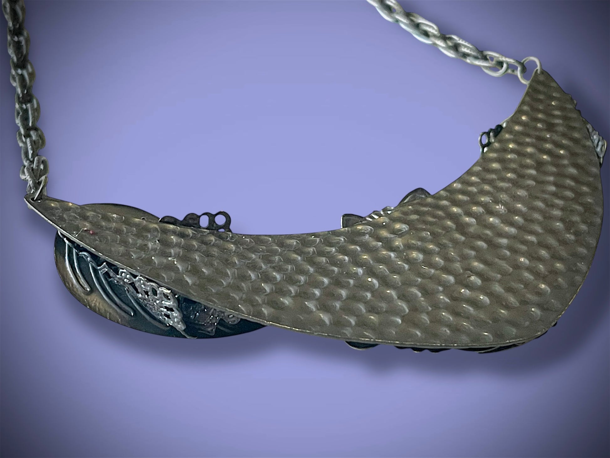 Art Nouveau Hand Hammered Brass & Citrine Crystal Chevron Choker Necklace
