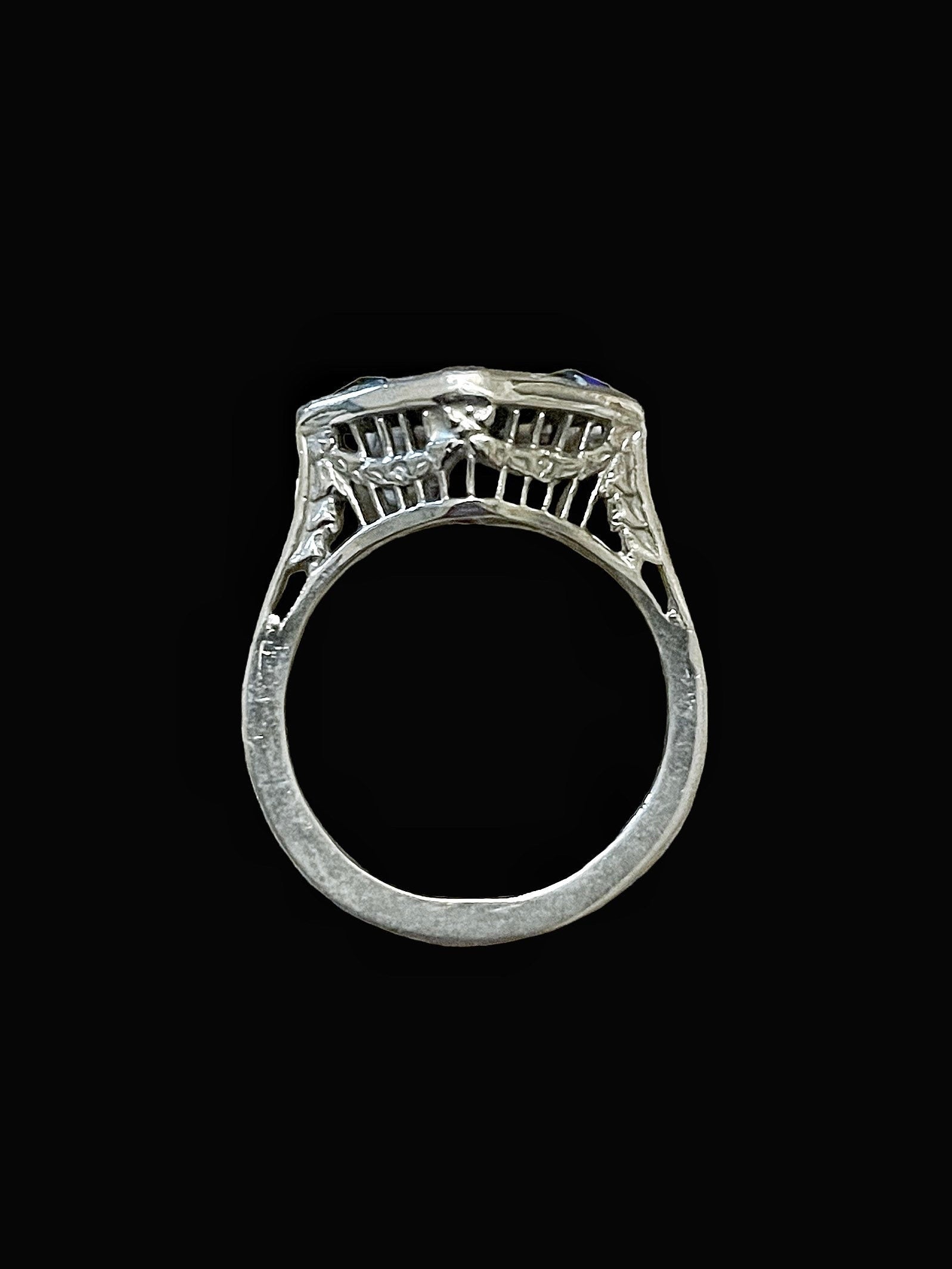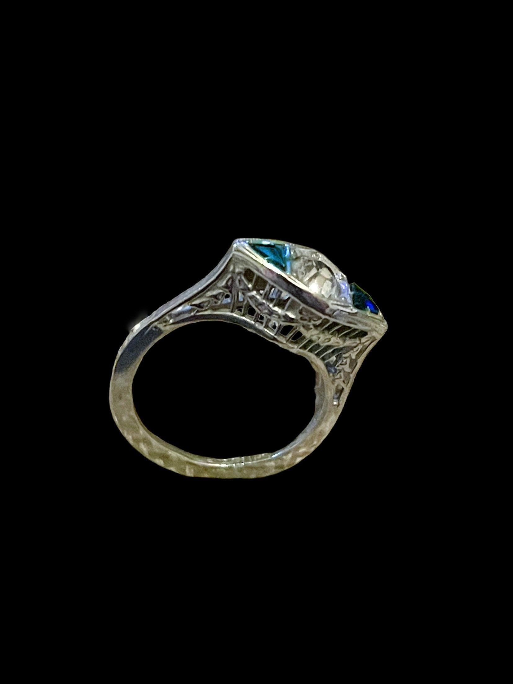 Art Nouveau Saphire & Topaz Filigree Sterling Silver Engagement Ring